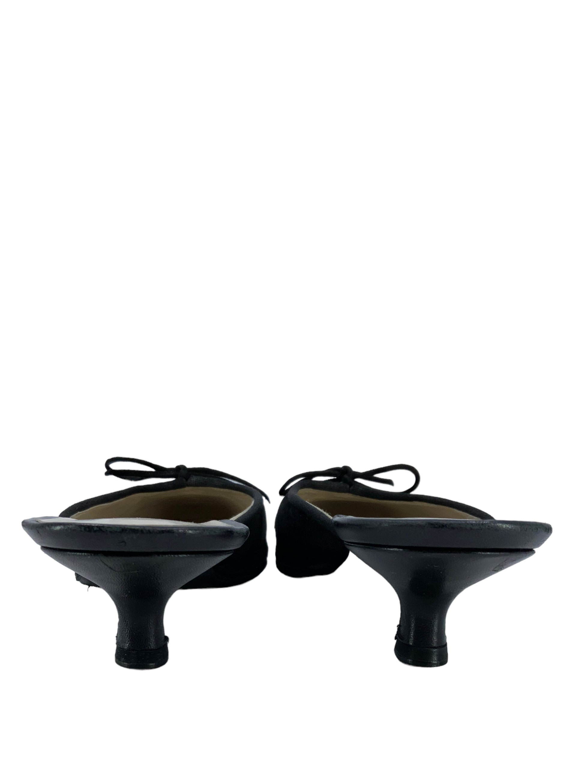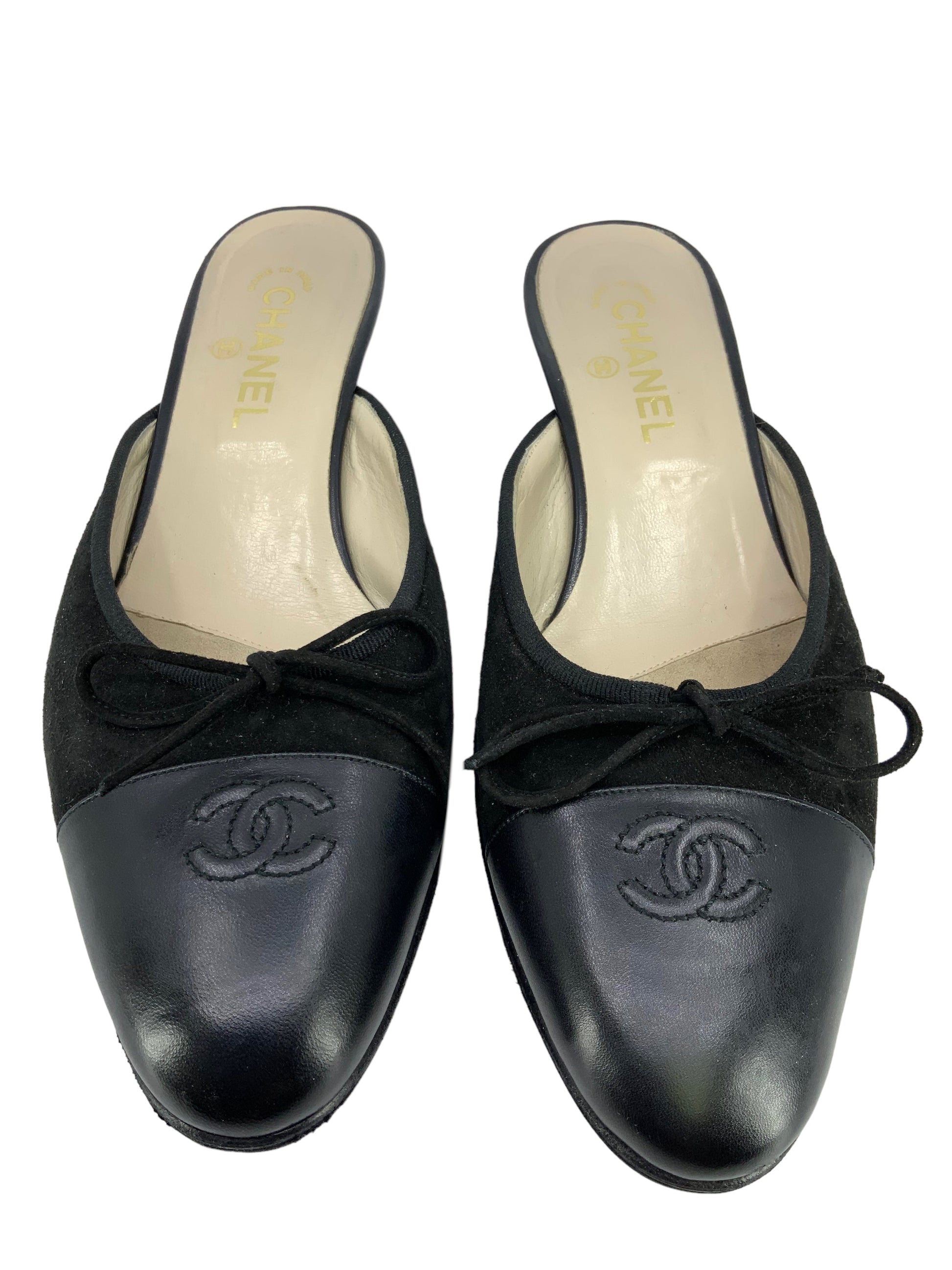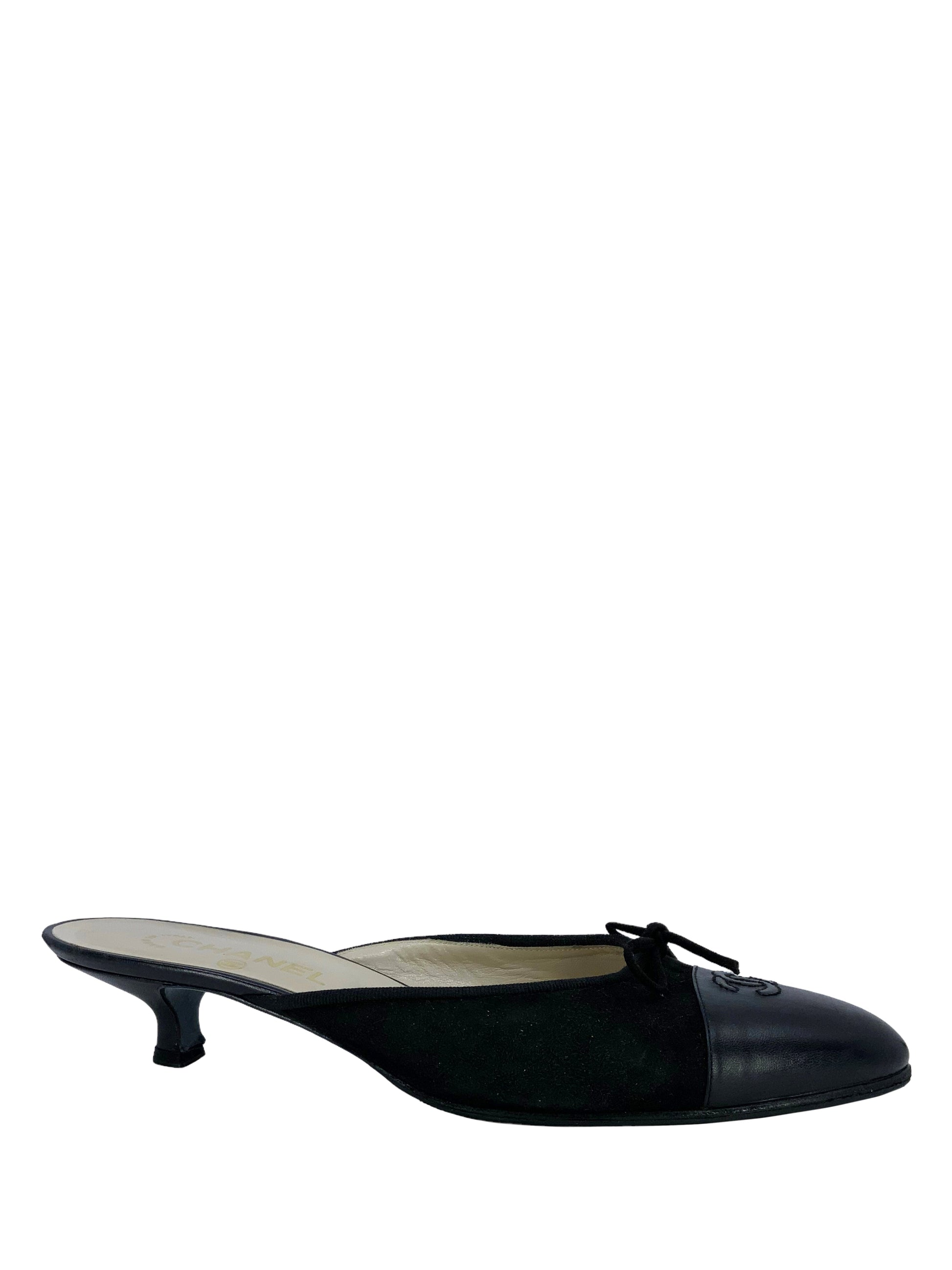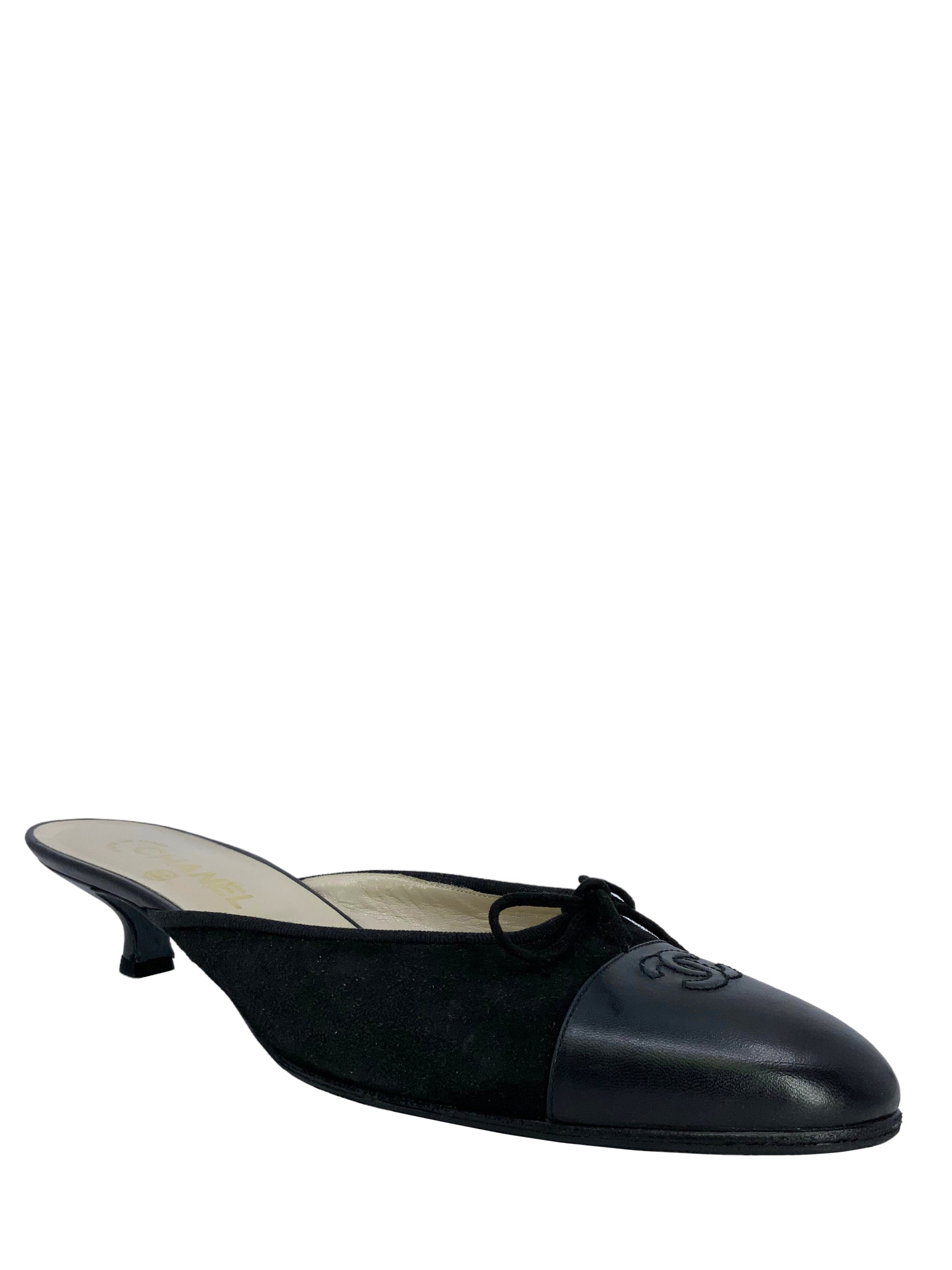 Chanel Suede and Leather CC Cap Toe Kitten Heel Mules Size 10.5