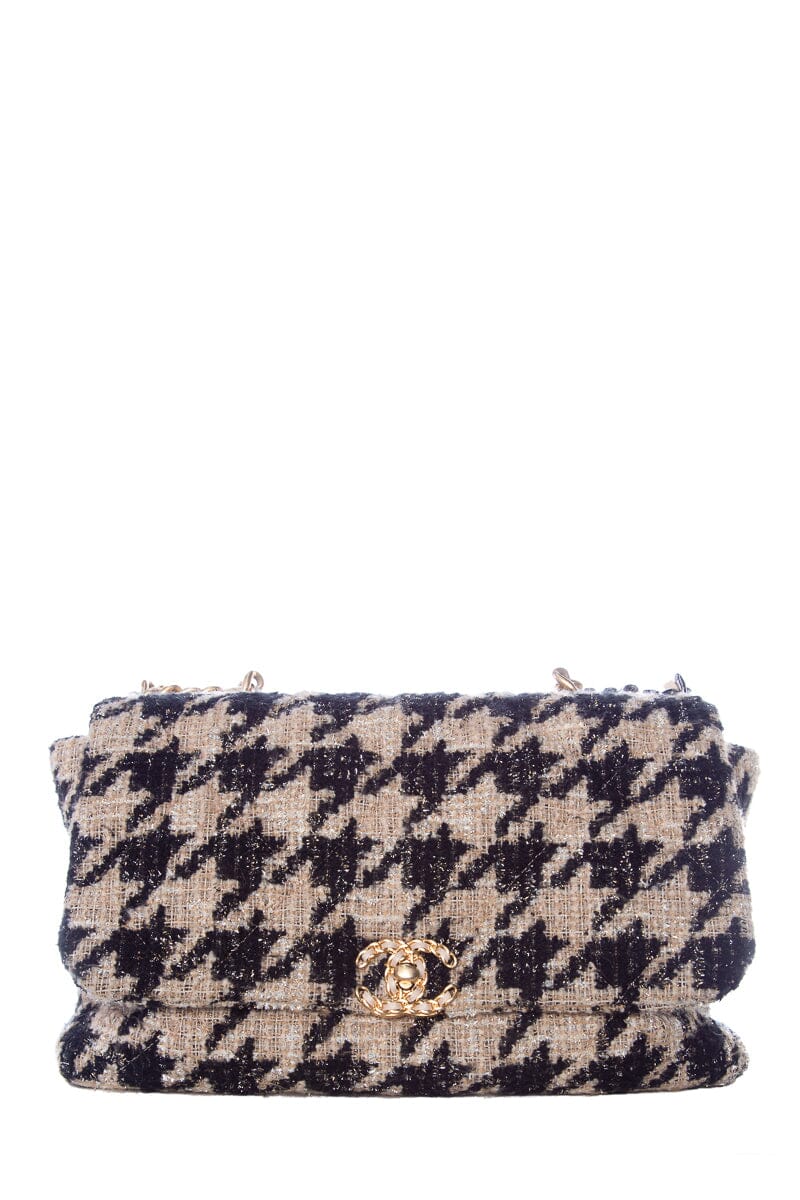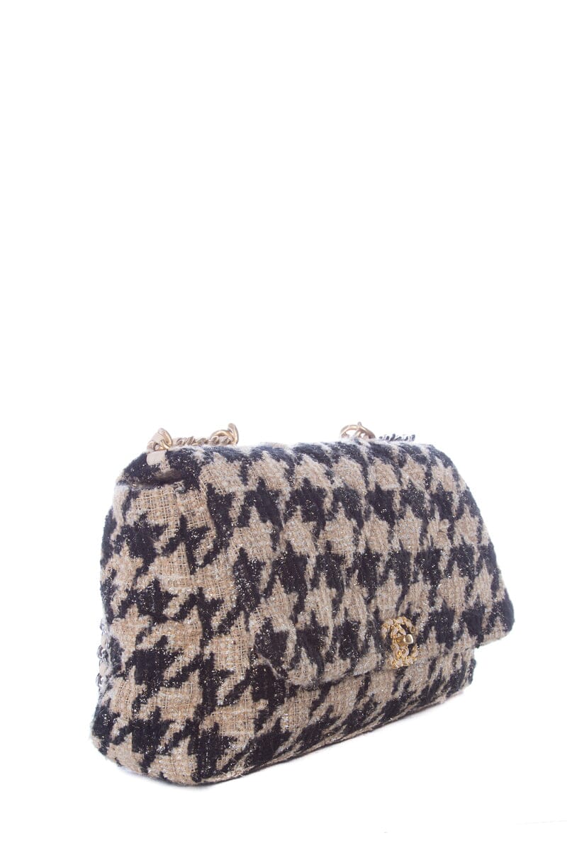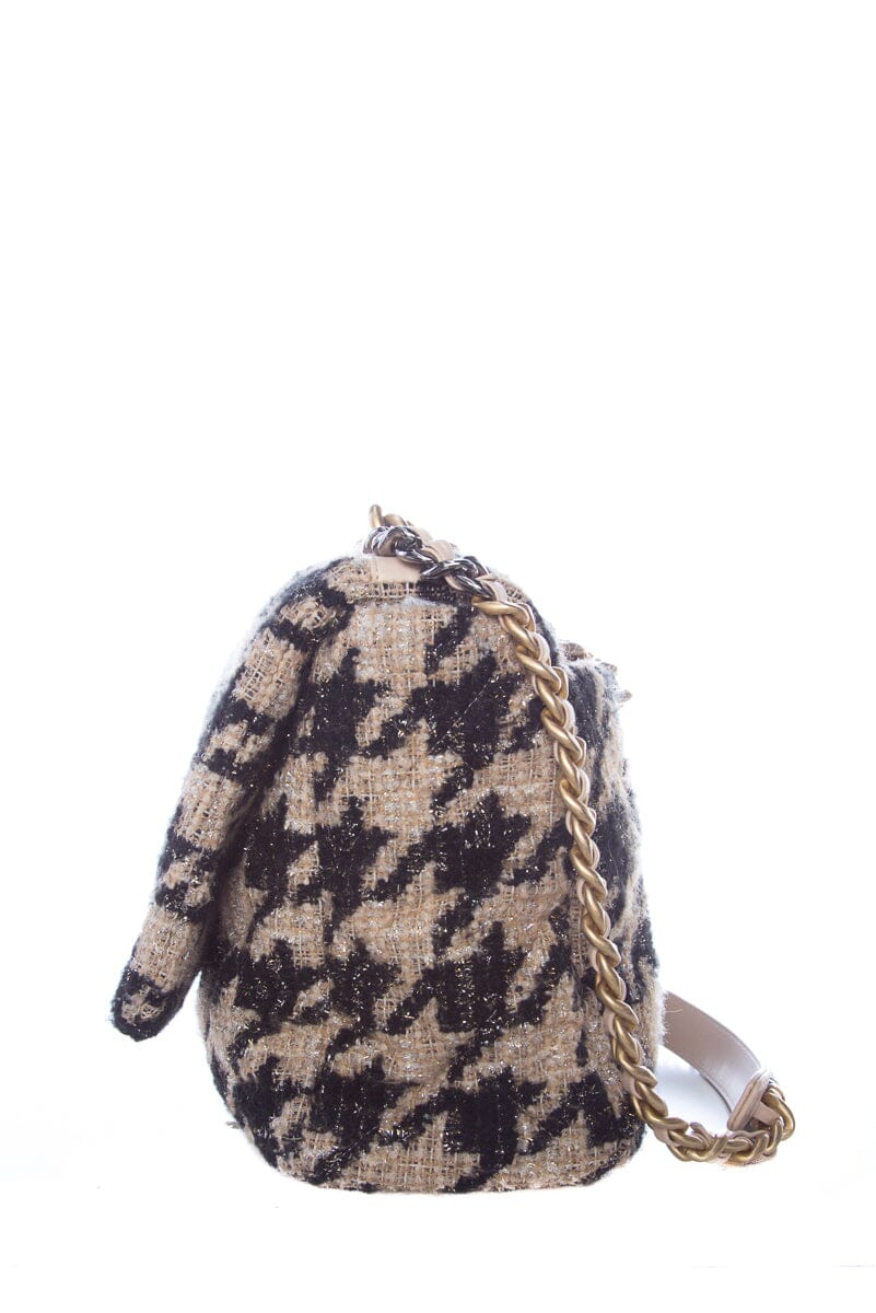 Chanel Tan and Black Houndstooth Chanel 19 Two toned hardware Handbag