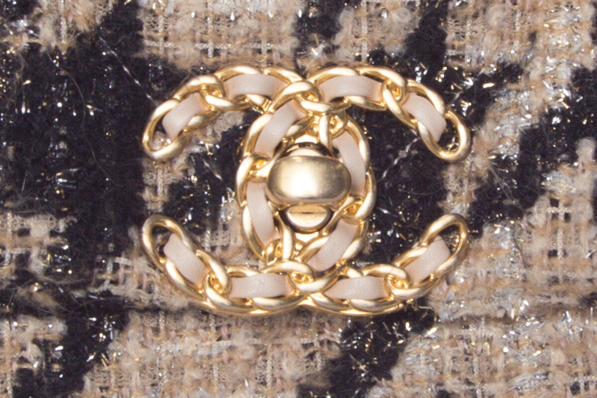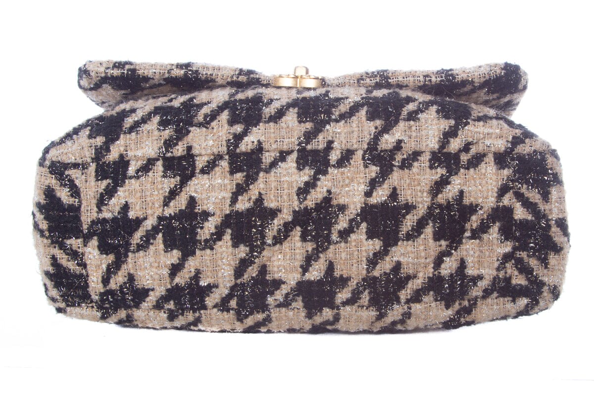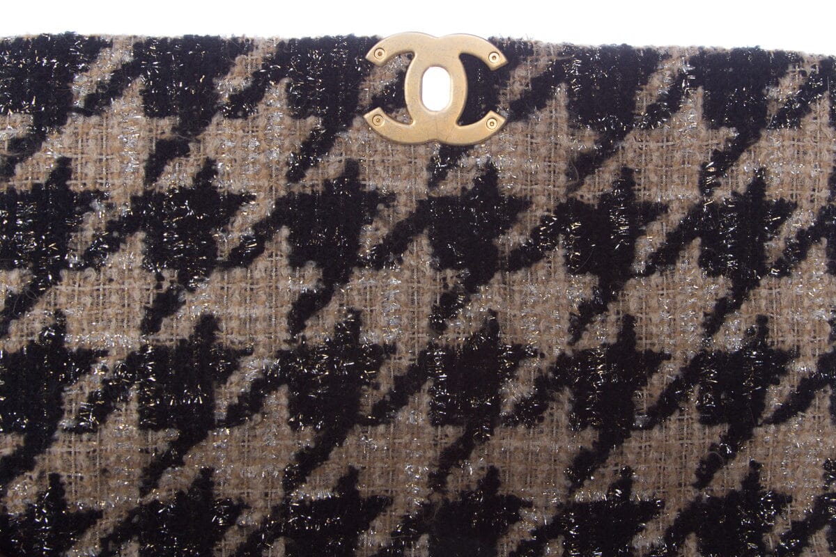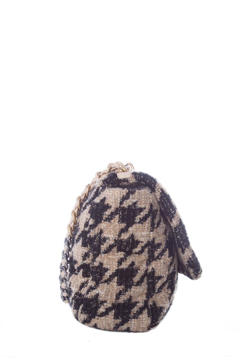 Chanel Tan and Black Houndstooth Chanel 19 Two toned hardware Handbag