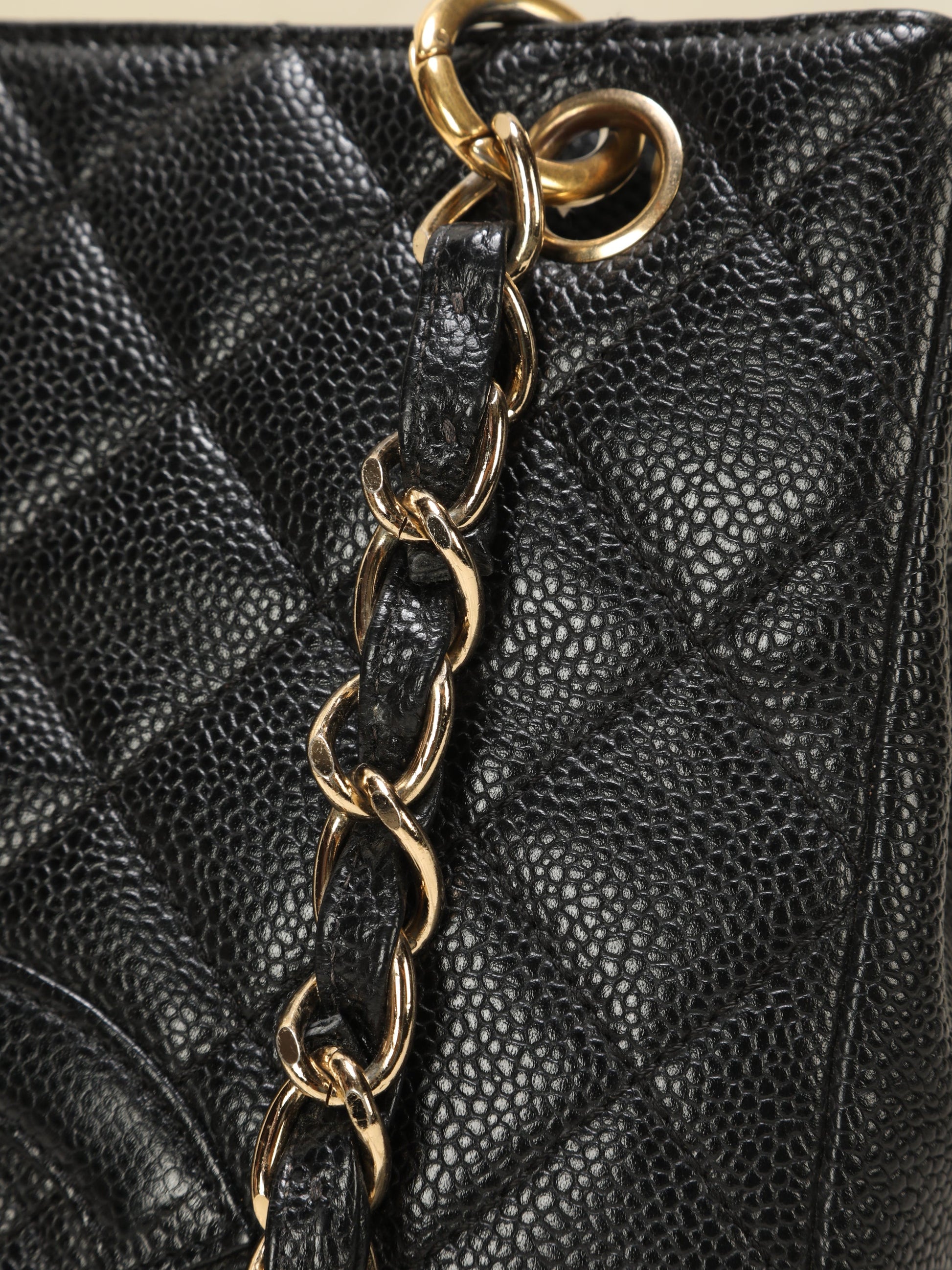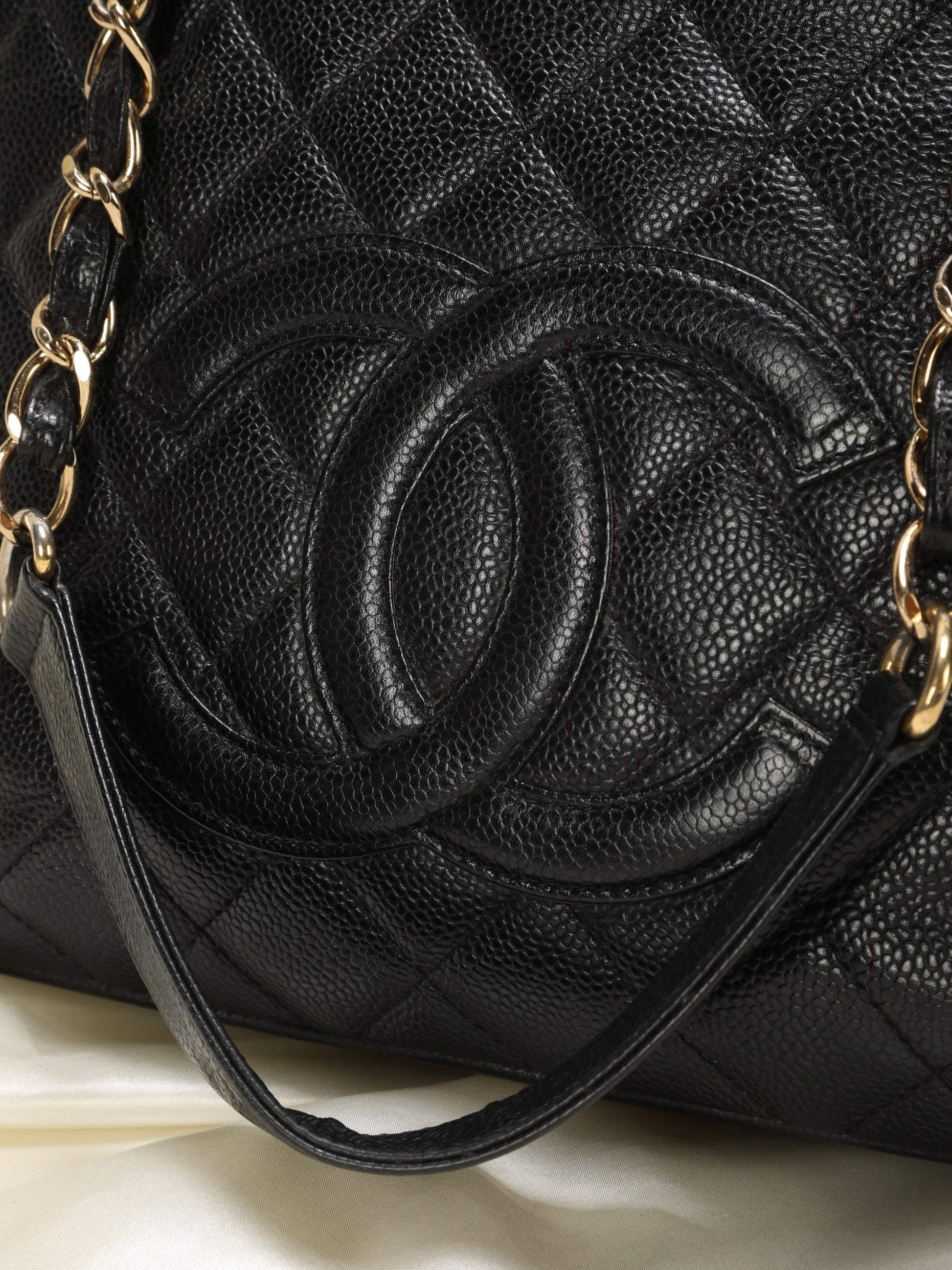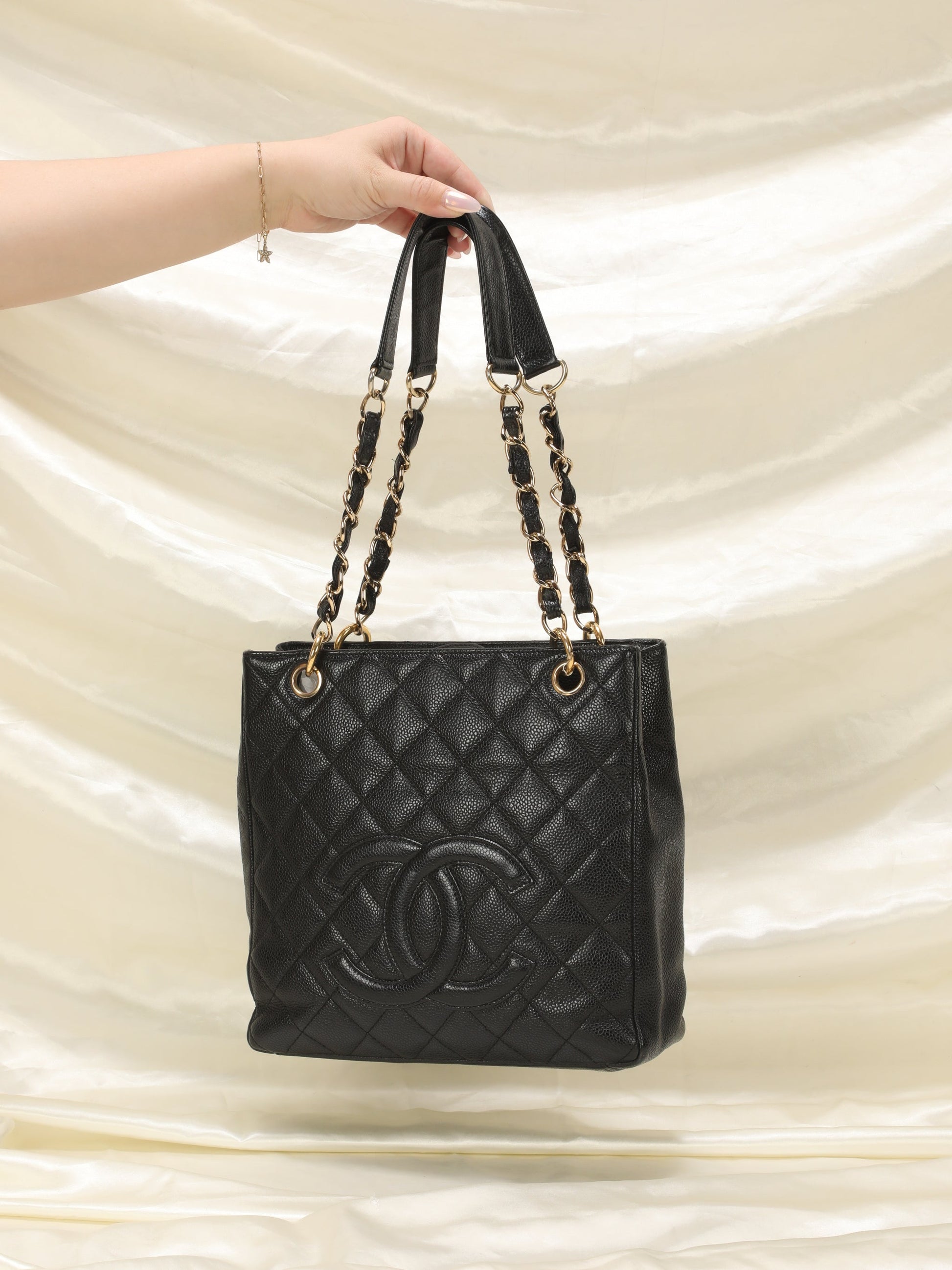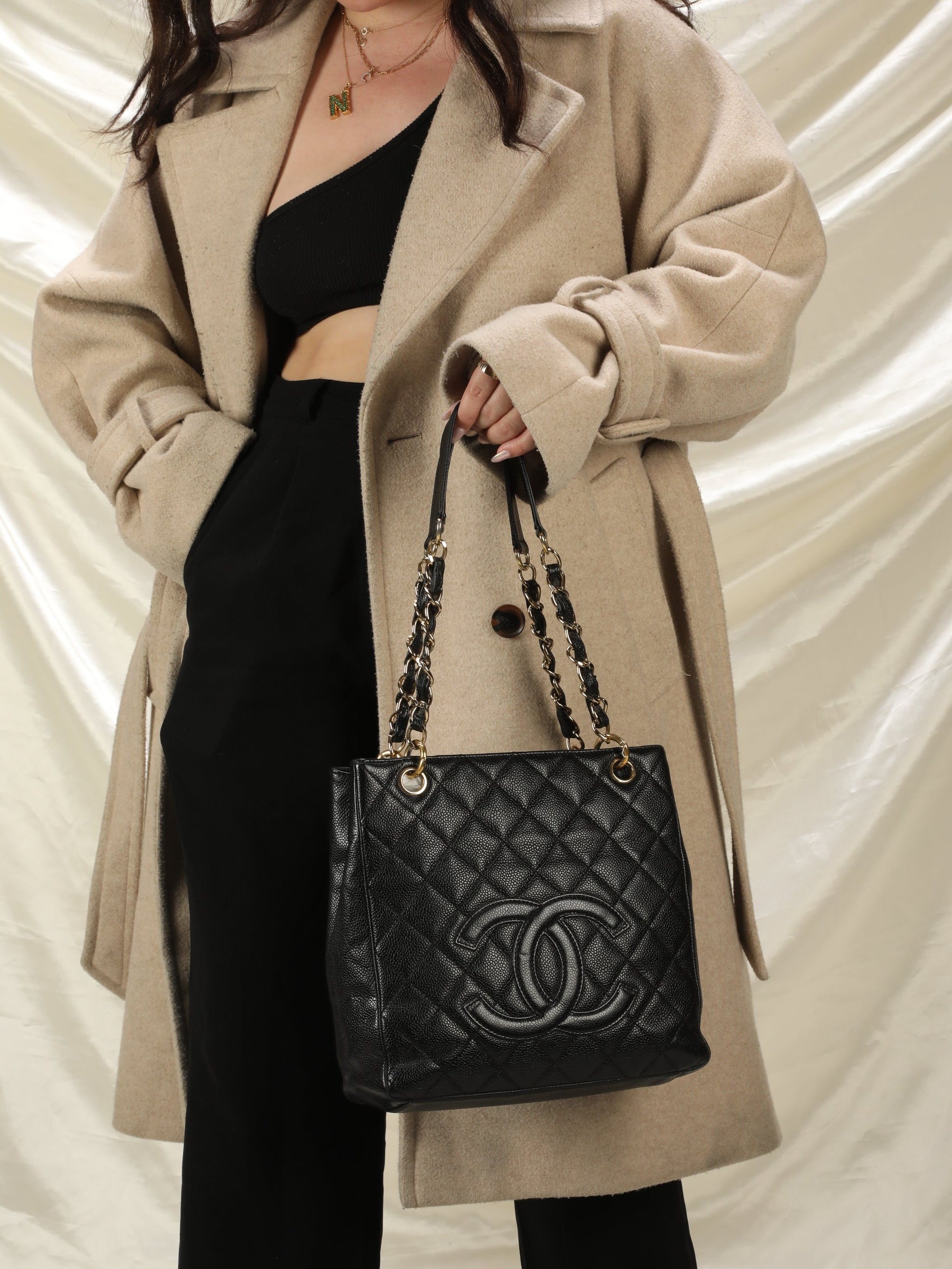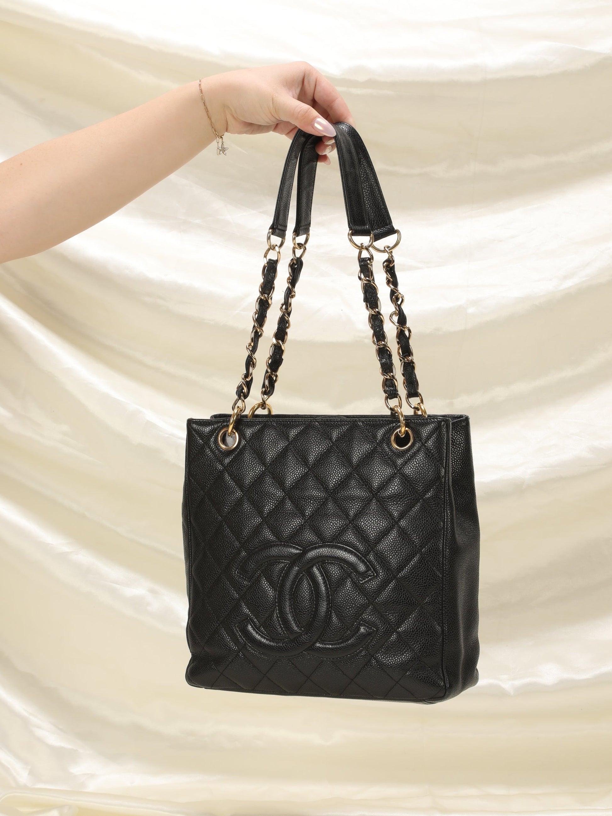 Up for grabs is a stunning Chanel caviar tote?bag with gold plated chain straps. Caviar leather allows for extreme durability. A classic piece to enjoy for years! Gives an effortless chic vibe when with a ?coat! Perfect?medium size to fit all the essentials for the day.?