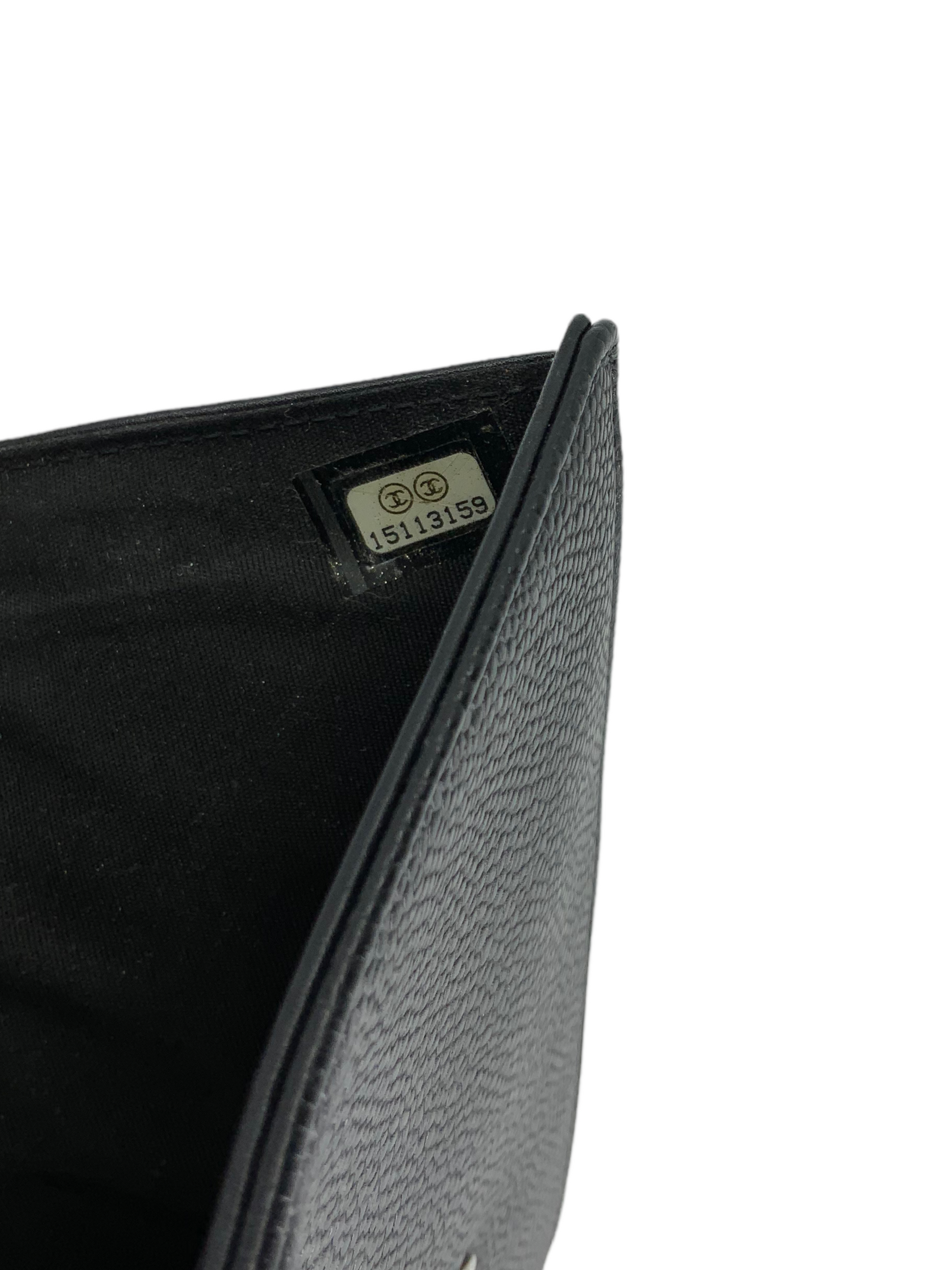 Carry your cards and cash in style with this and highly sought-afterCHANEL Timeless CC Long Caviar Snap Wallet crafted from Chanel's signature black caviar leather and silver-tone hardware. Featuring a signature embossed'CC' logoon the front flap and a secure snap closure that opens to a functional interior ofeight credit card slots, one zip coin pocket, a bill fold and two open compartments.