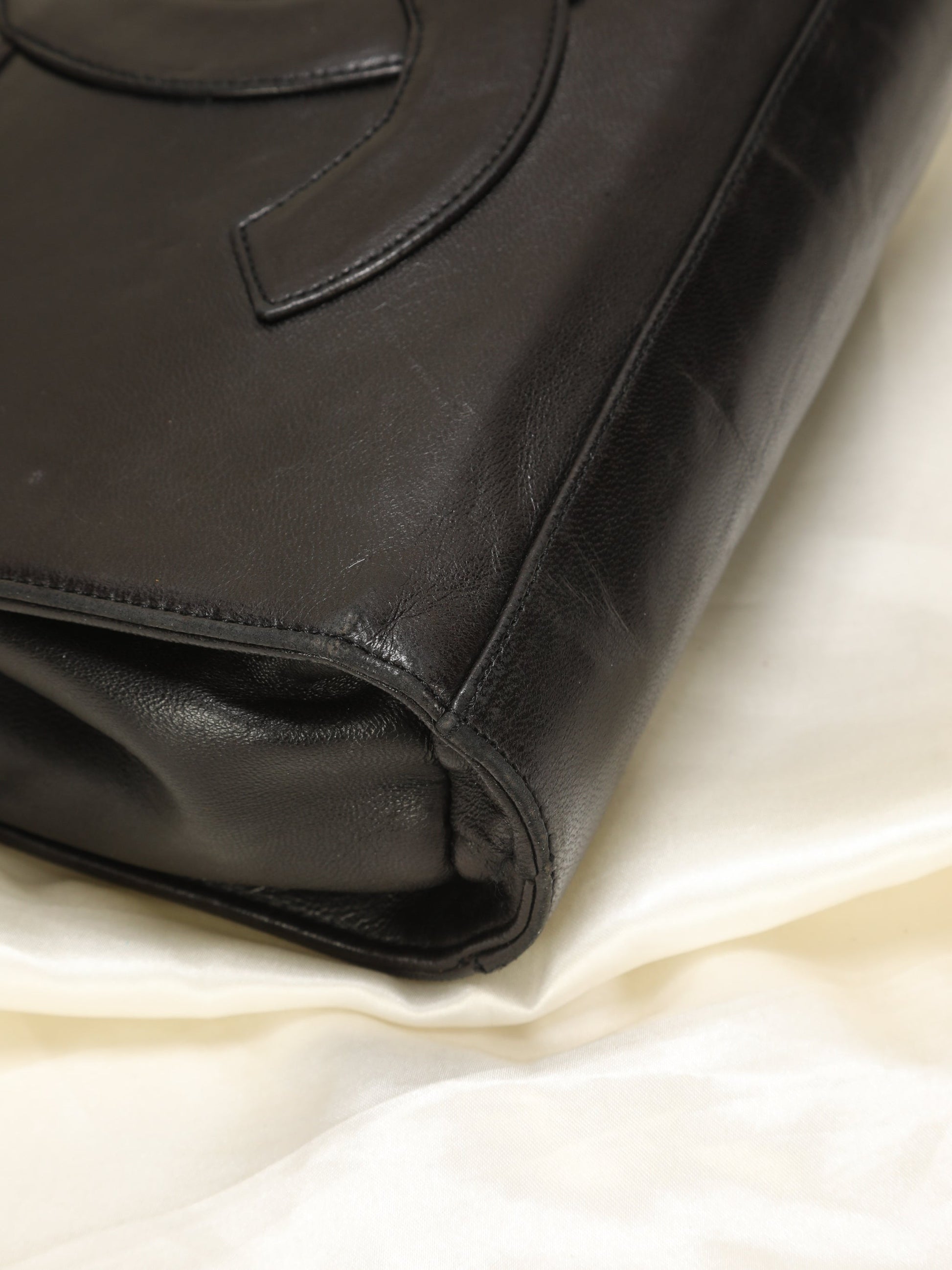 Please note: Some?scratches on lambskin, rubbing on bottom edges. 24kt hardware in beautiful condition.