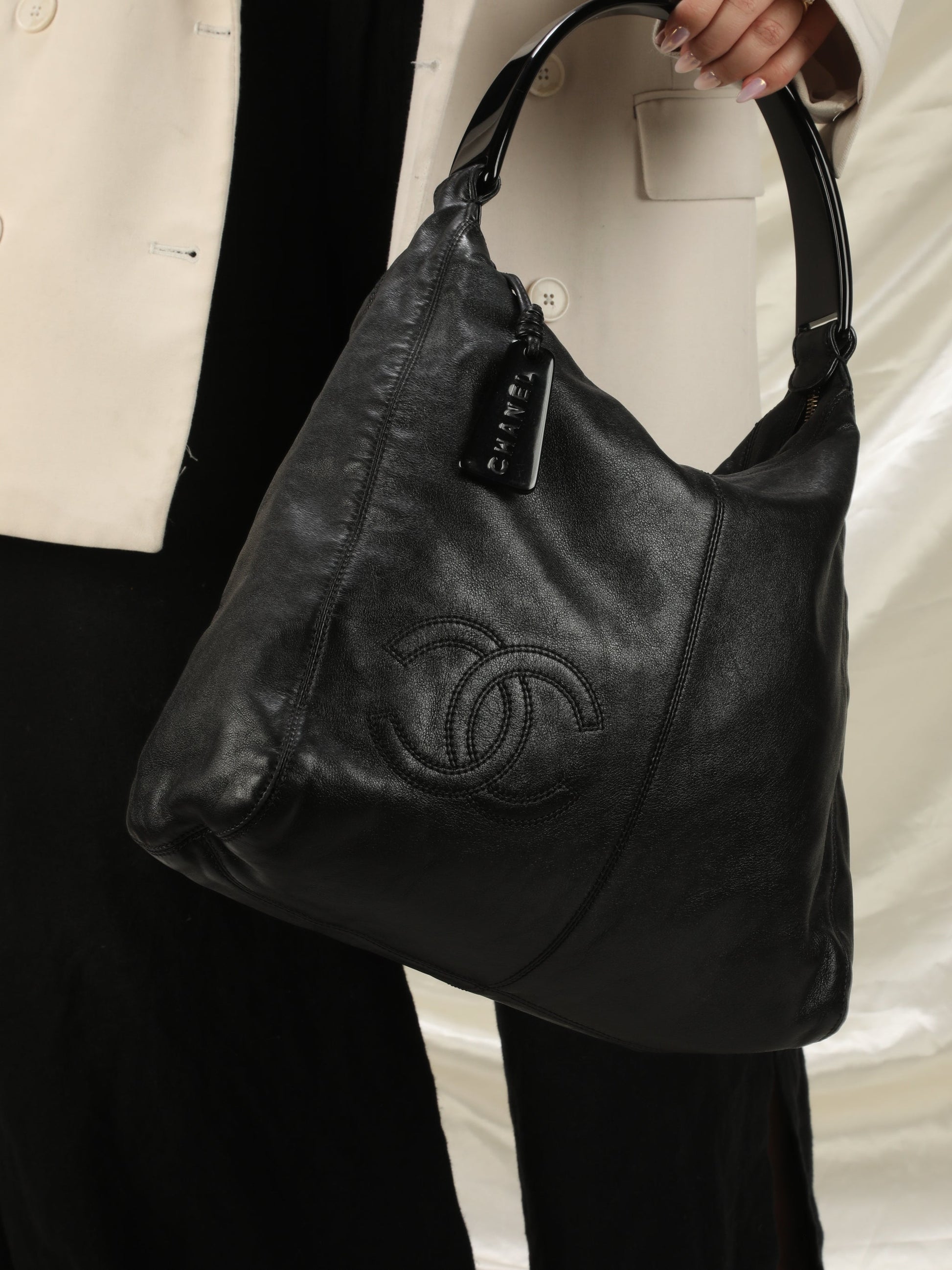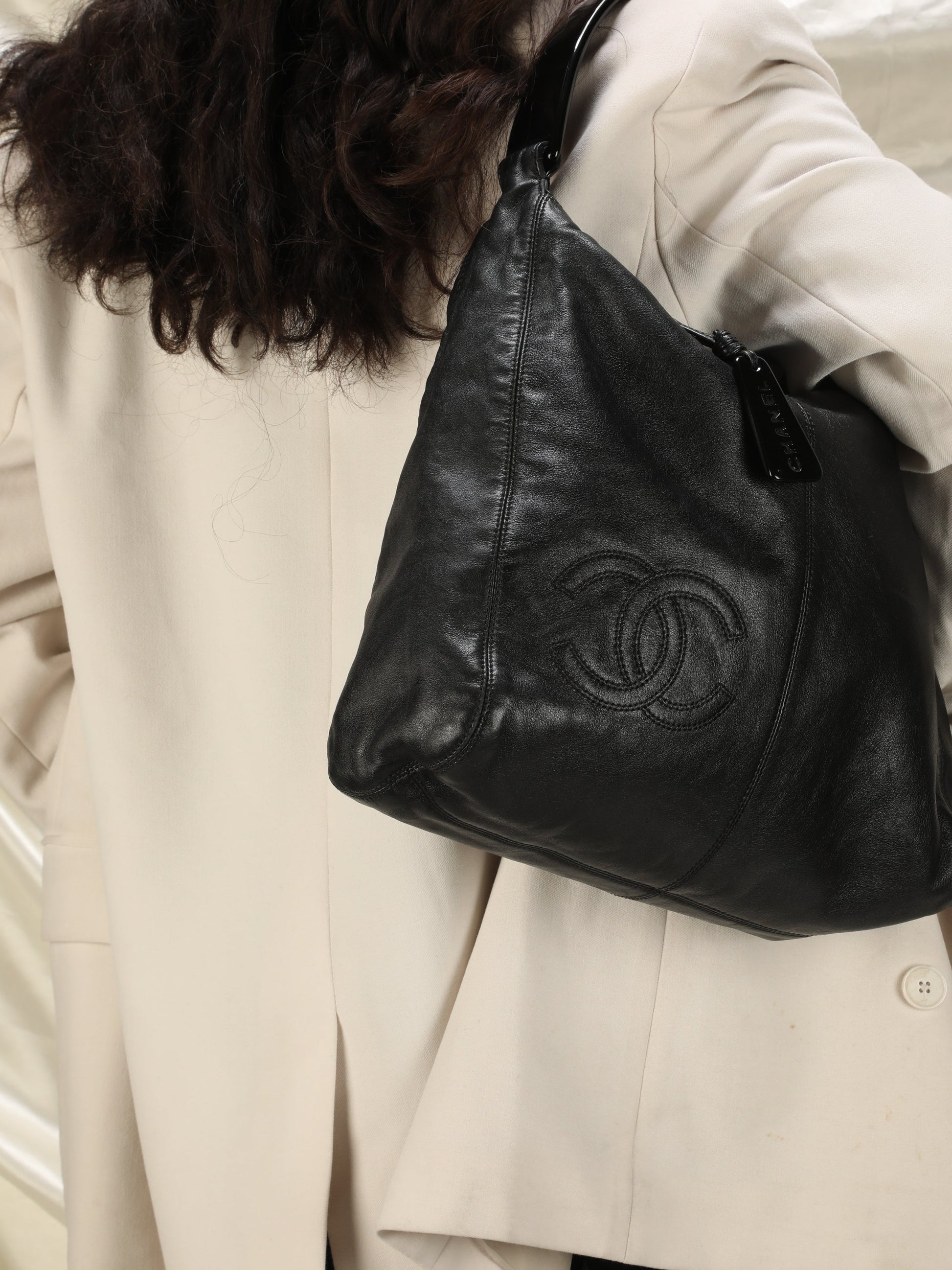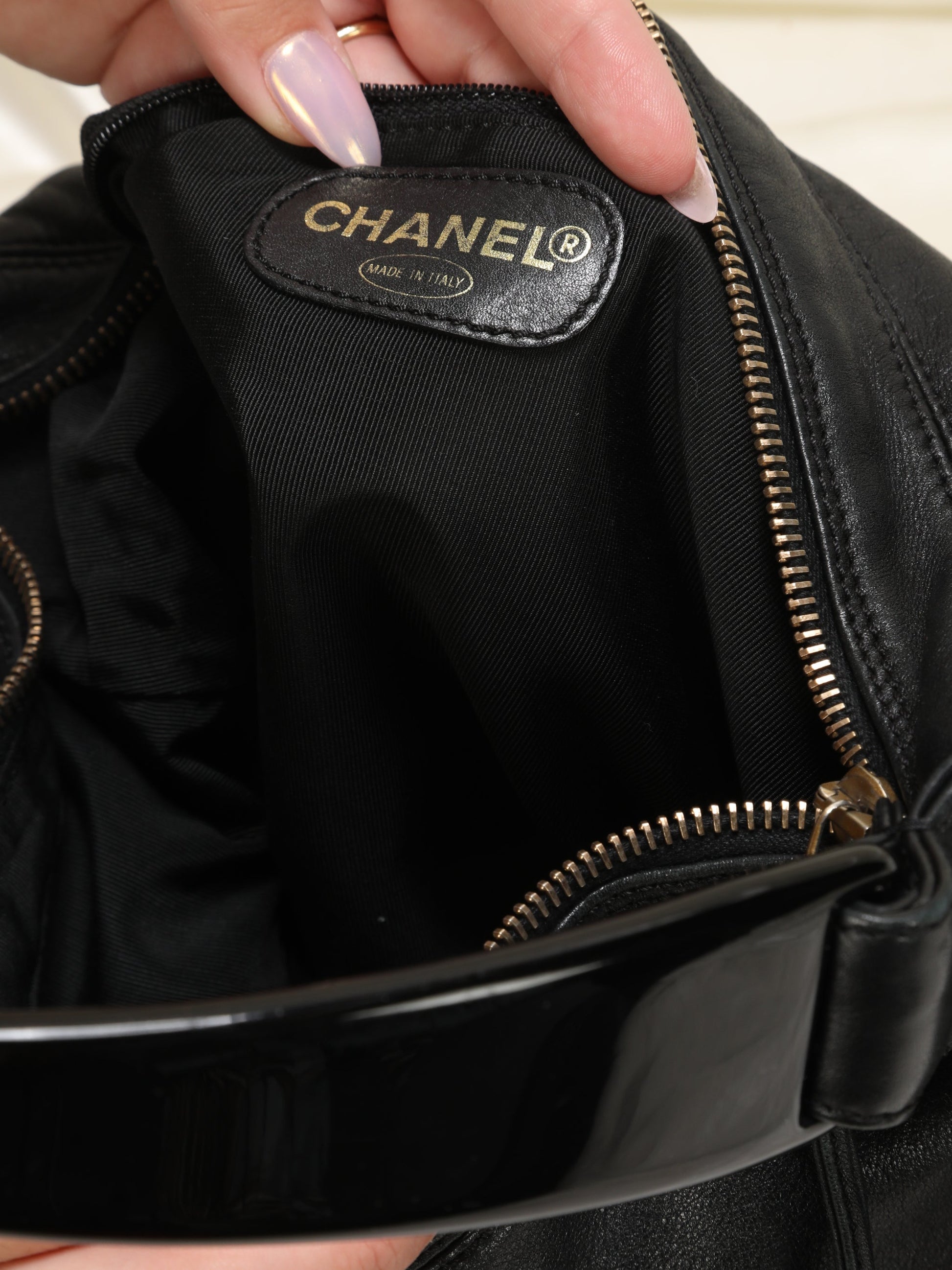 ?This?buttery soft?lambskin?piece is the perfect subtle statement bag. Chanel timeless logo sewn on corner of bag and features acrylic top handle. Perfect every day piece. Can be with any casual fit!