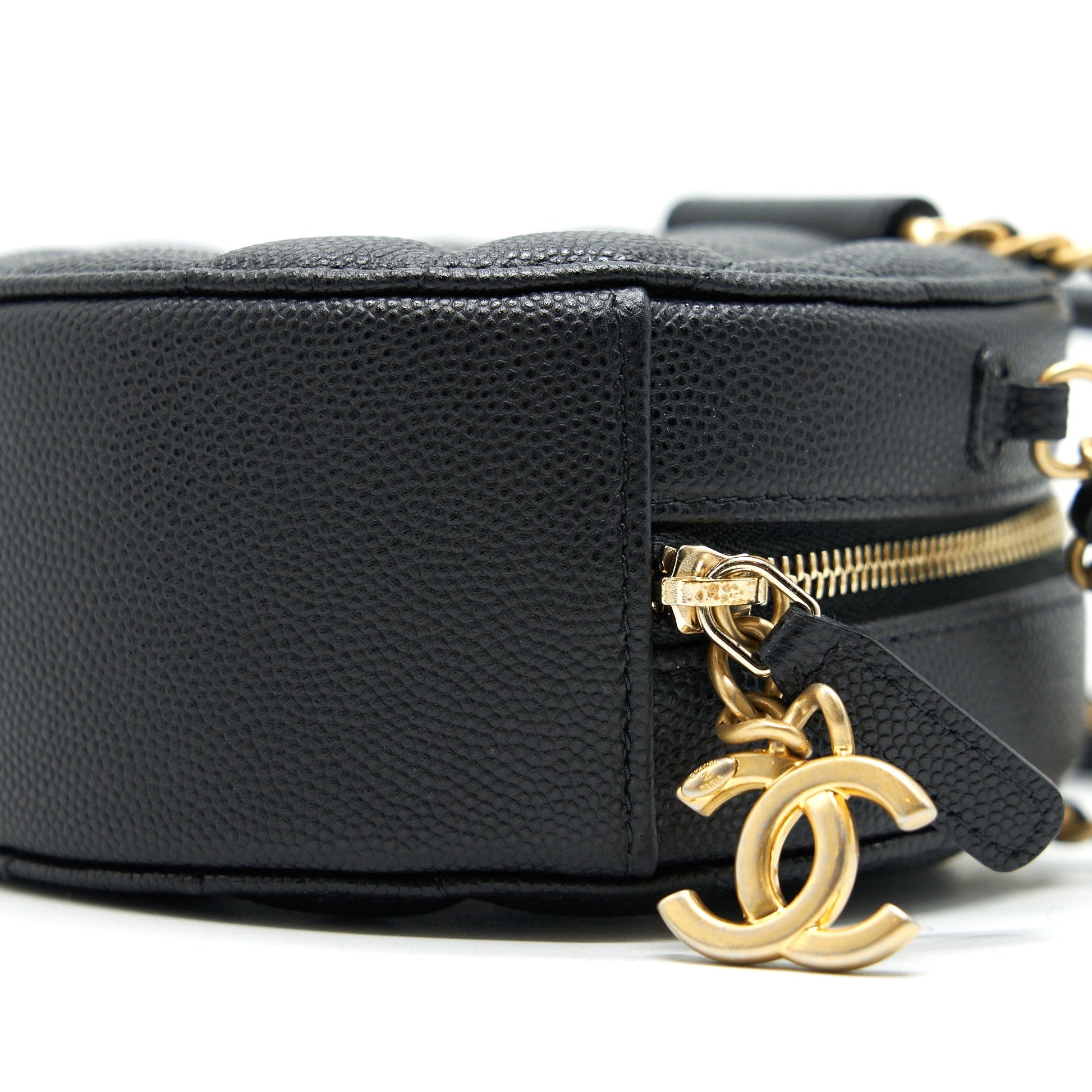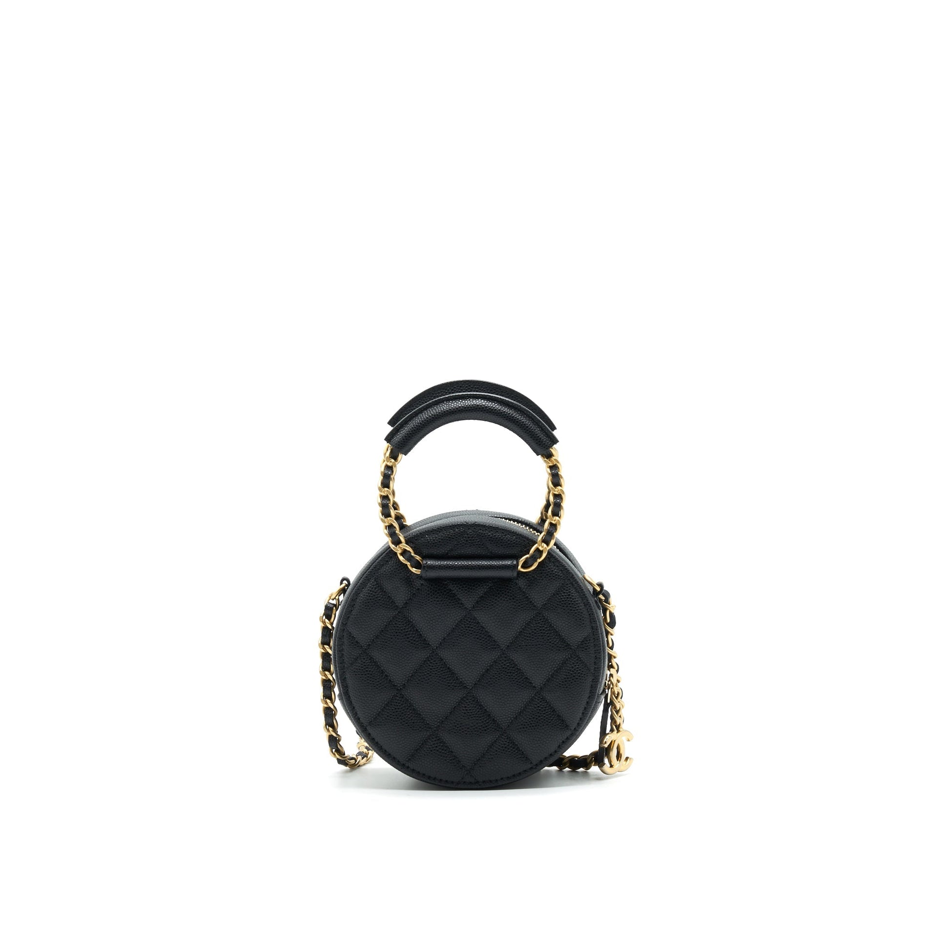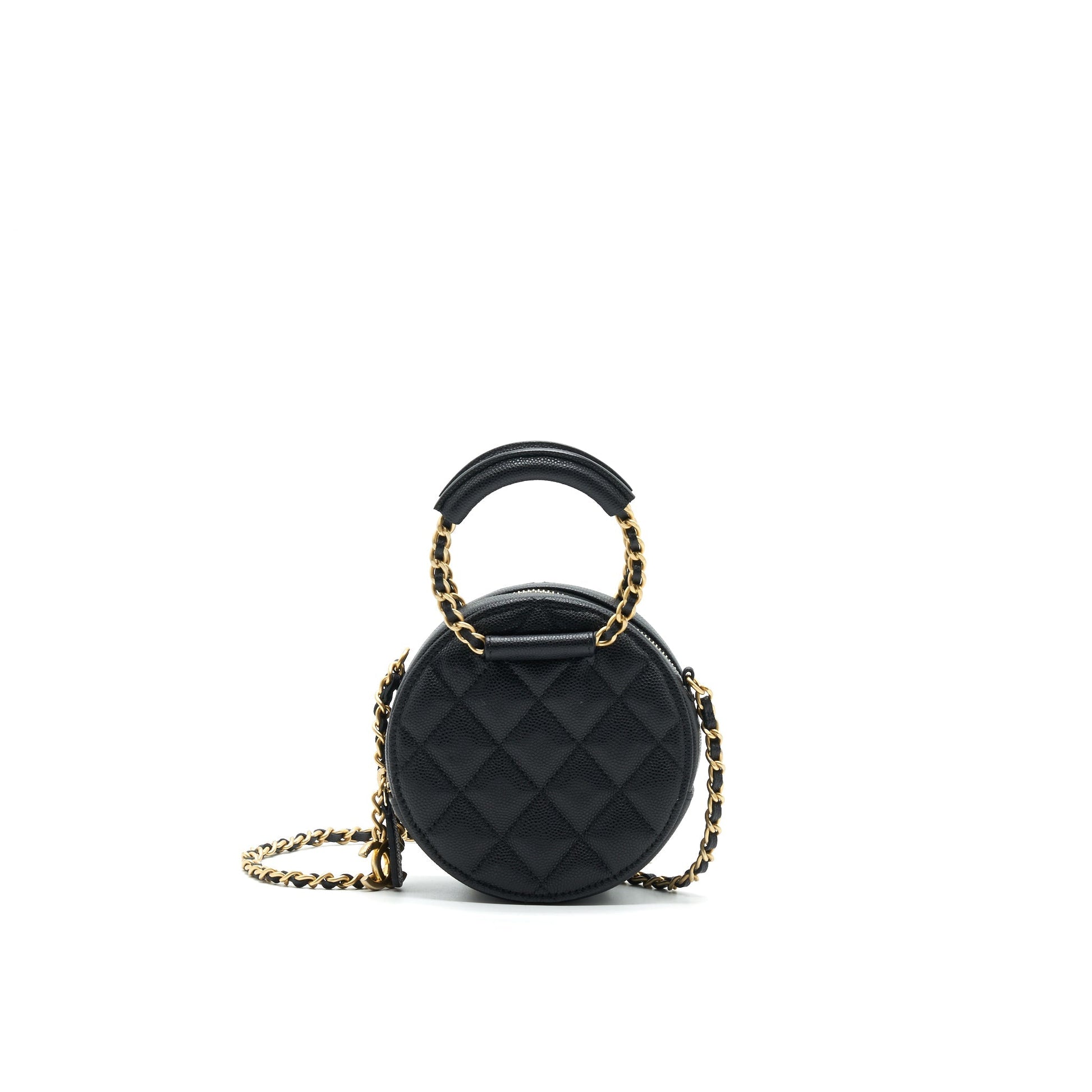 Chanel Top Handle Caviar Round Clutch with Chain Black GHW