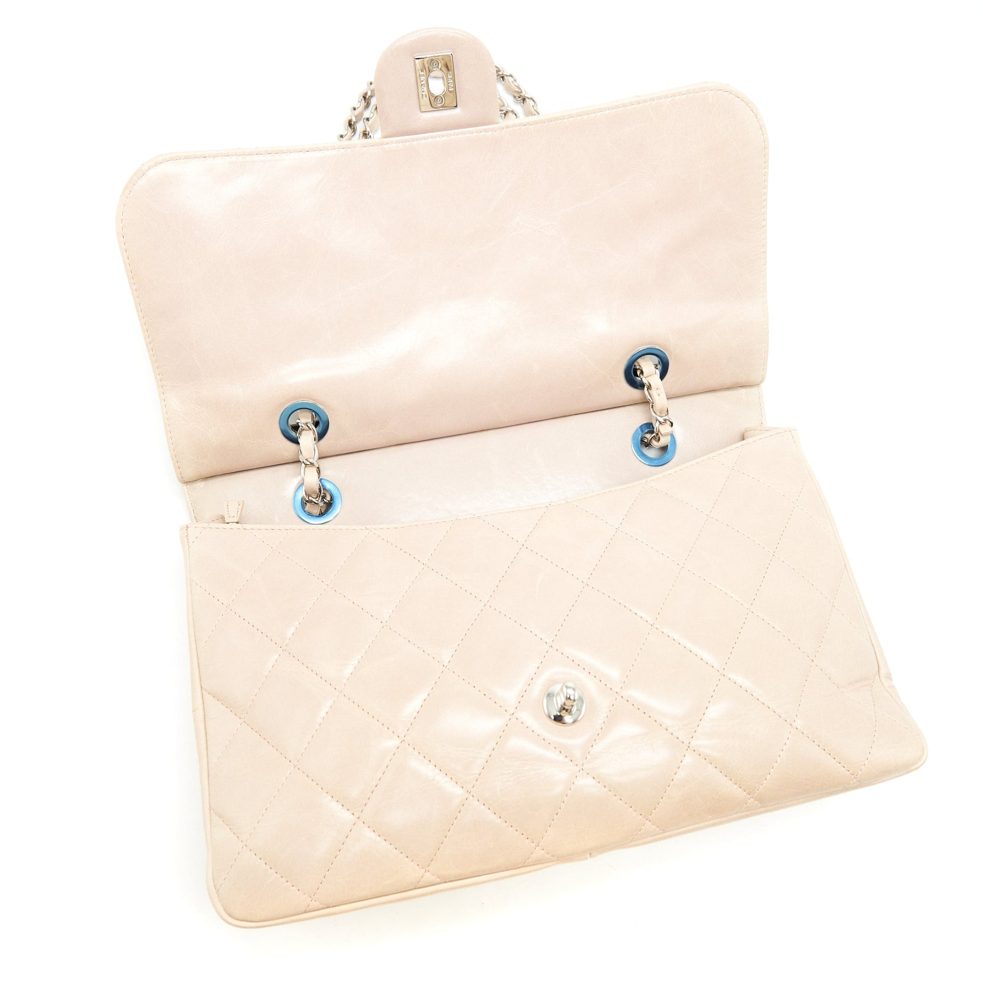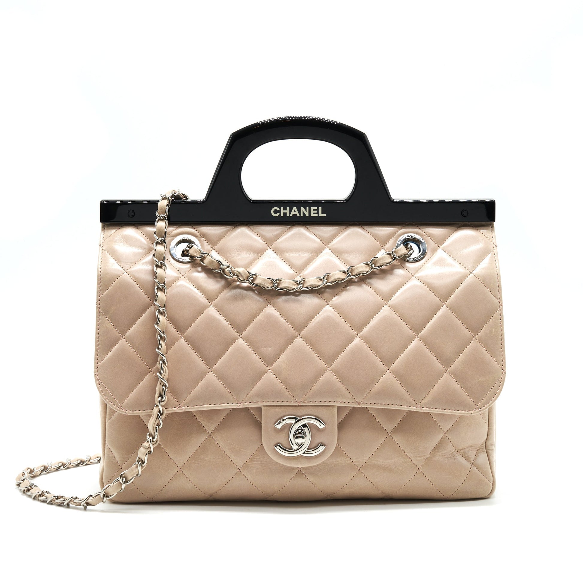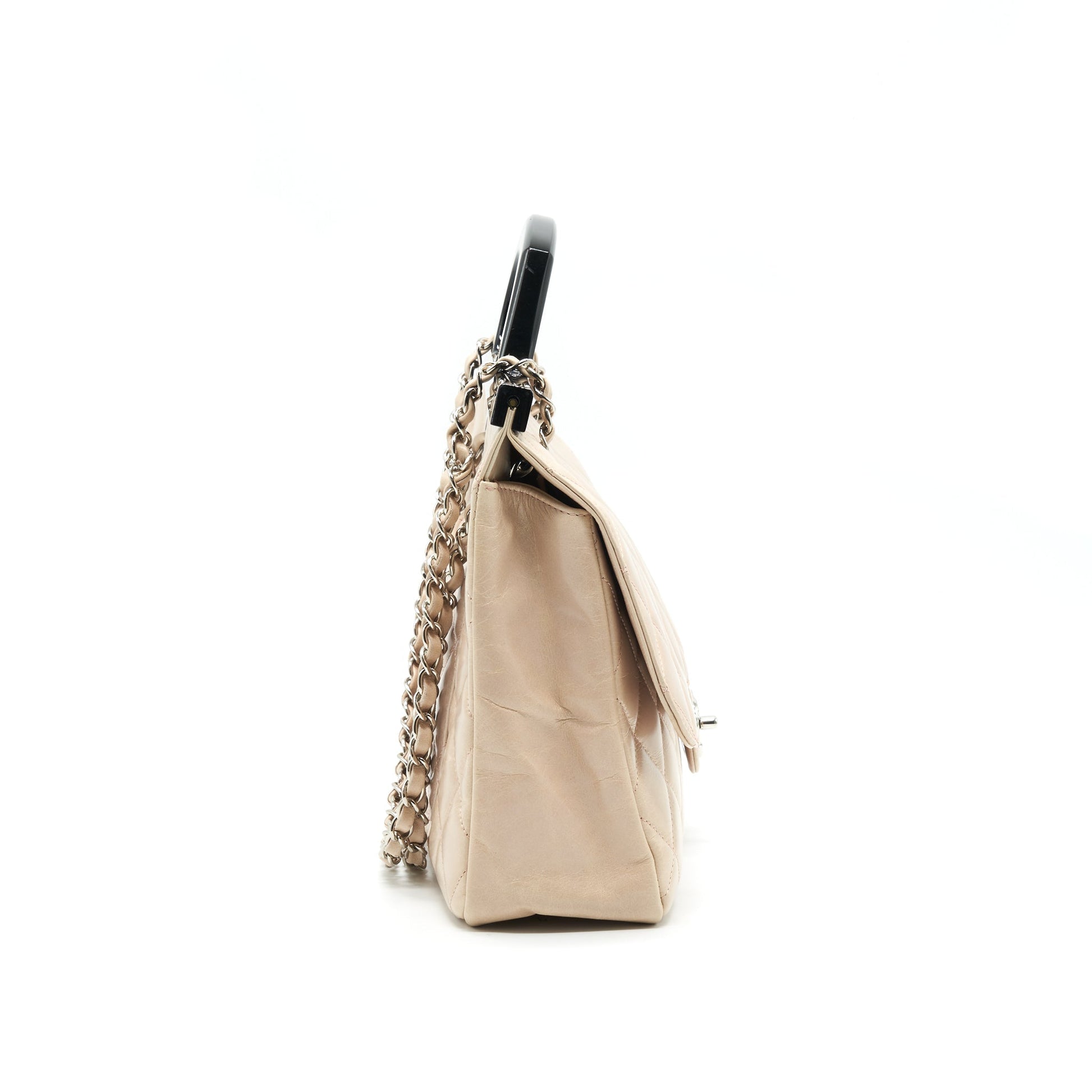 Chanel Top Handle Flap Bag with Chain Beige/ Black serial20