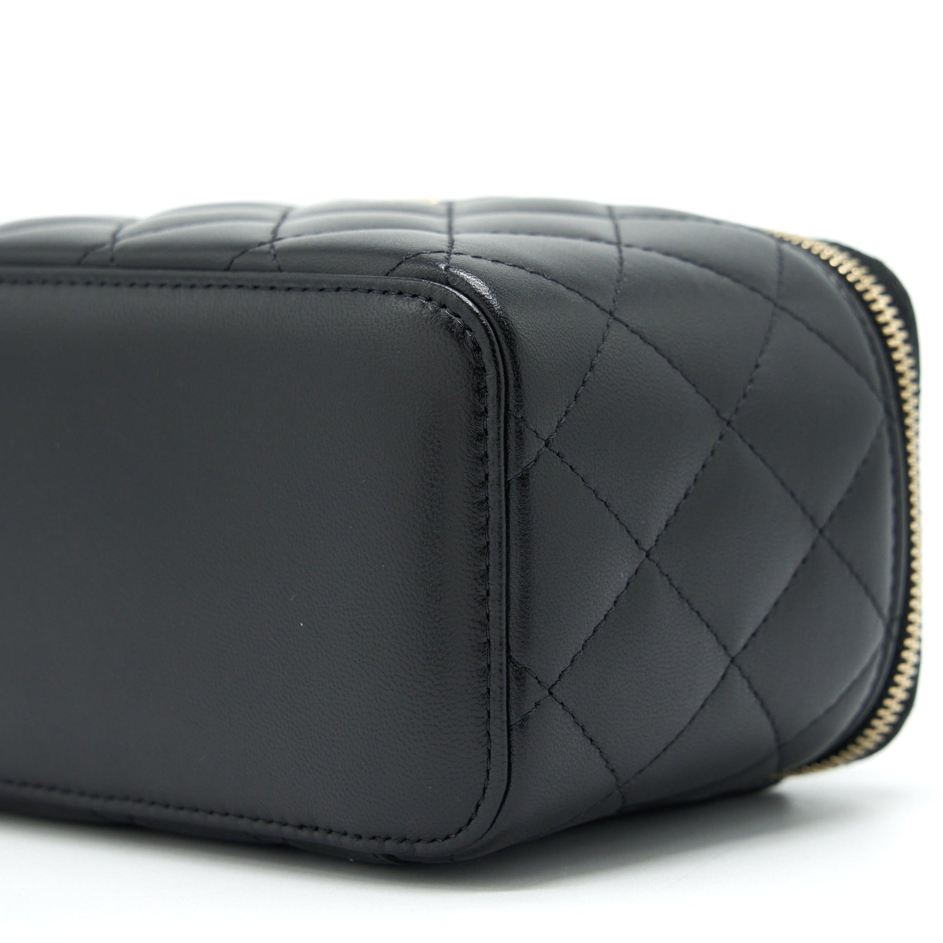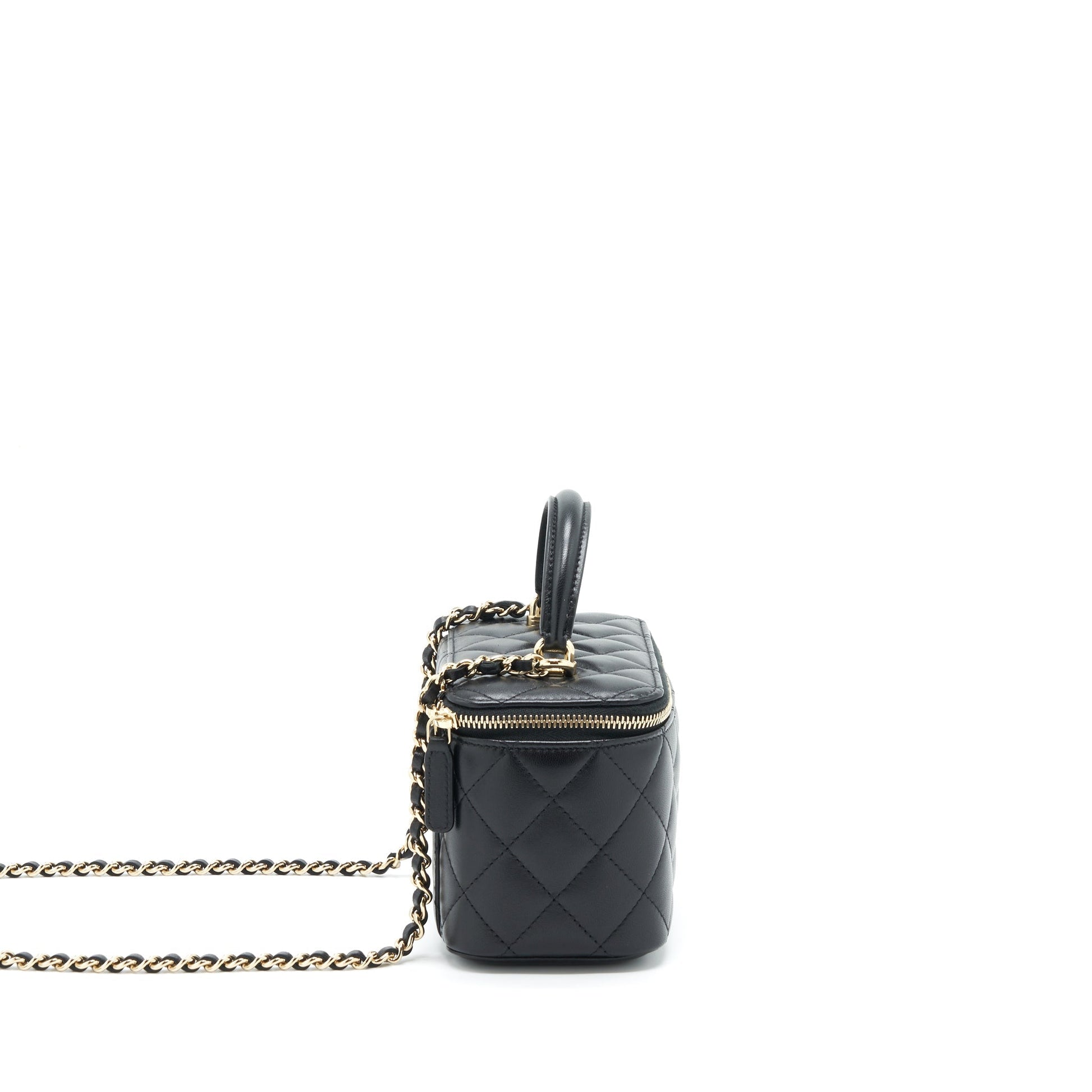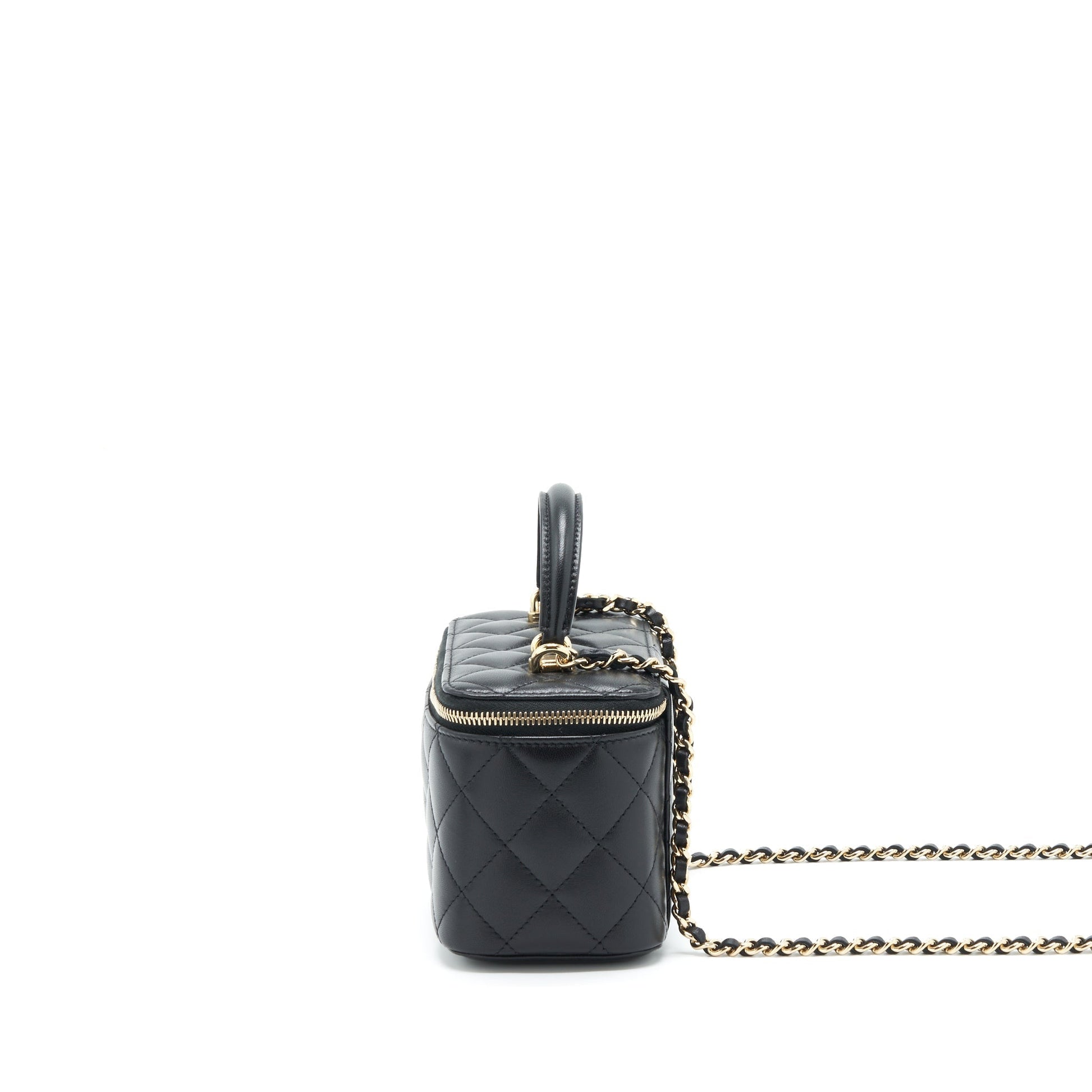 Chanel Top Handle Long Vanity With Chain Lambskin Black GHW