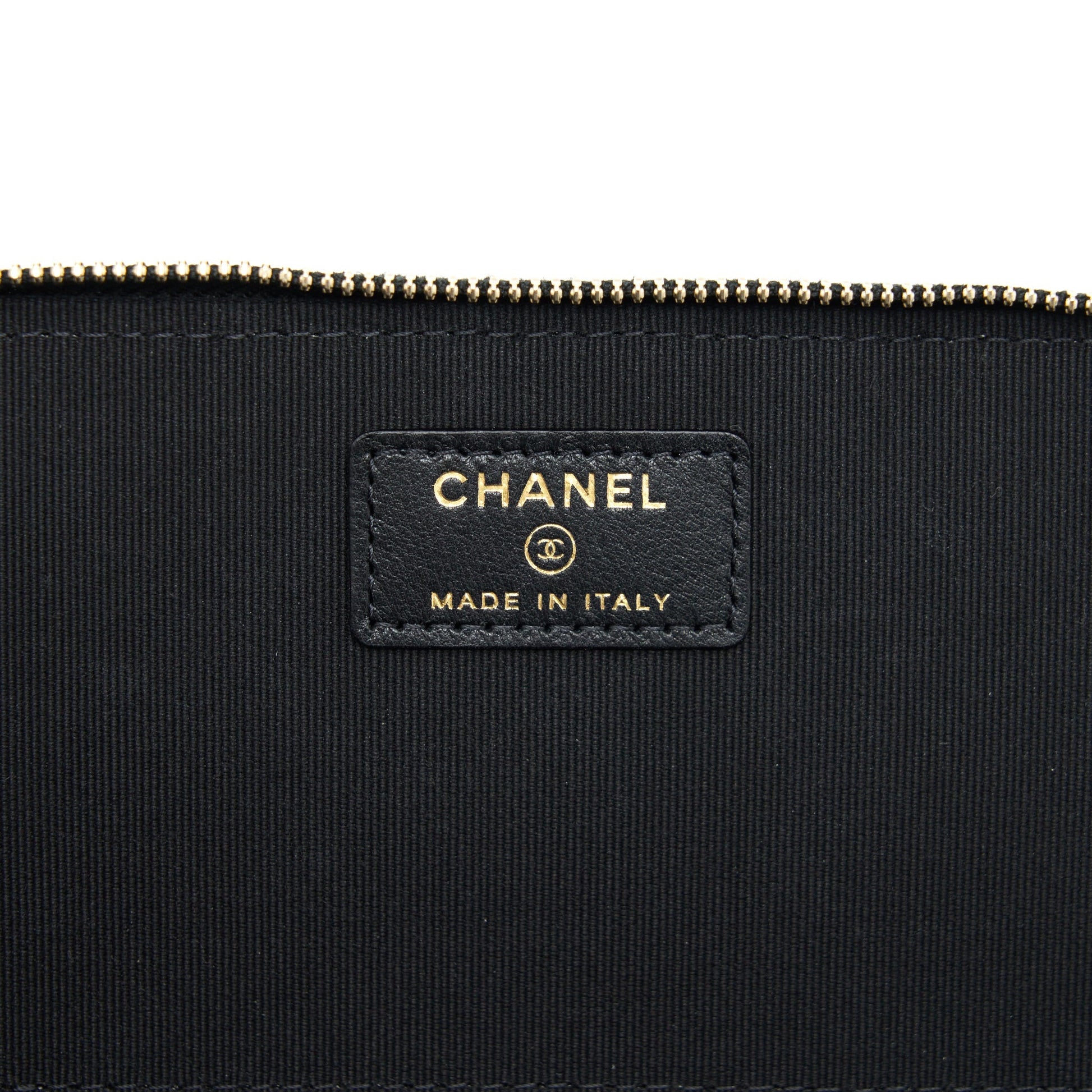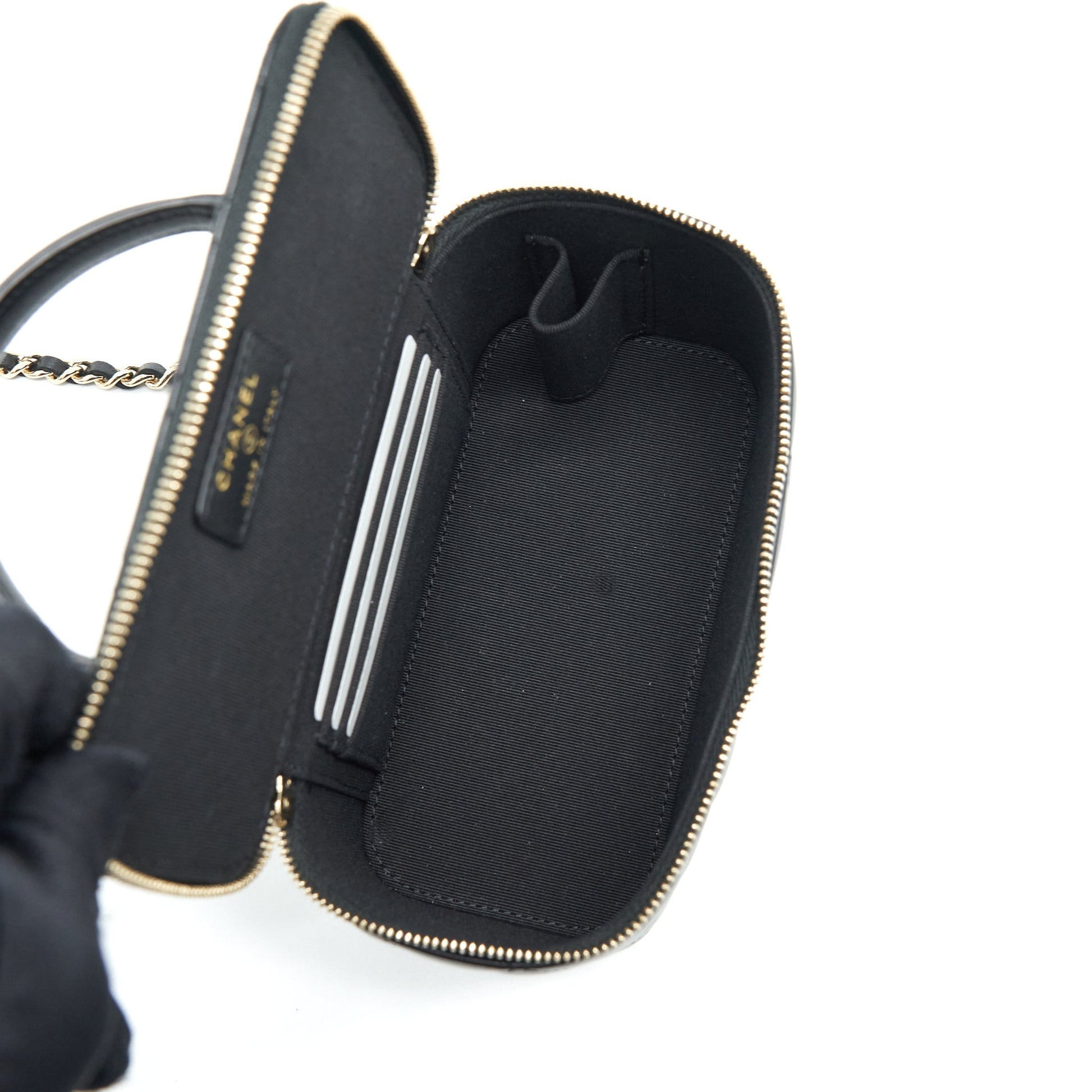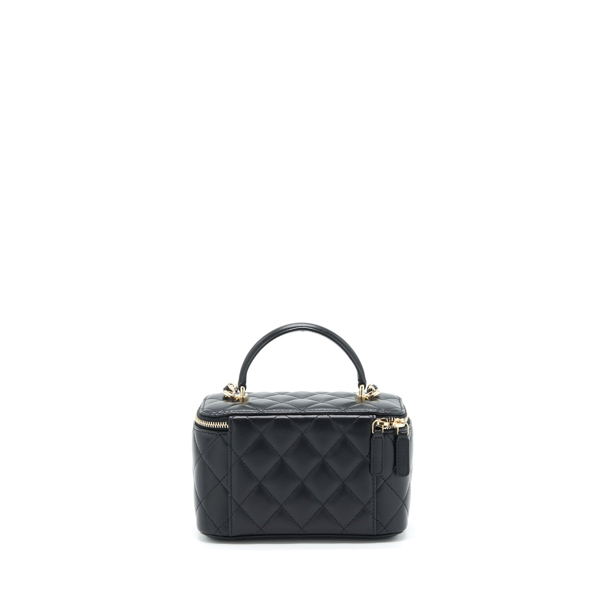 Chanel Top Handle Long Vanity With Chain Lambskin Black GHW