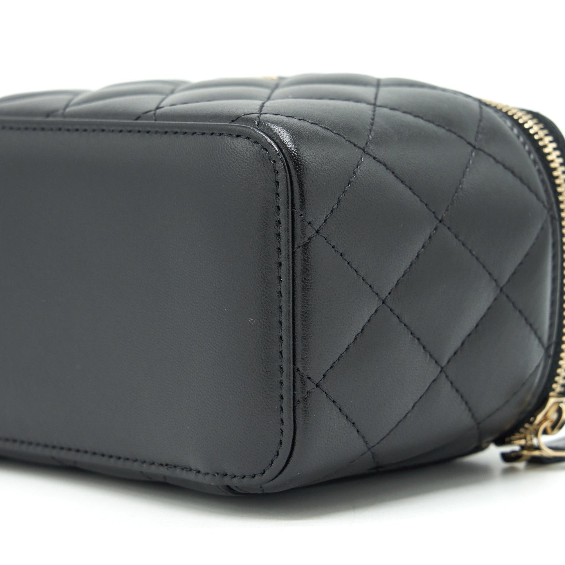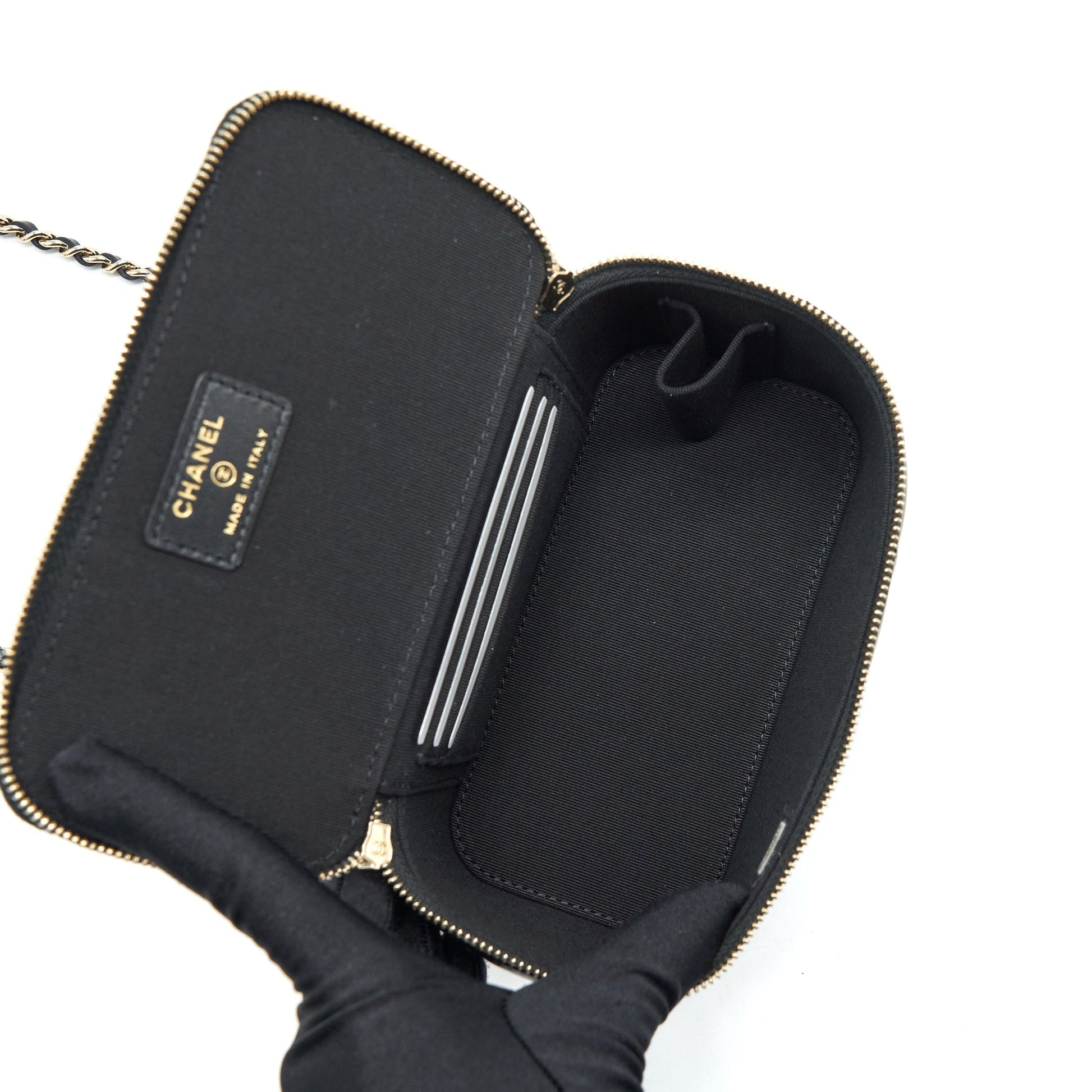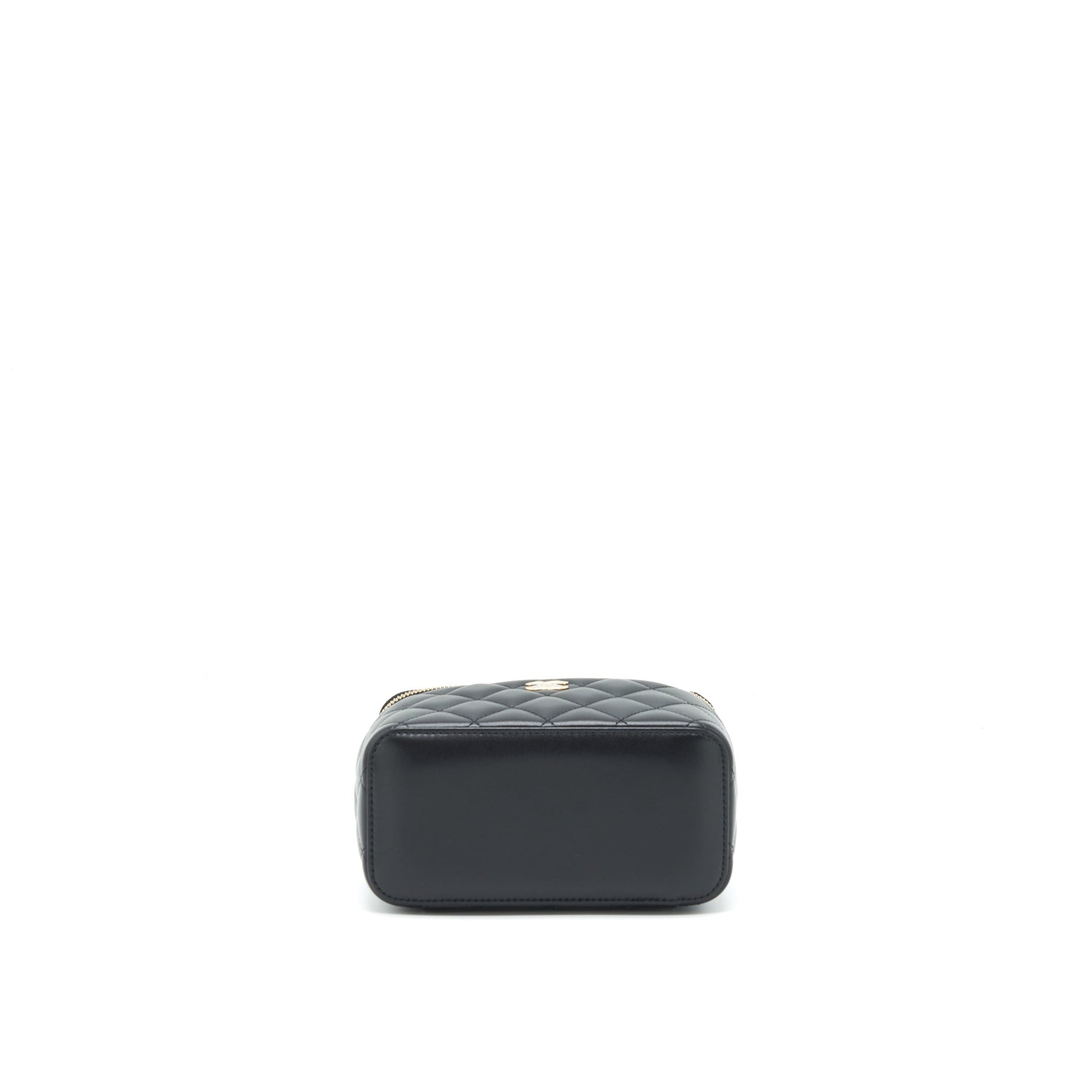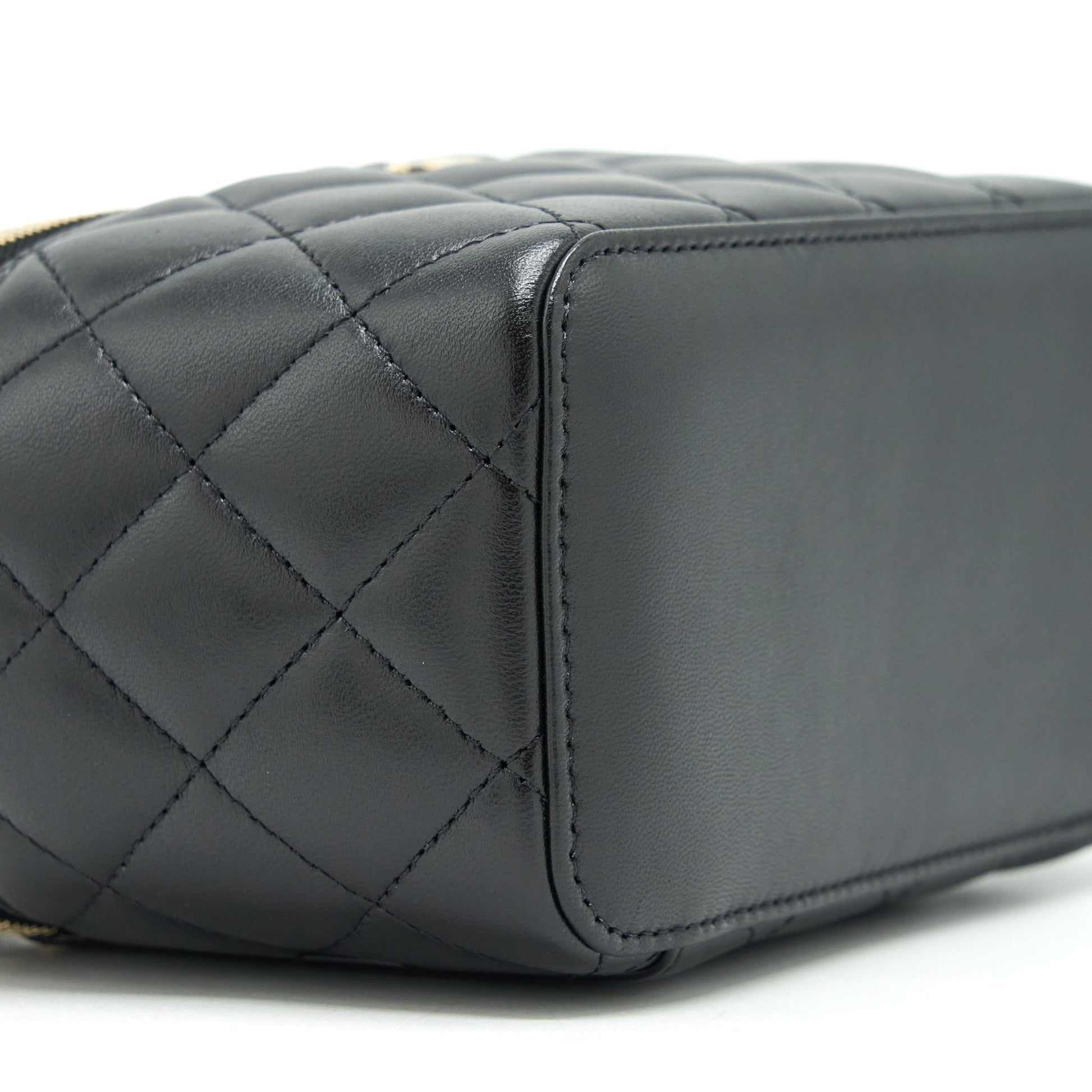Chanel Top Handle Long Vanity With Chain Lambskin Black LGHW
