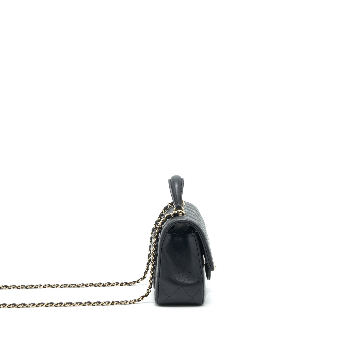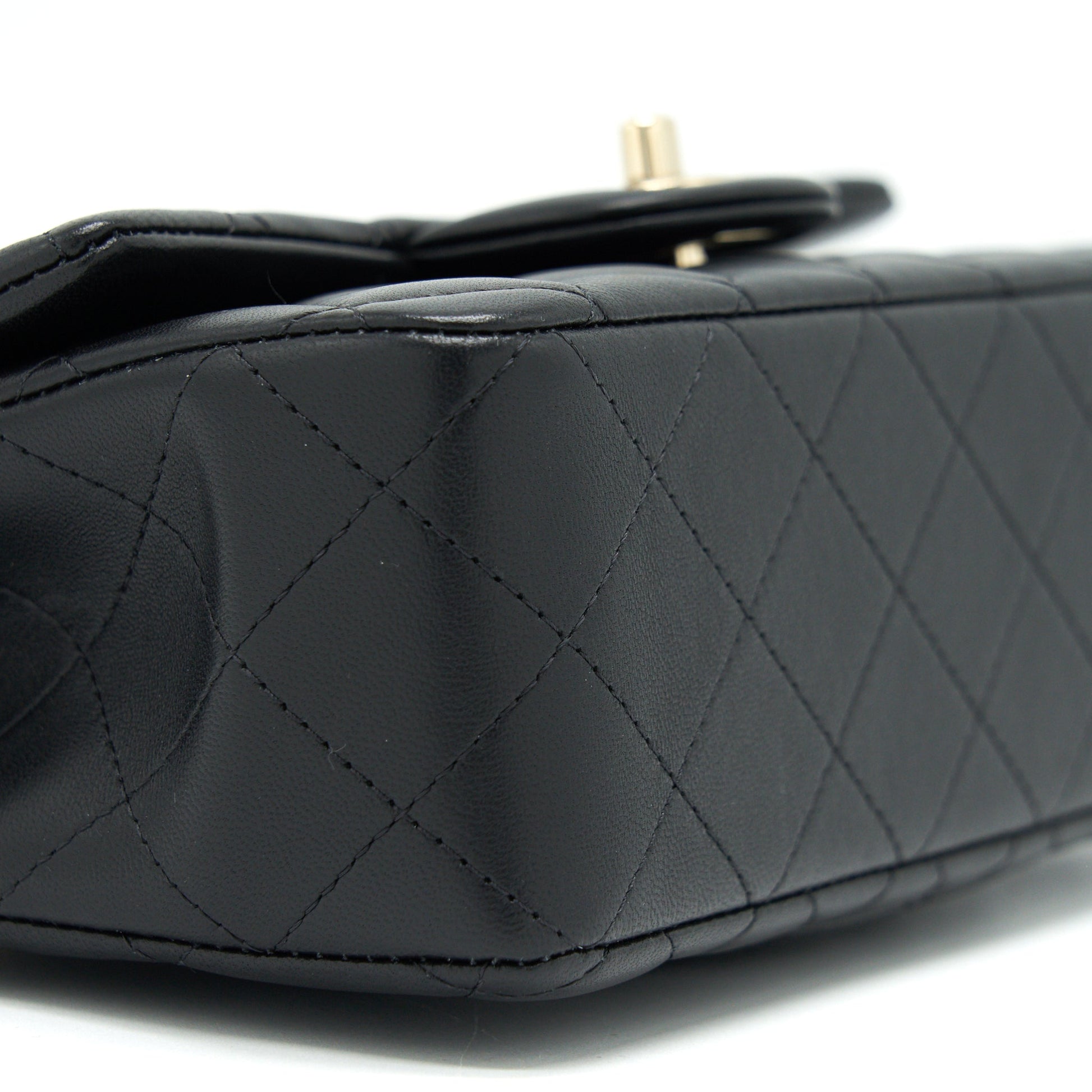 Chanel Top Handle Mini Rectangular Flap Bag Lambskin Black LGHW (Microchip)