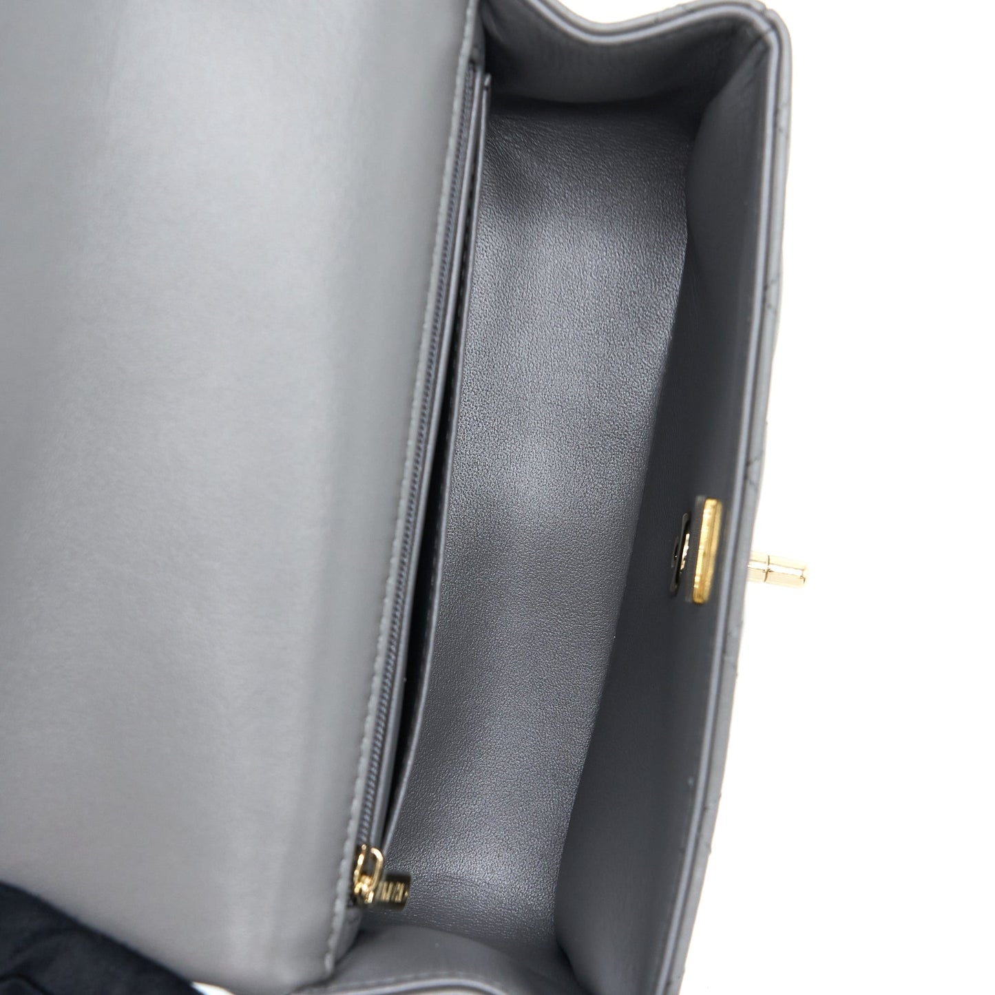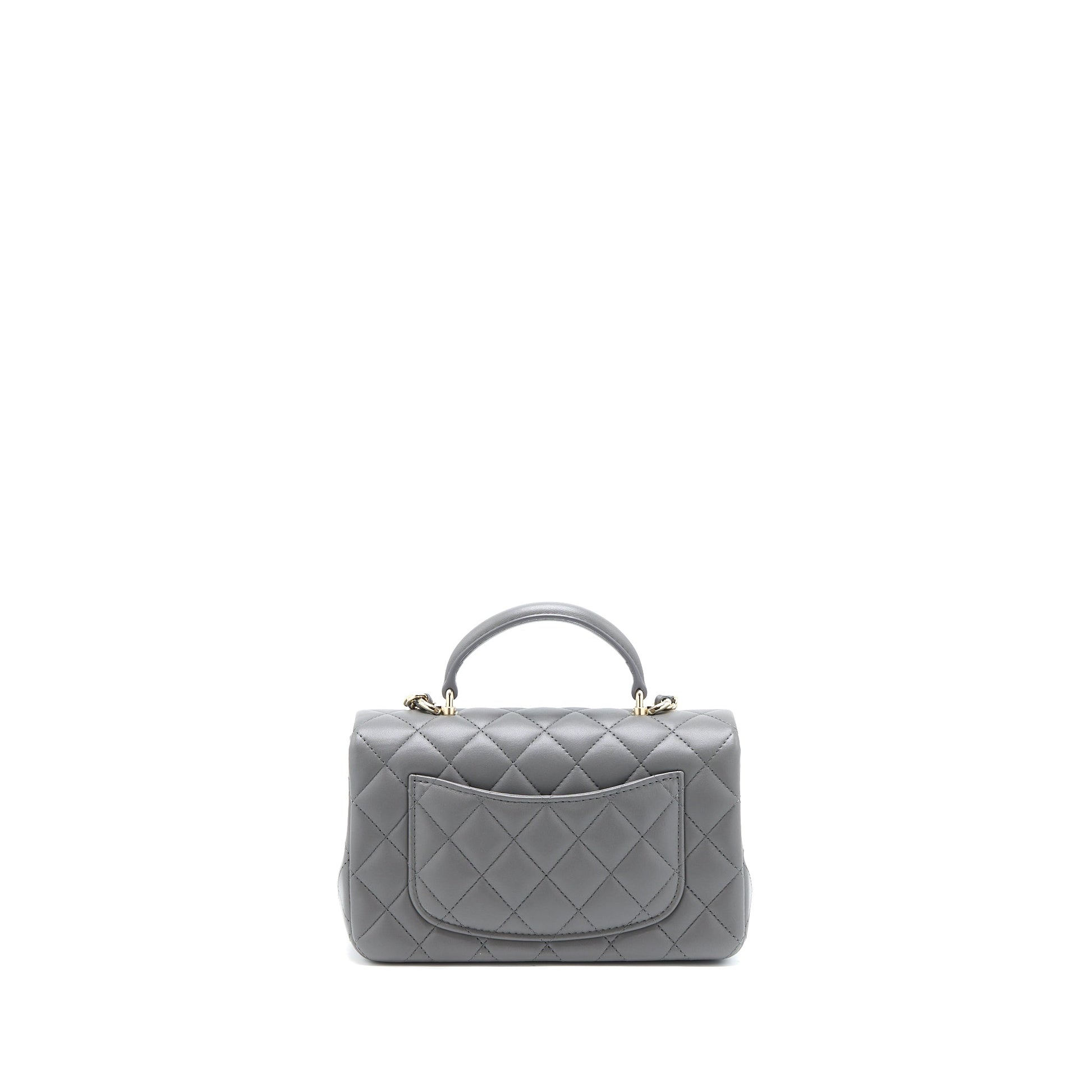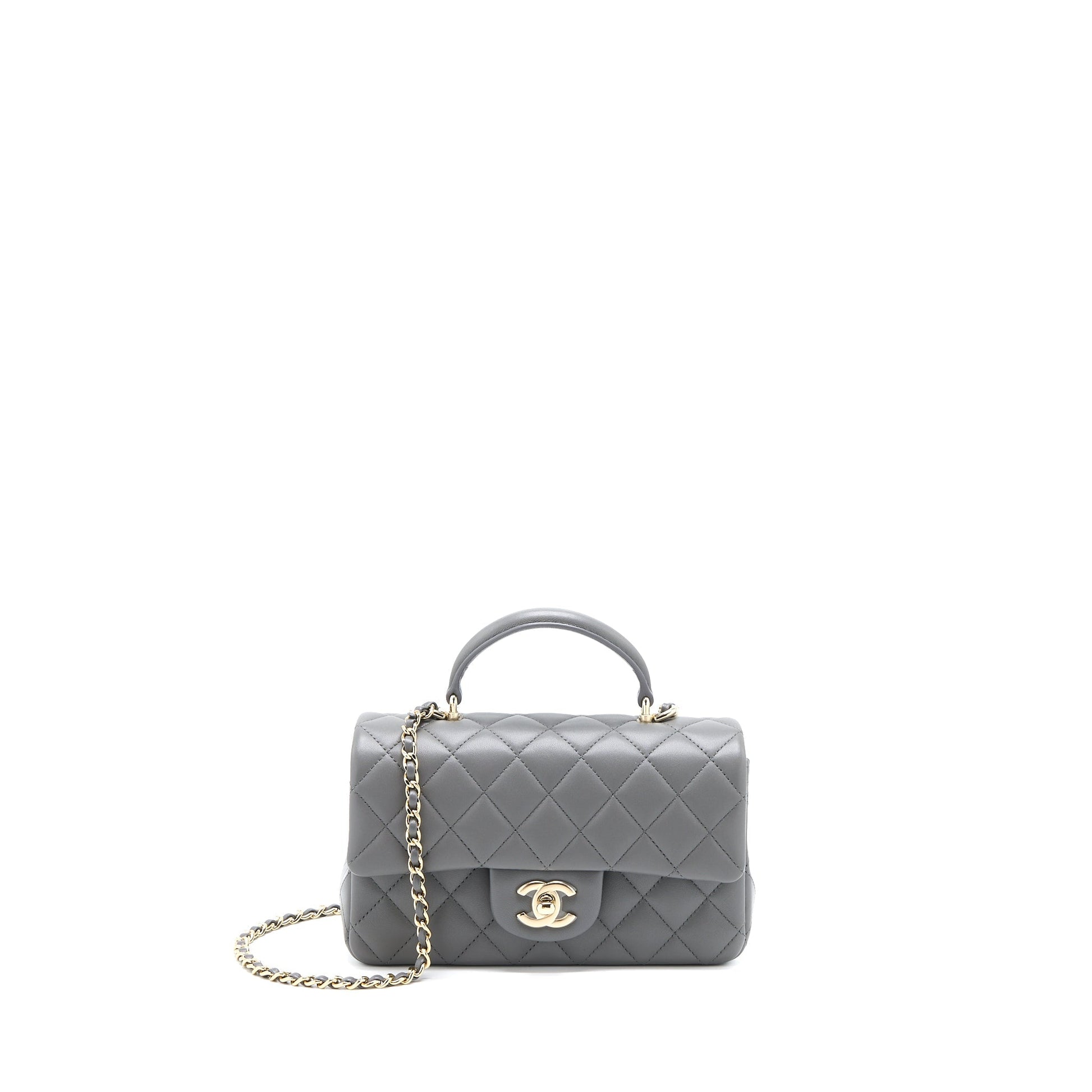 Chanel Top Handle Mini Rectangular Flap Bag Lambskin Grey LGHW (Microchip)