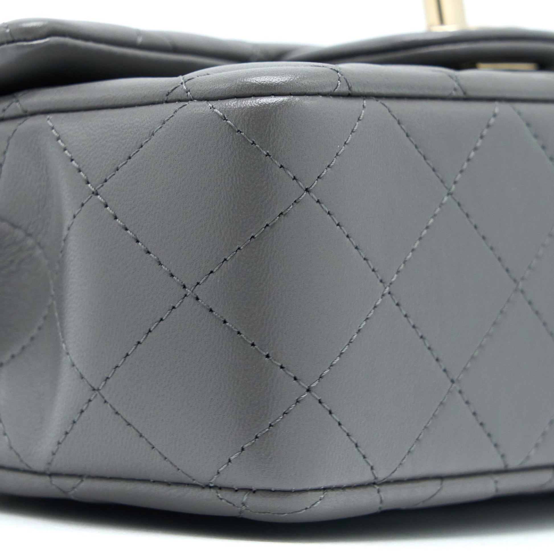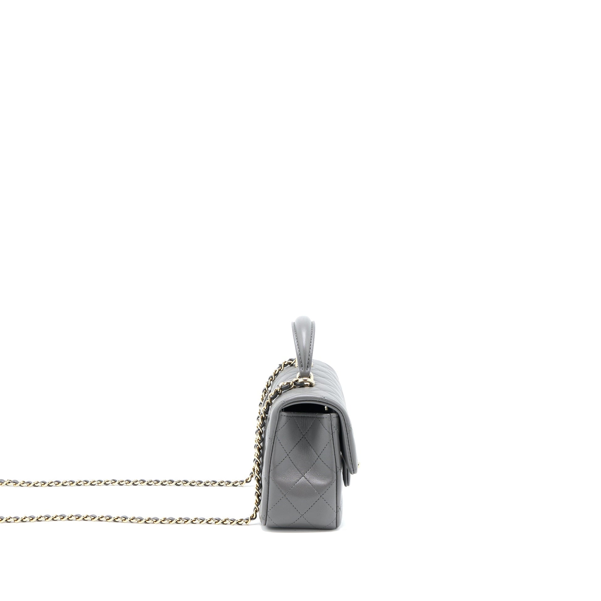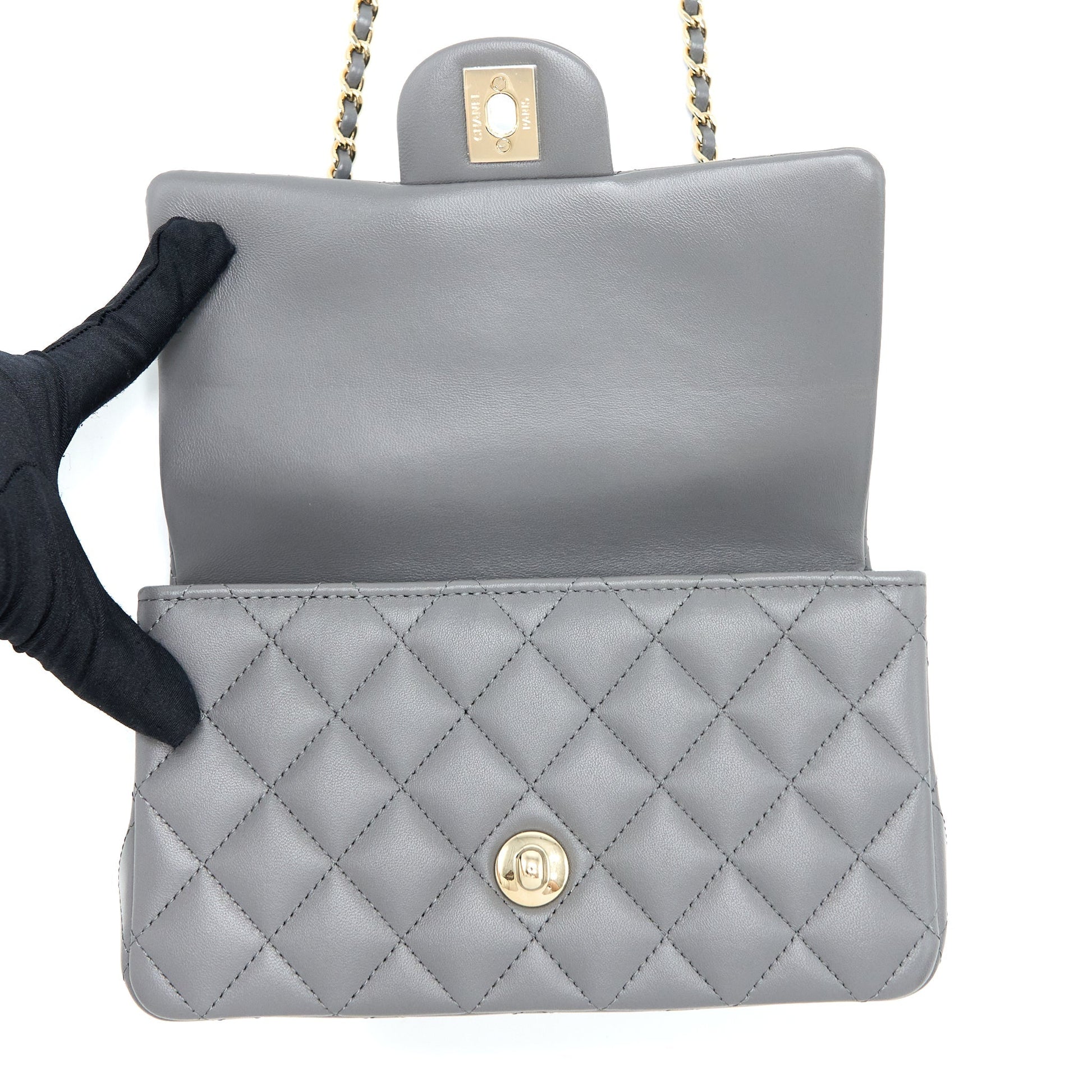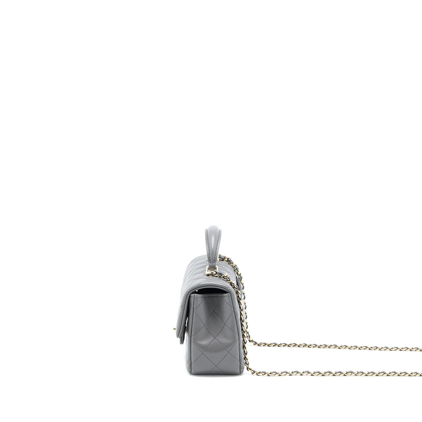 Chanel Top Handle Mini Rectangular Flap Bag Lambskin Grey LGHW (Microchip)