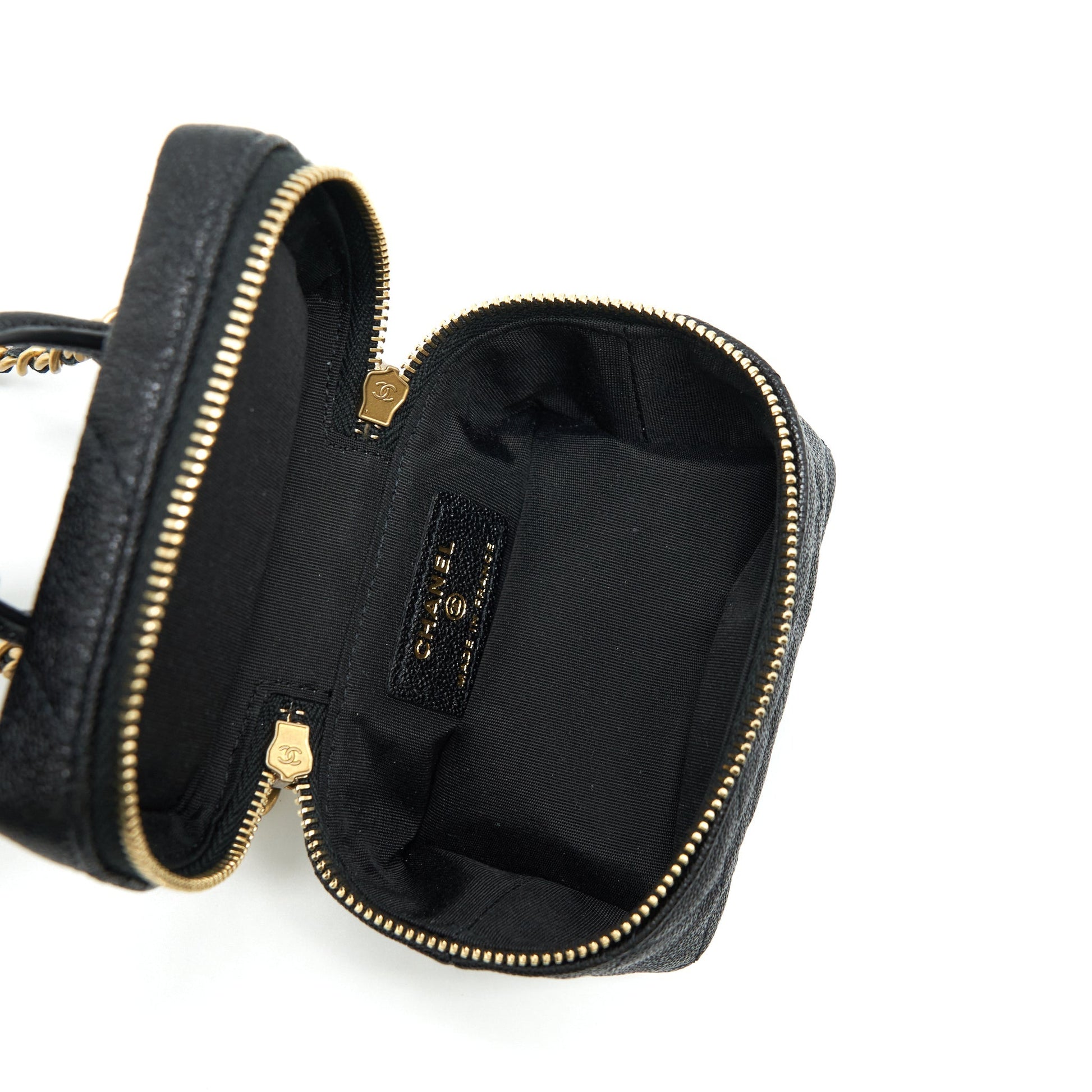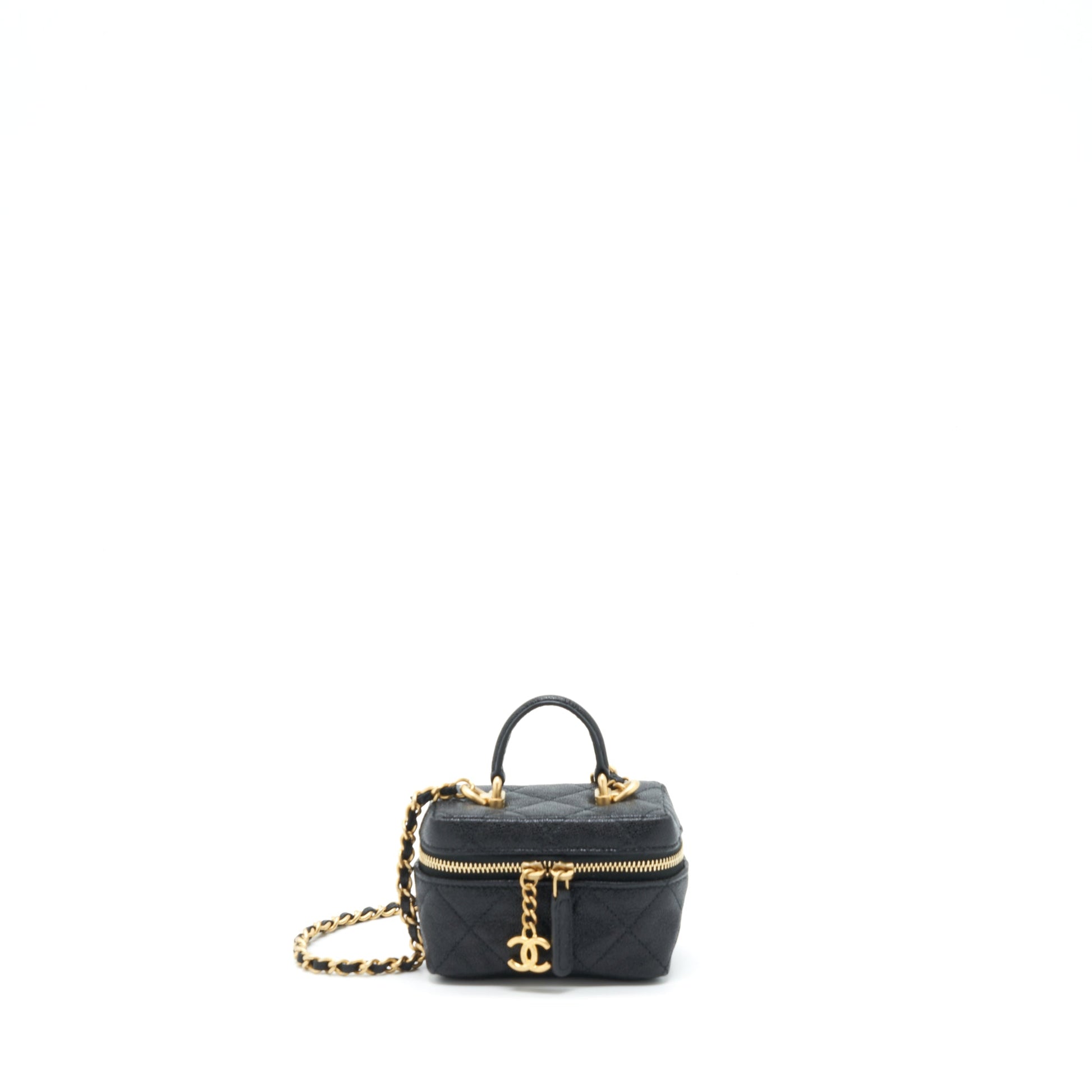 Chanel top handle mini vanity with chain grained calfskin black with GHW