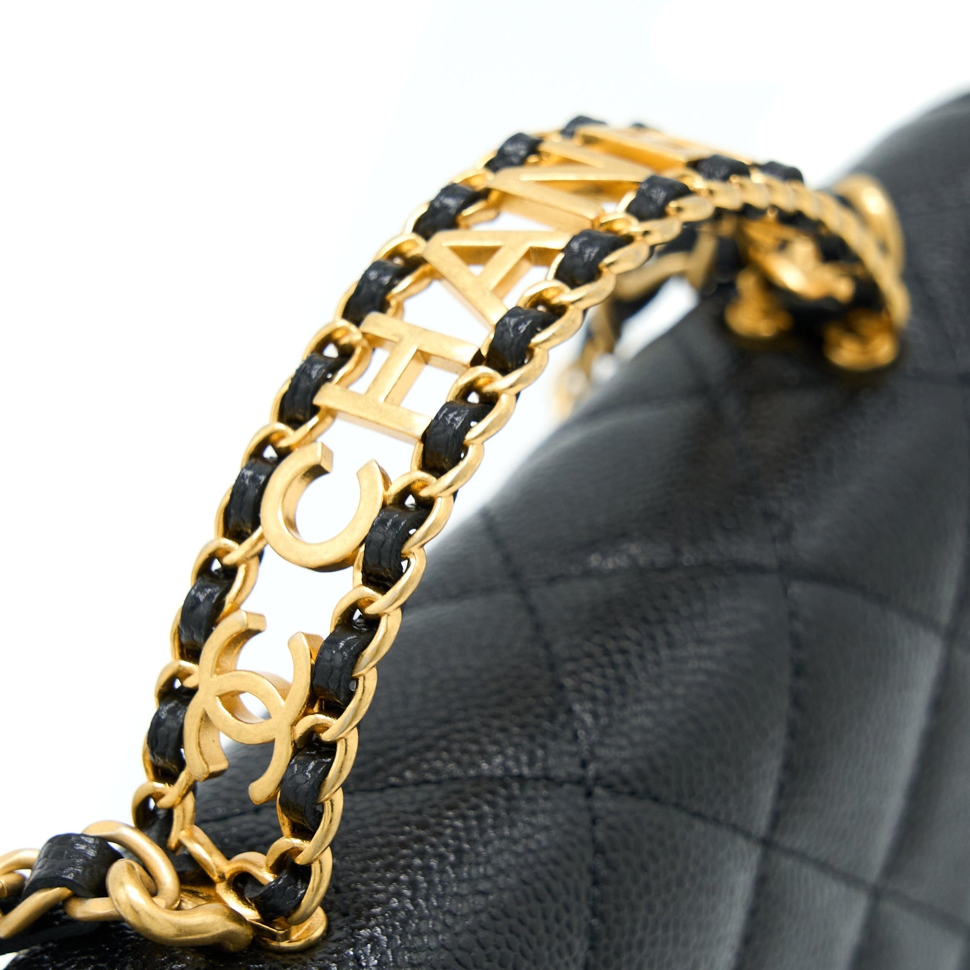 Chanel Top Handle Wallet On Chain Caviar Black GHW (Microchip)