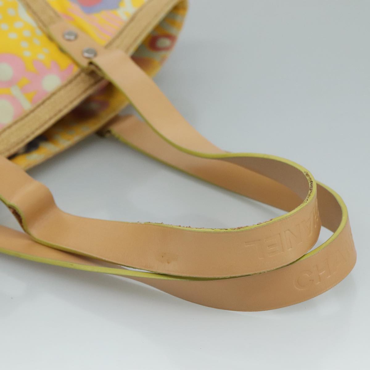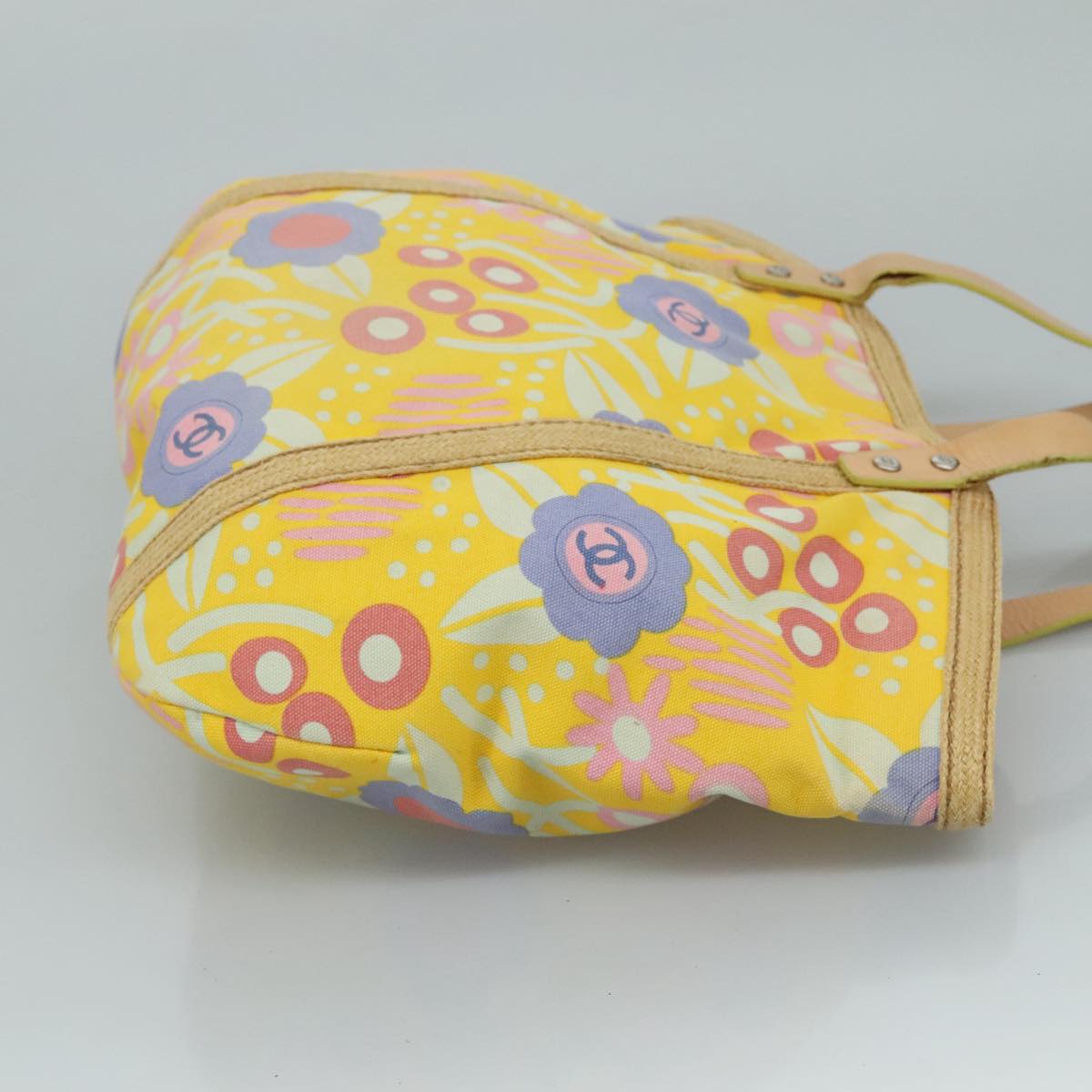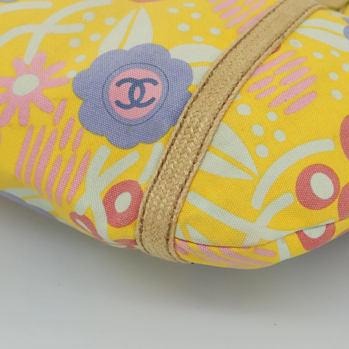 CHANEL Tote Bag Canvas Leather Yellow Beige Silver CC 109460