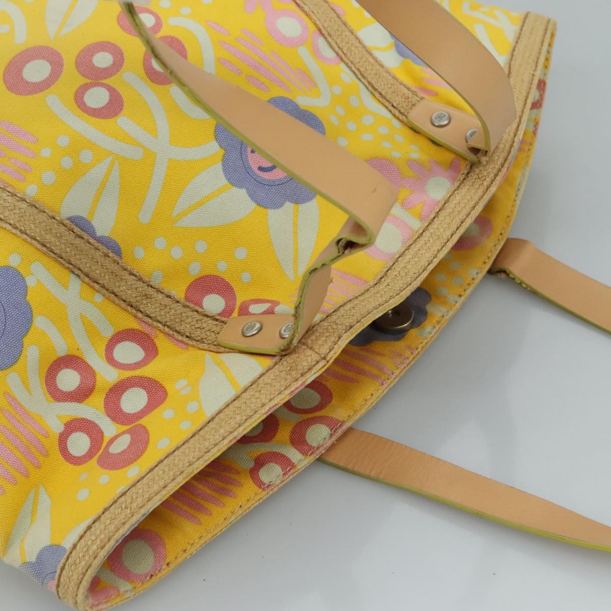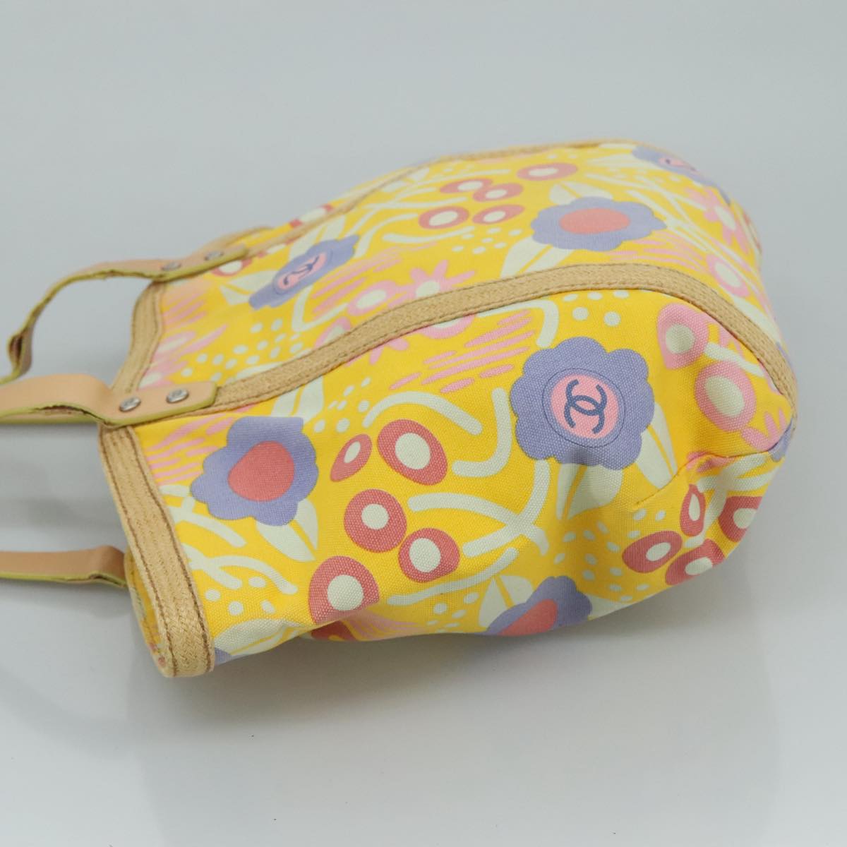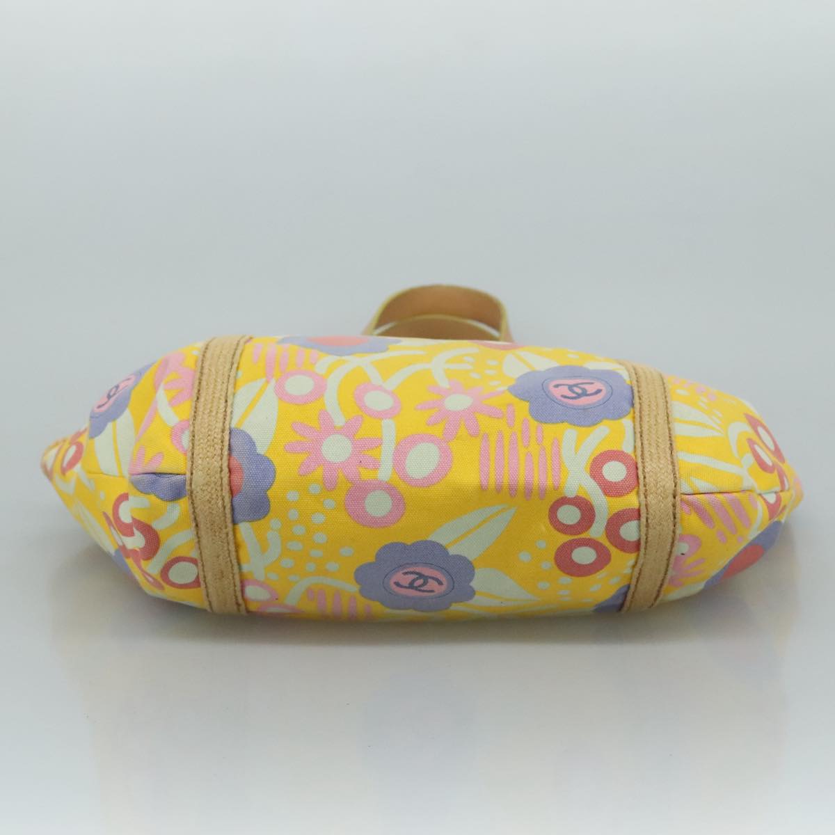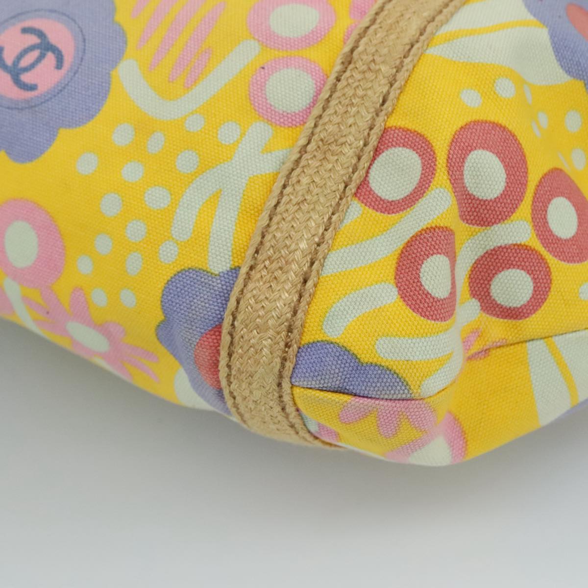 CHANEL Tote Bag Canvas Leather Yellow Beige Silver CC 109460