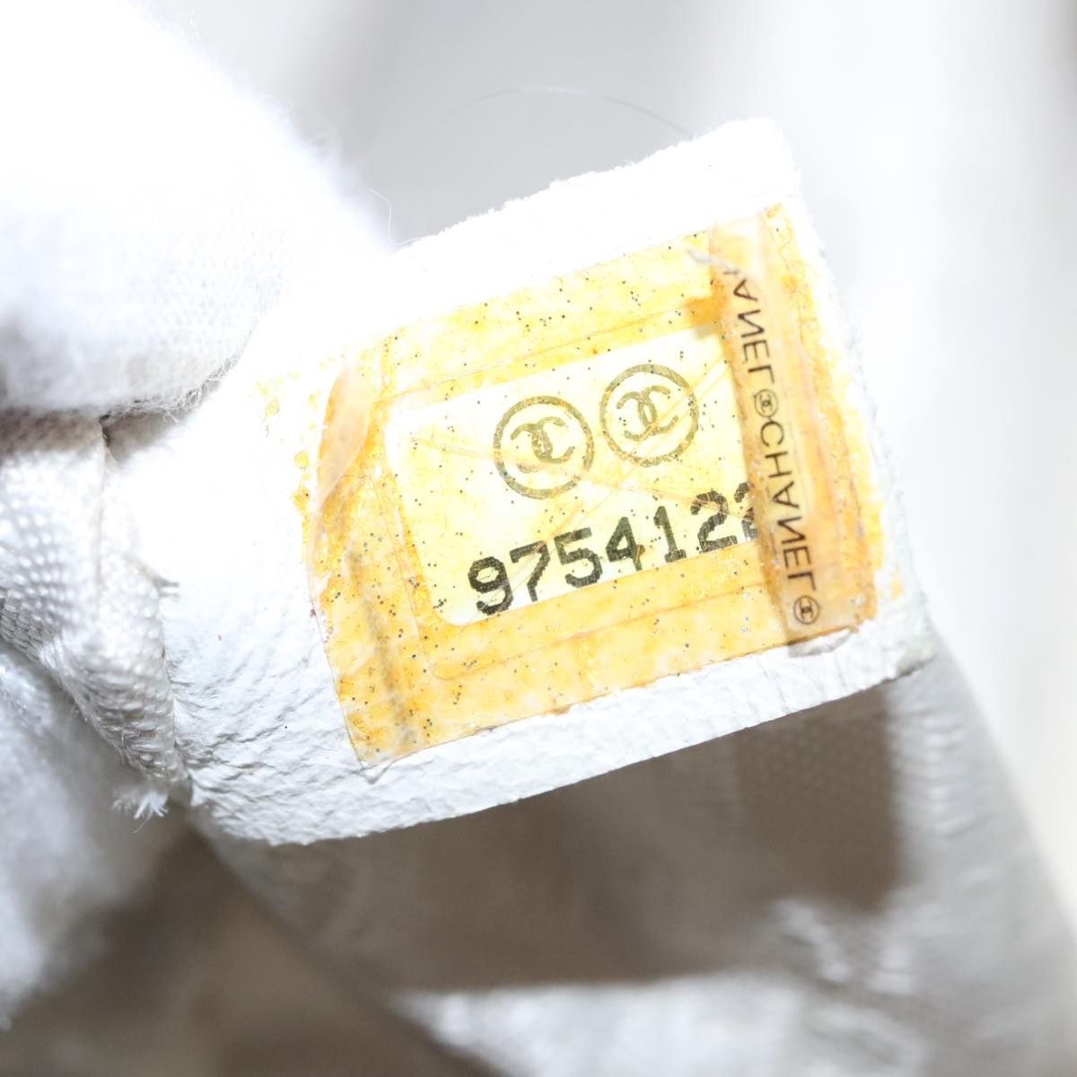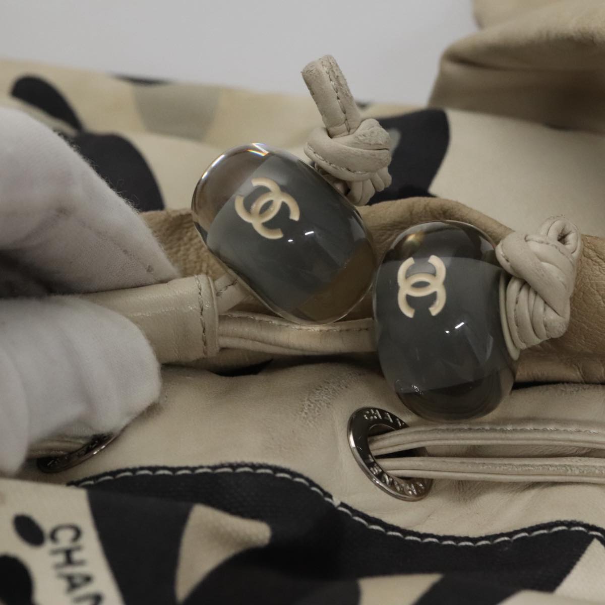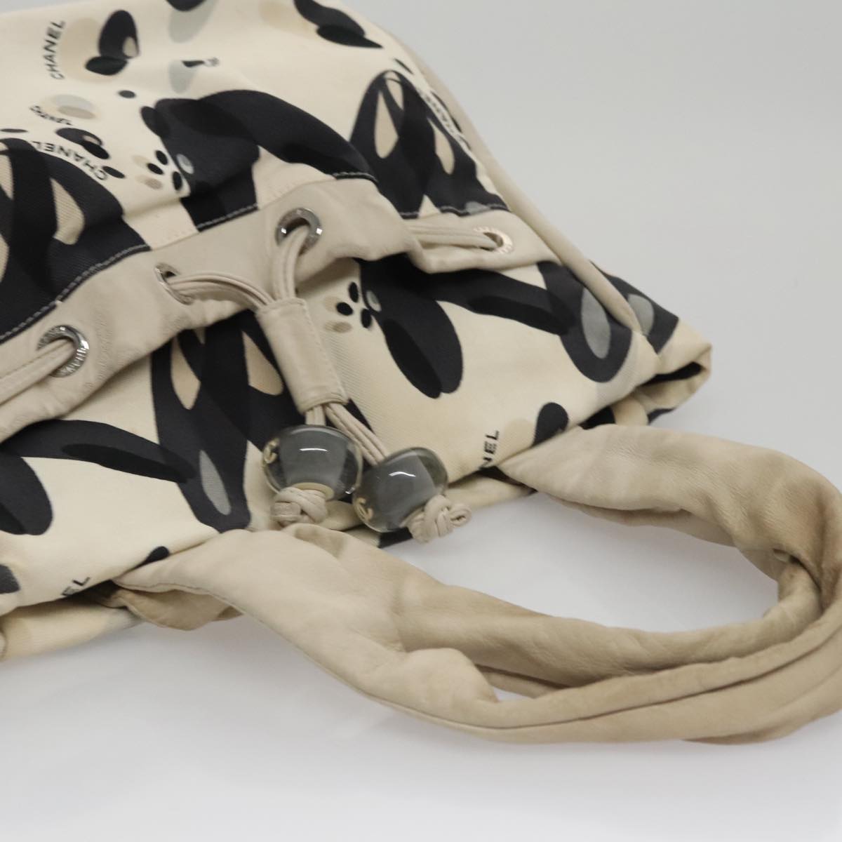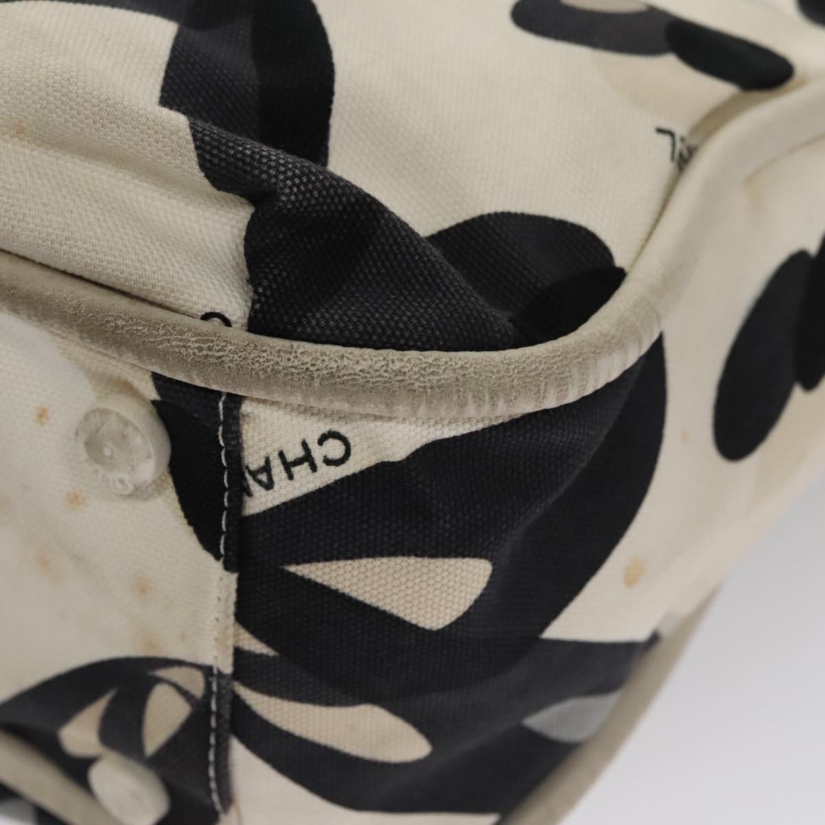 CHANEL Tote Bag Canvas White Black Silver CC bs22011