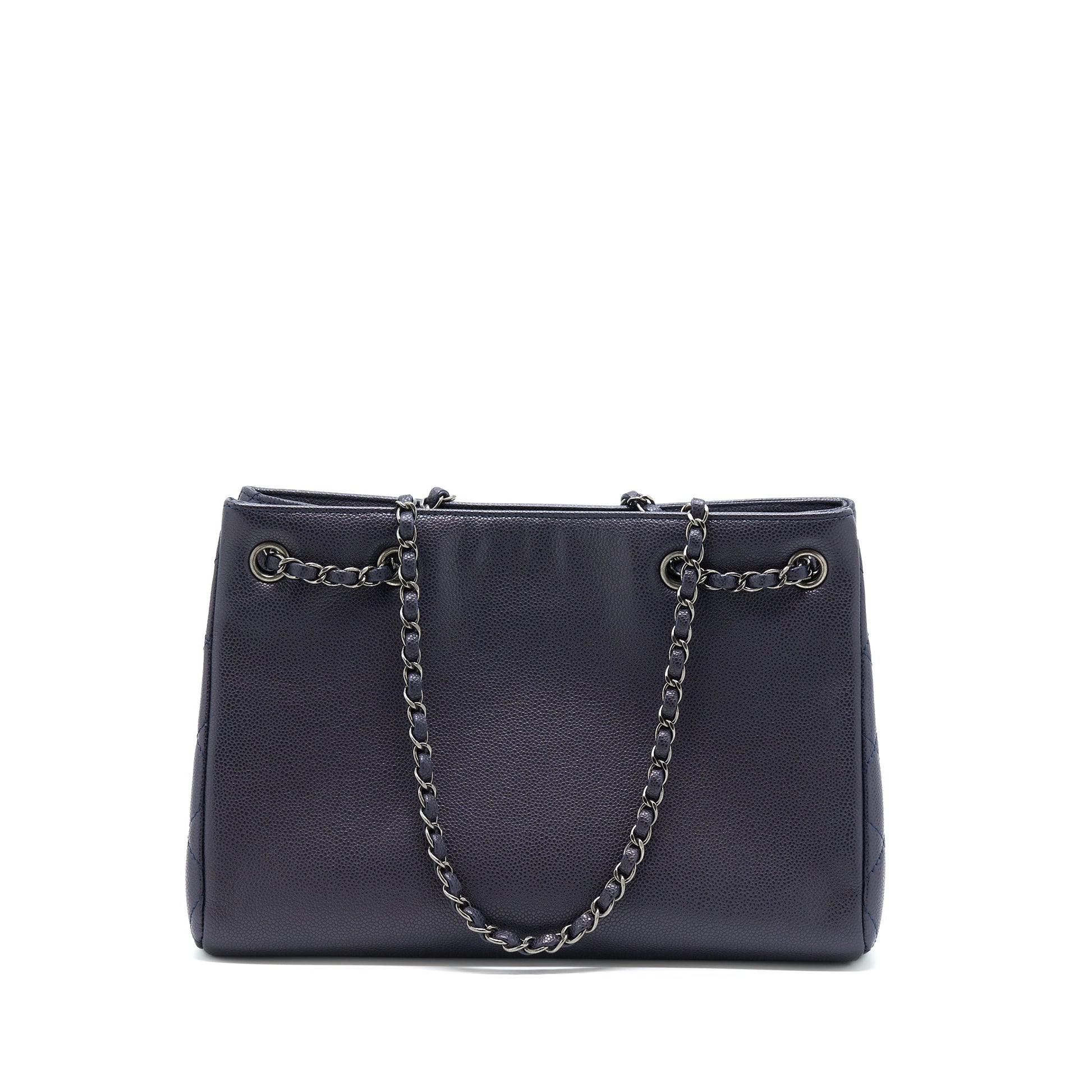 Chanel Tote Bag Caviar Navy Ruthenium Hardware
