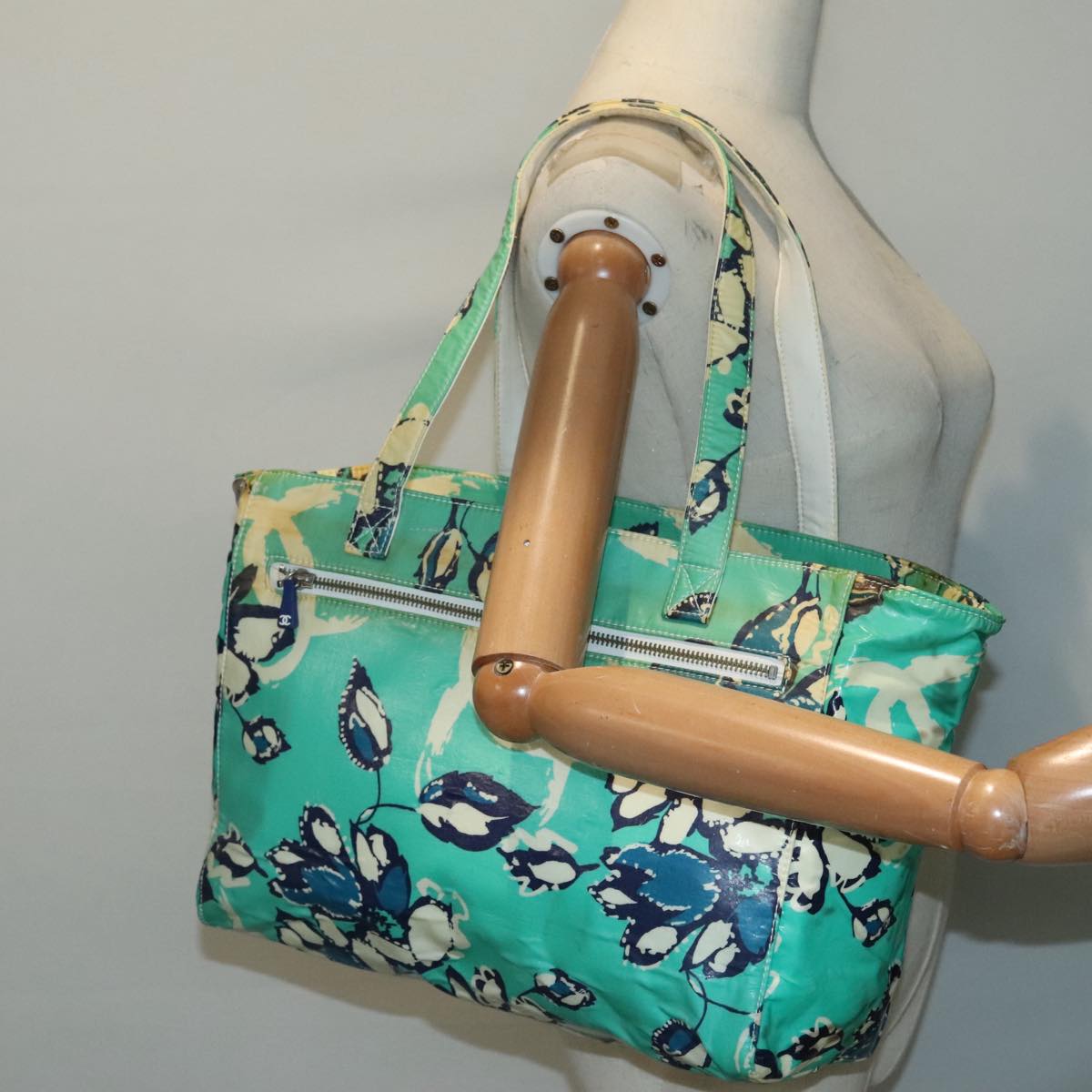CHANEL Tote Bag Vinyl Peppermint Silver CC 92963