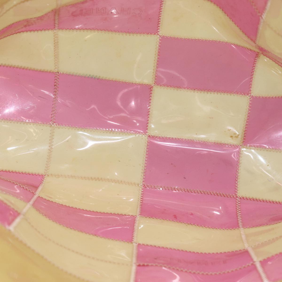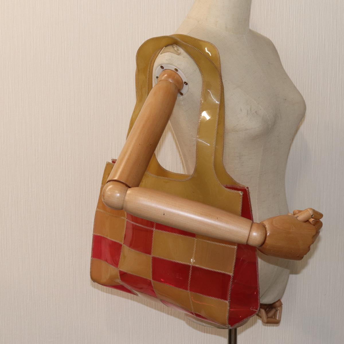 CHANEL Tote Bag Vinyl Red Beige CC bs15860