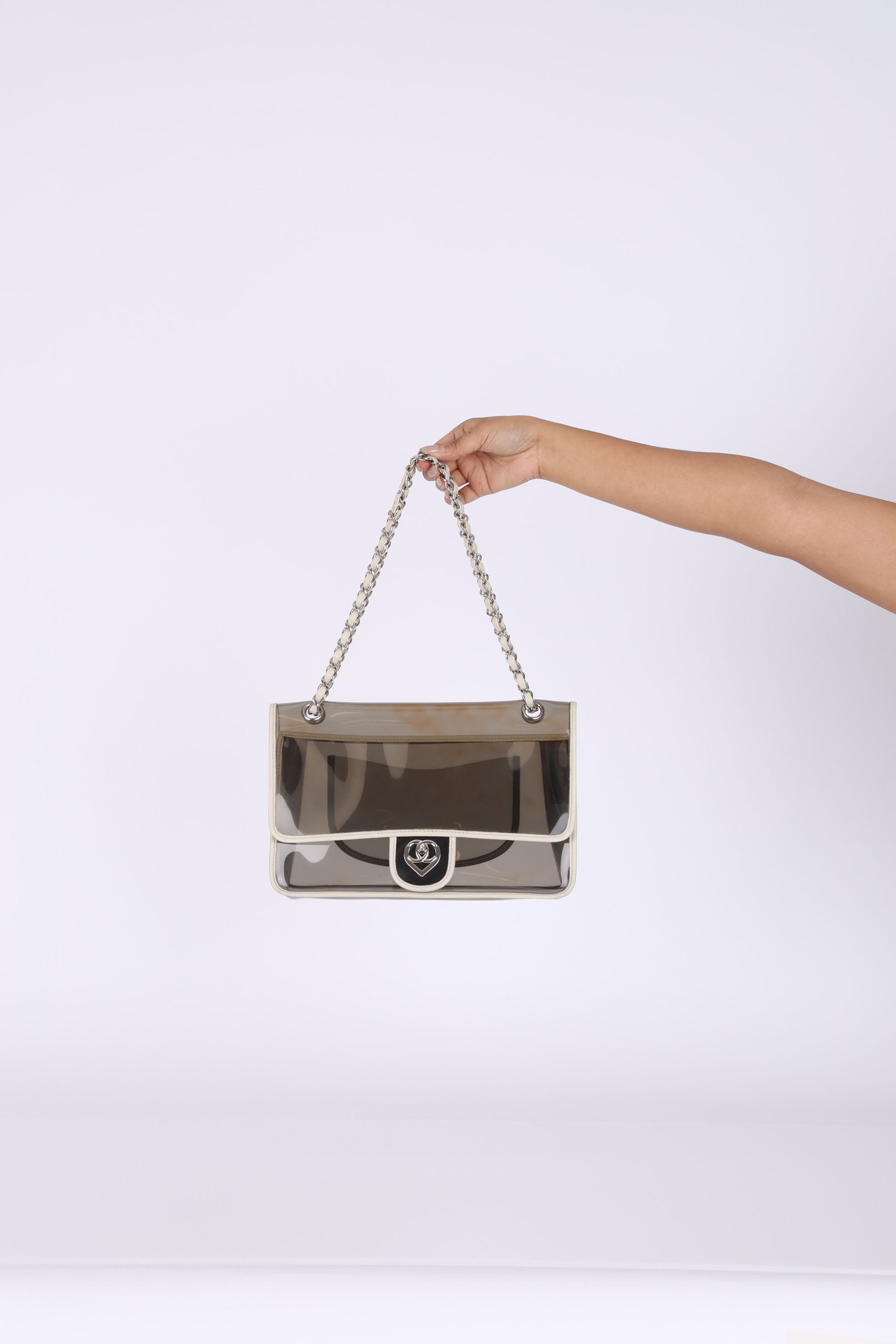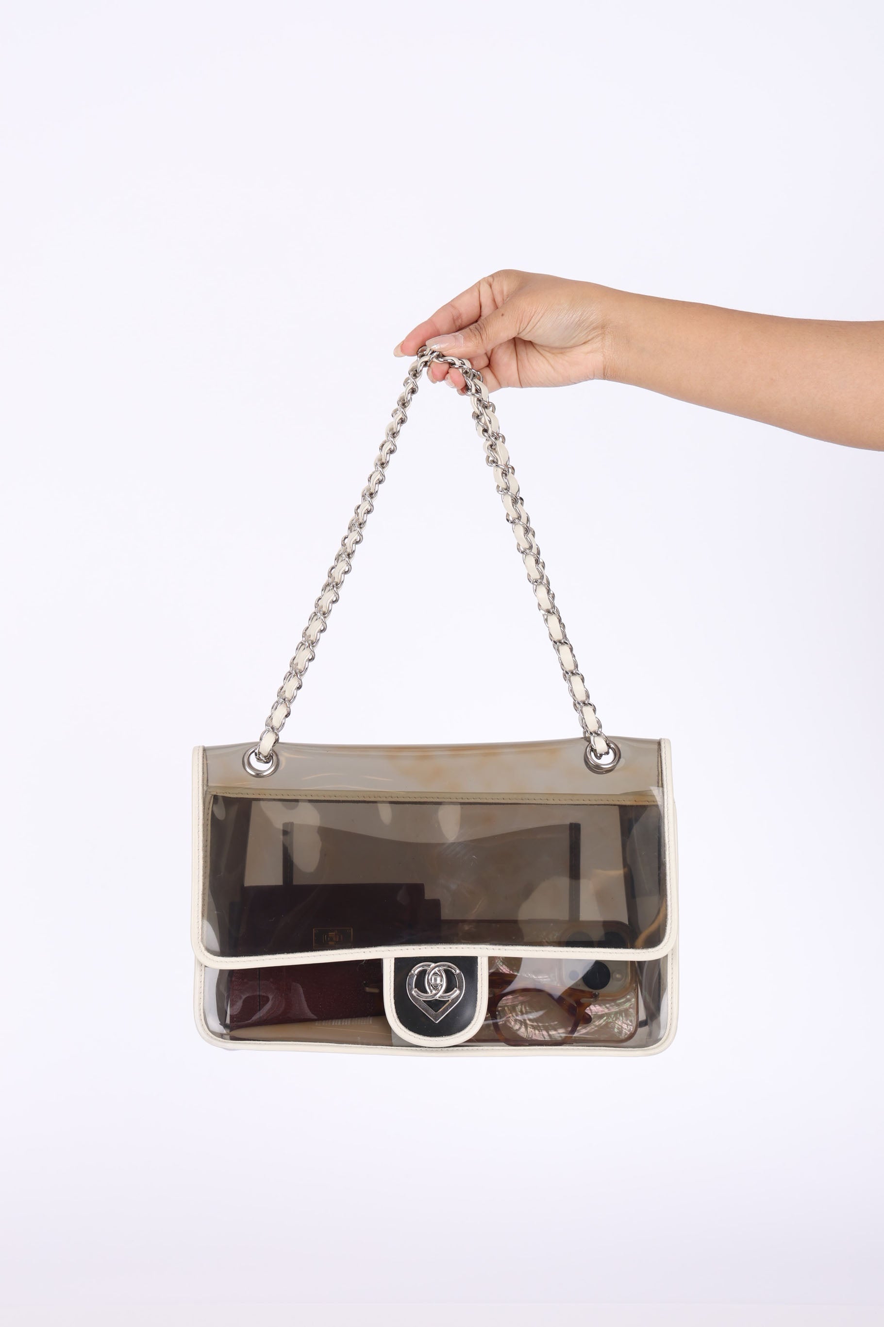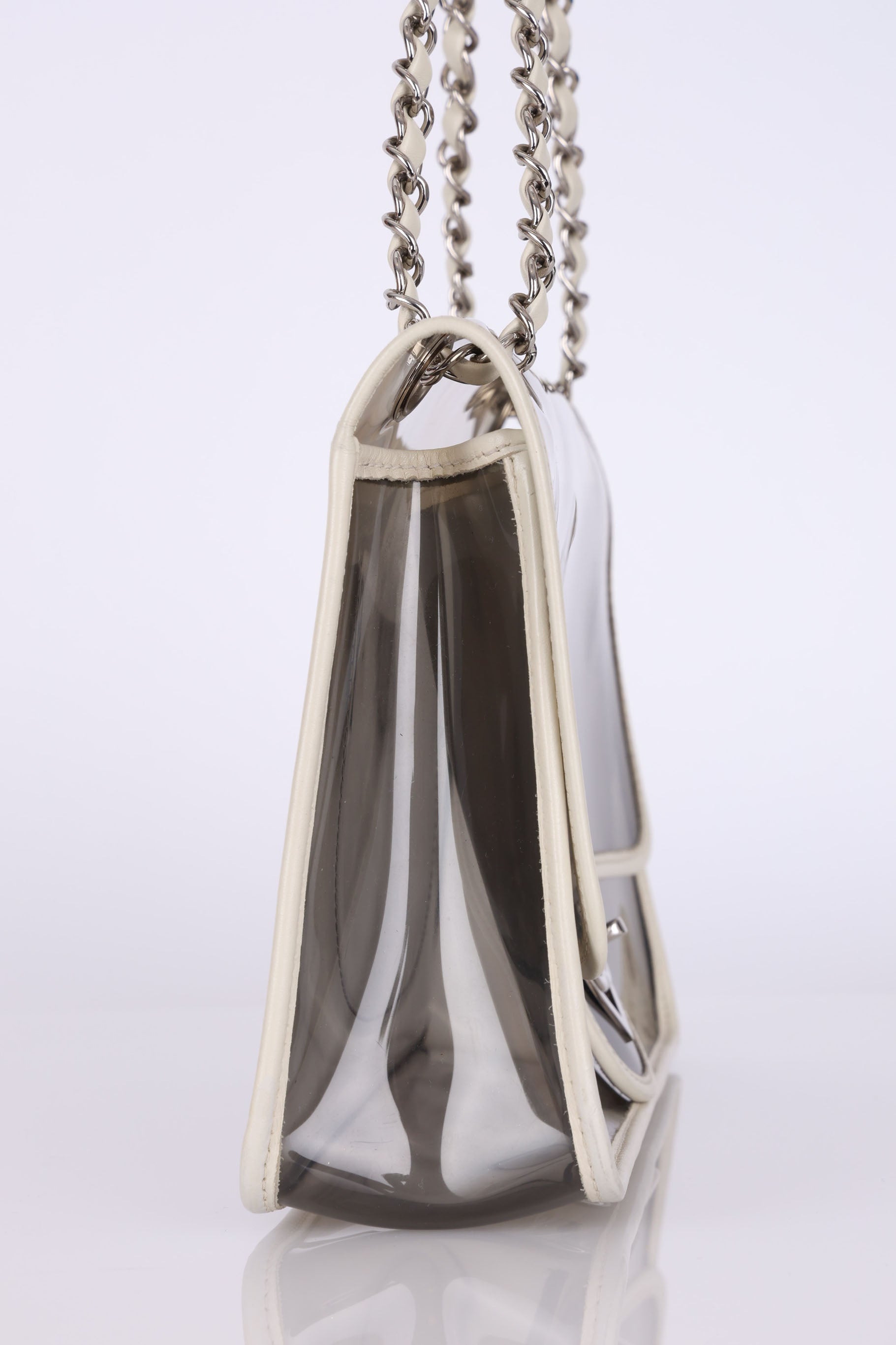 This beautiful Chanel piece is crafted in the nostalgic PVC material from the early 2000s! Its versatility can easily edge up any outfit, and add a unique touch to your beach look this season. Also perfect for chic concert or festival use!