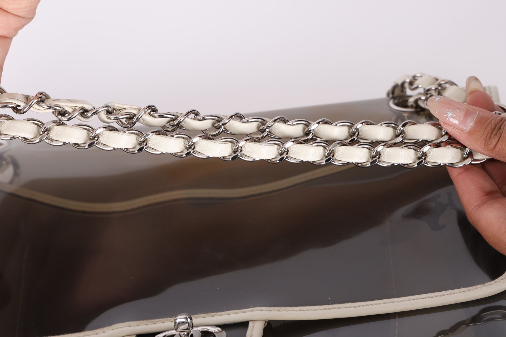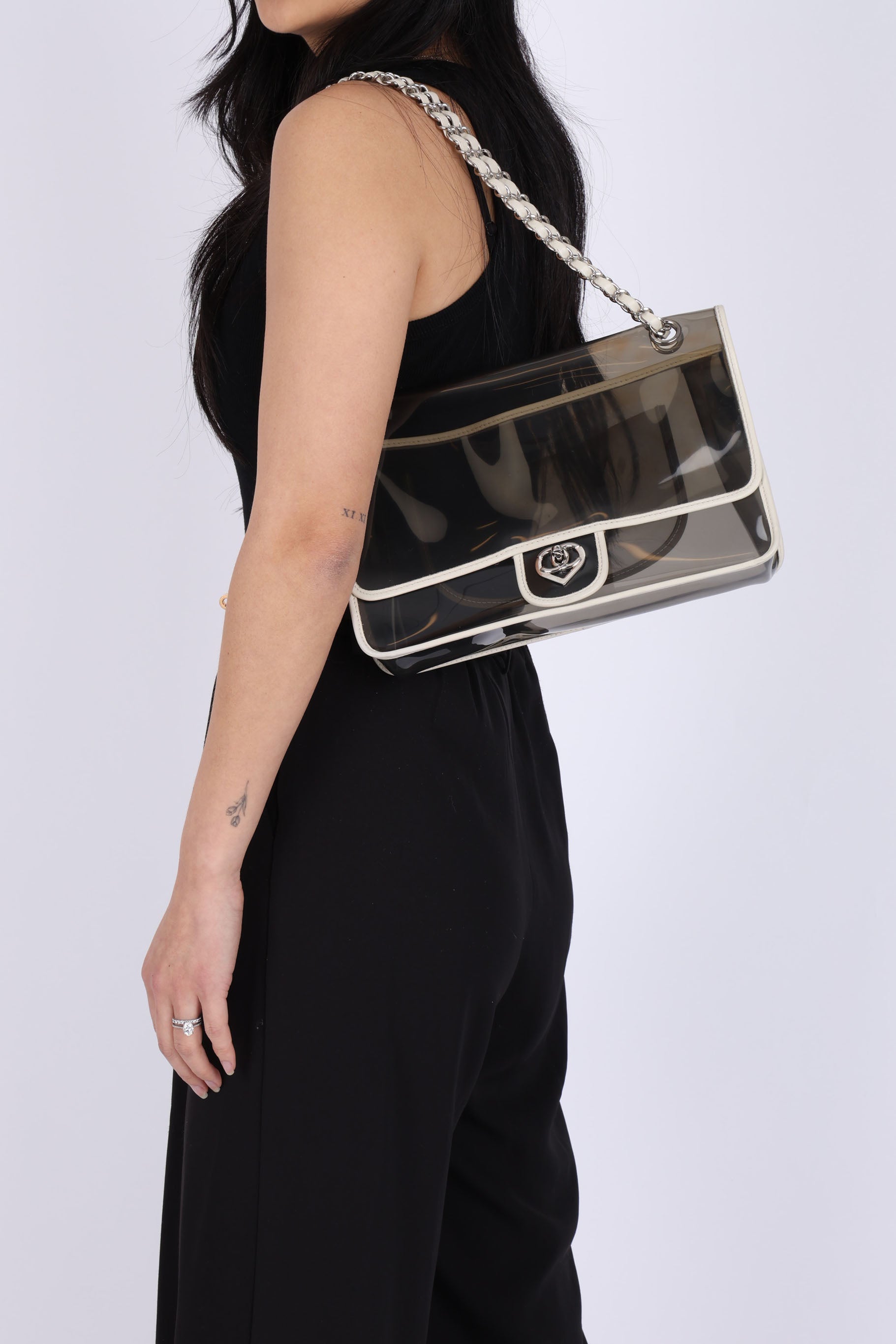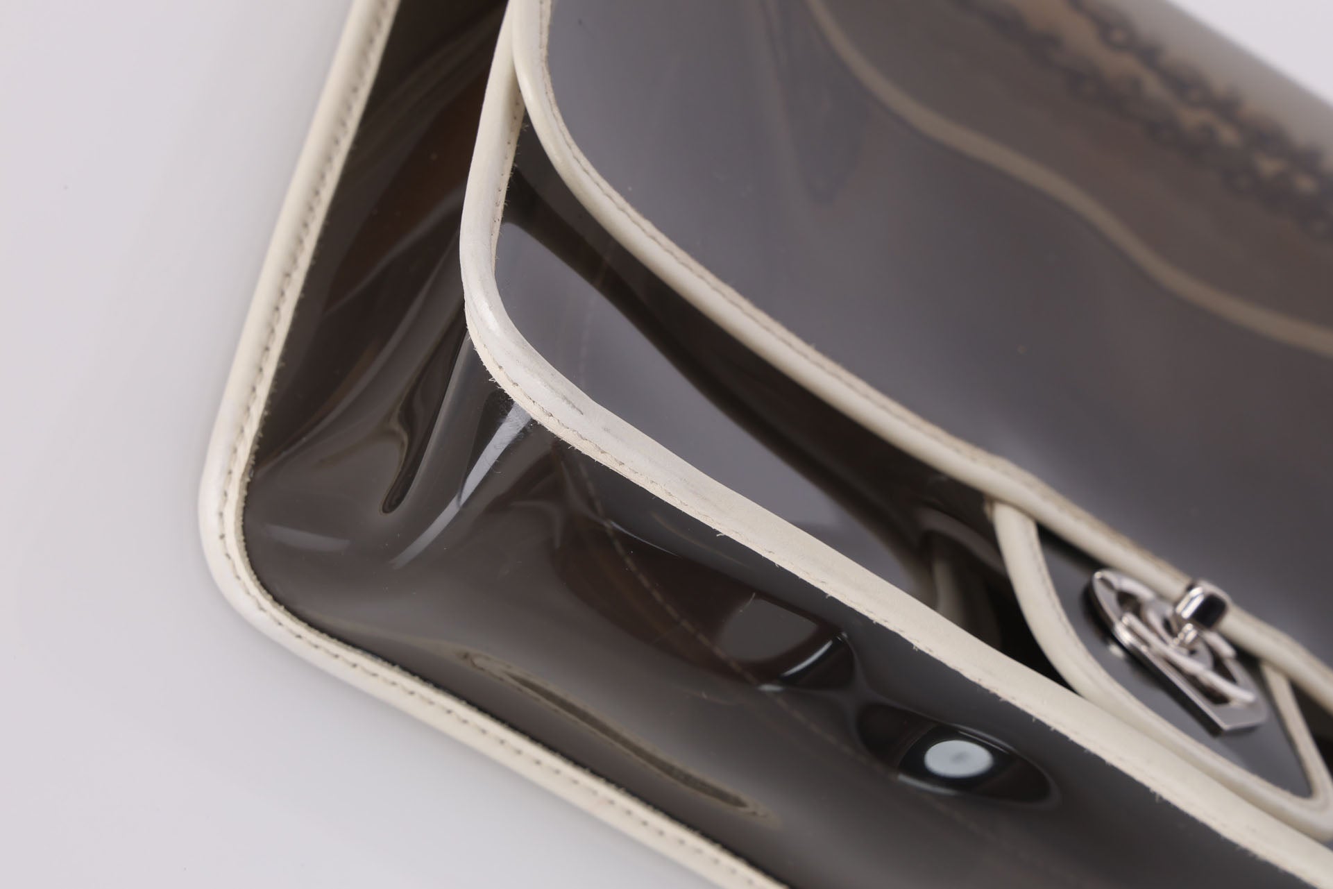 This beautiful Chanel piece is crafted in the nostalgic PVC material from the early 2000s! Its versatility can easily edge up any outfit, and add a unique touch to your beach look this season. Also perfect for chic concert or festival use!