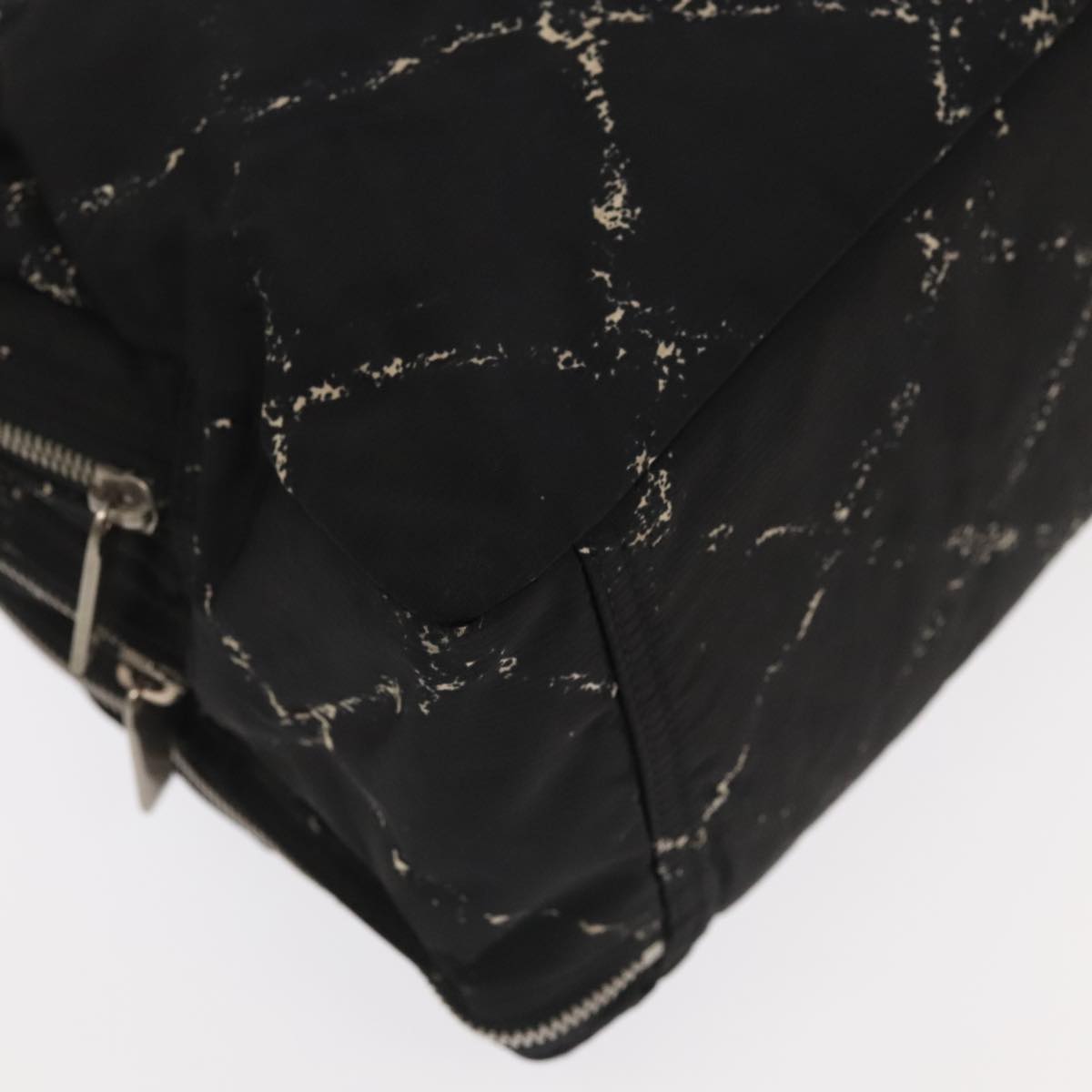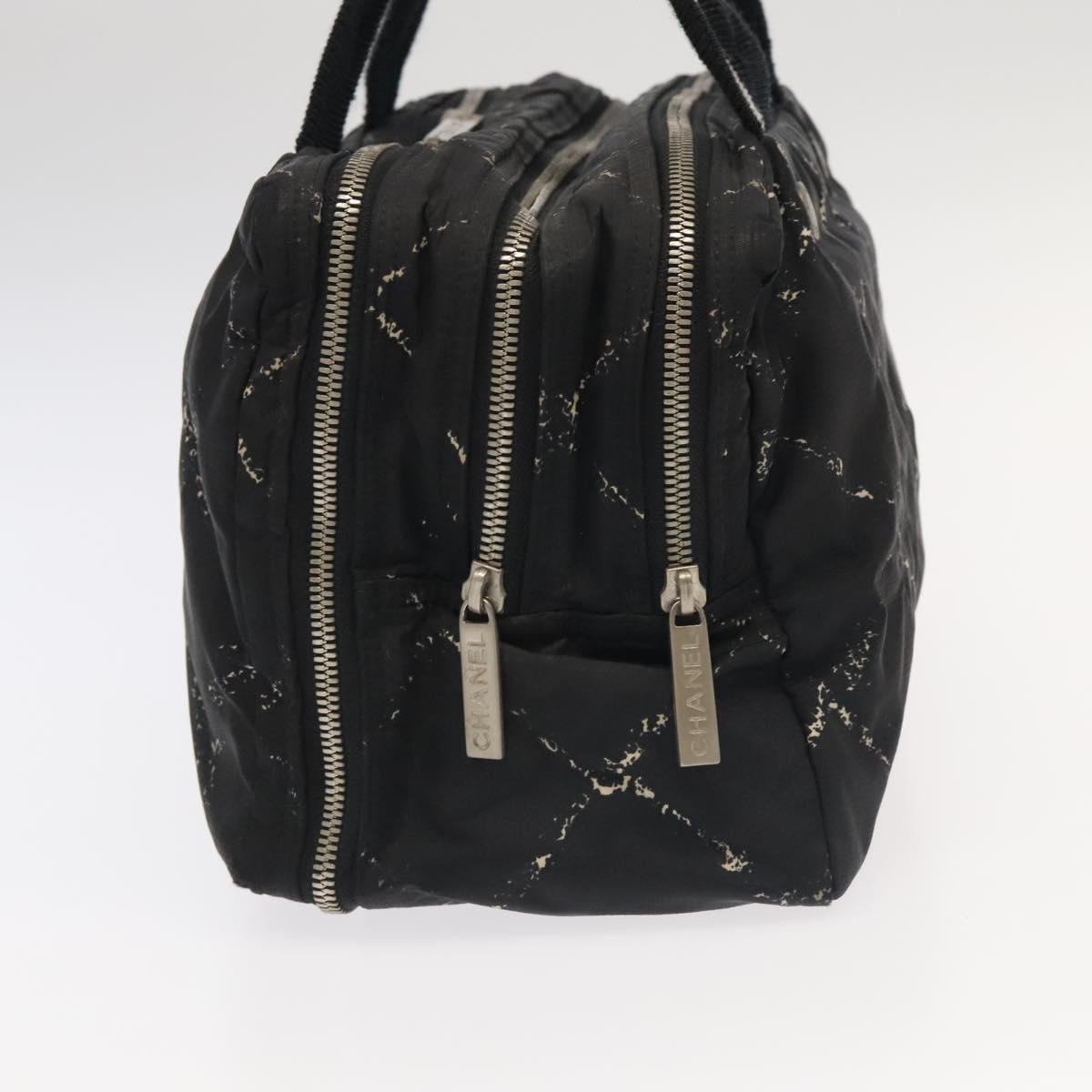 CHANEL Travel Line Hand Bag Nylon Black White Silver CC bs20701