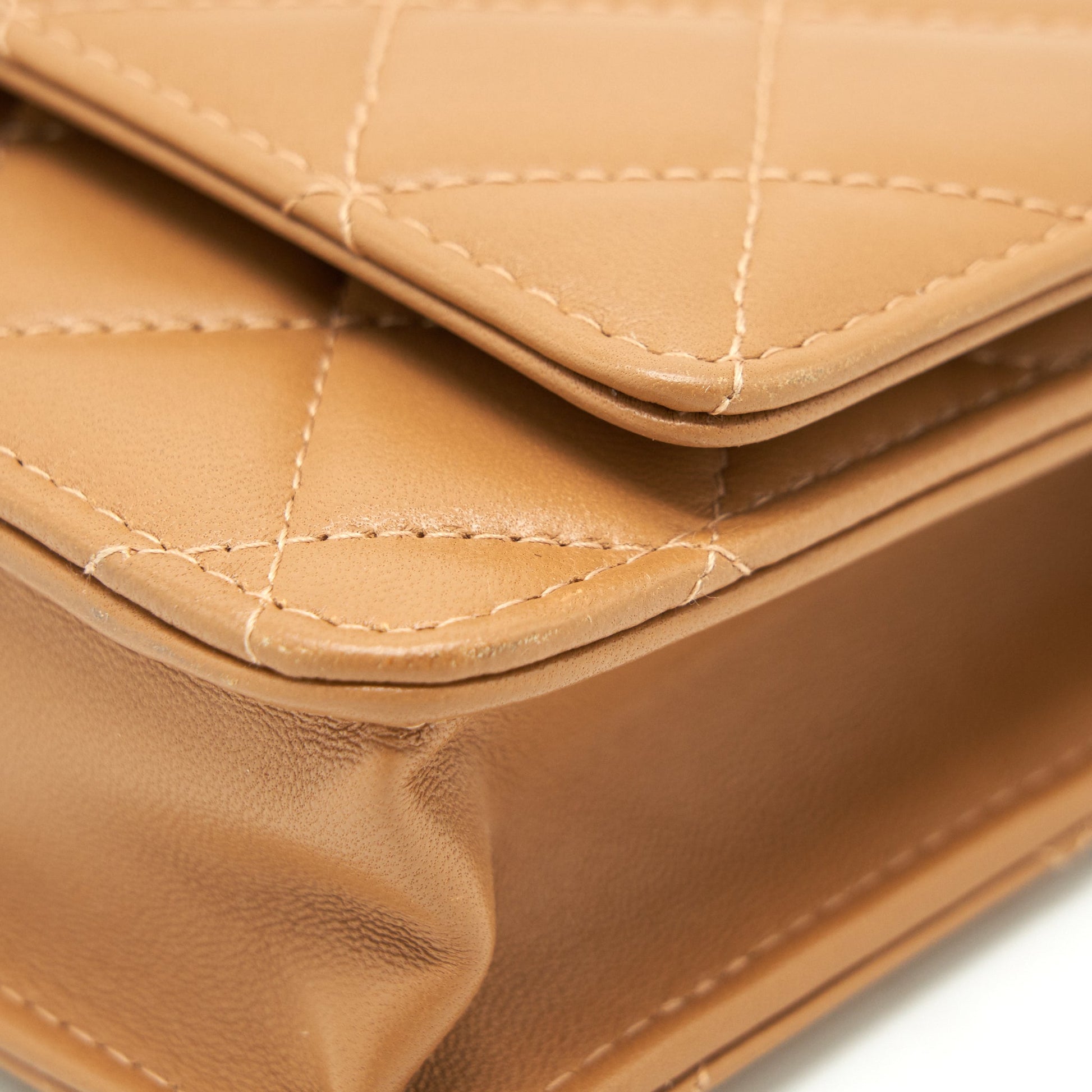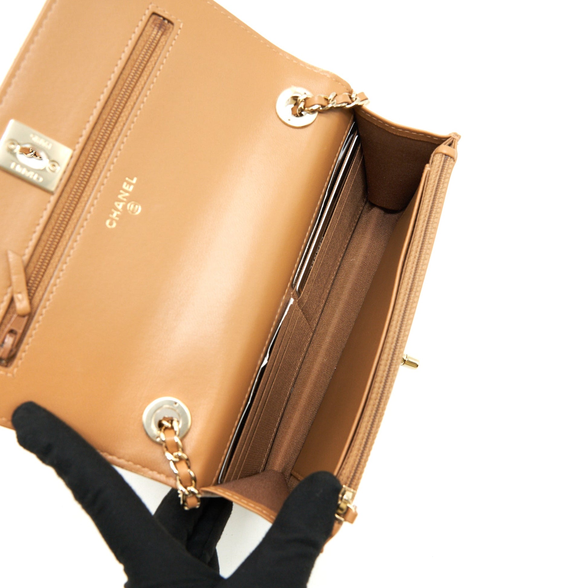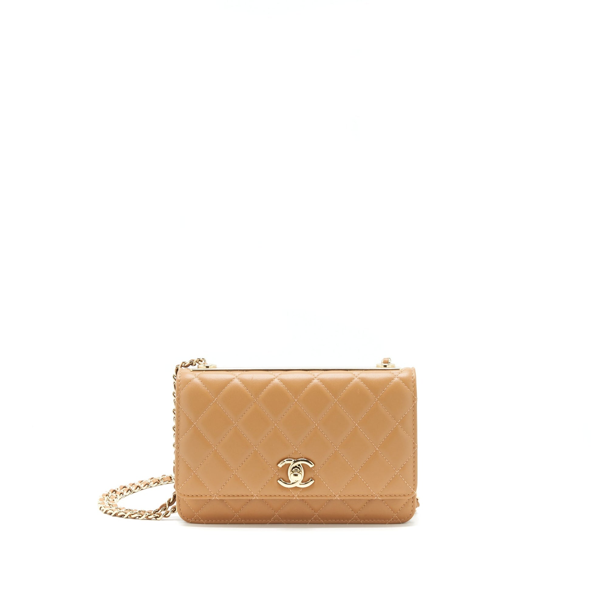 Chanel Trendy CC Wallet On Chain Lambskin Dark Beige LGHW