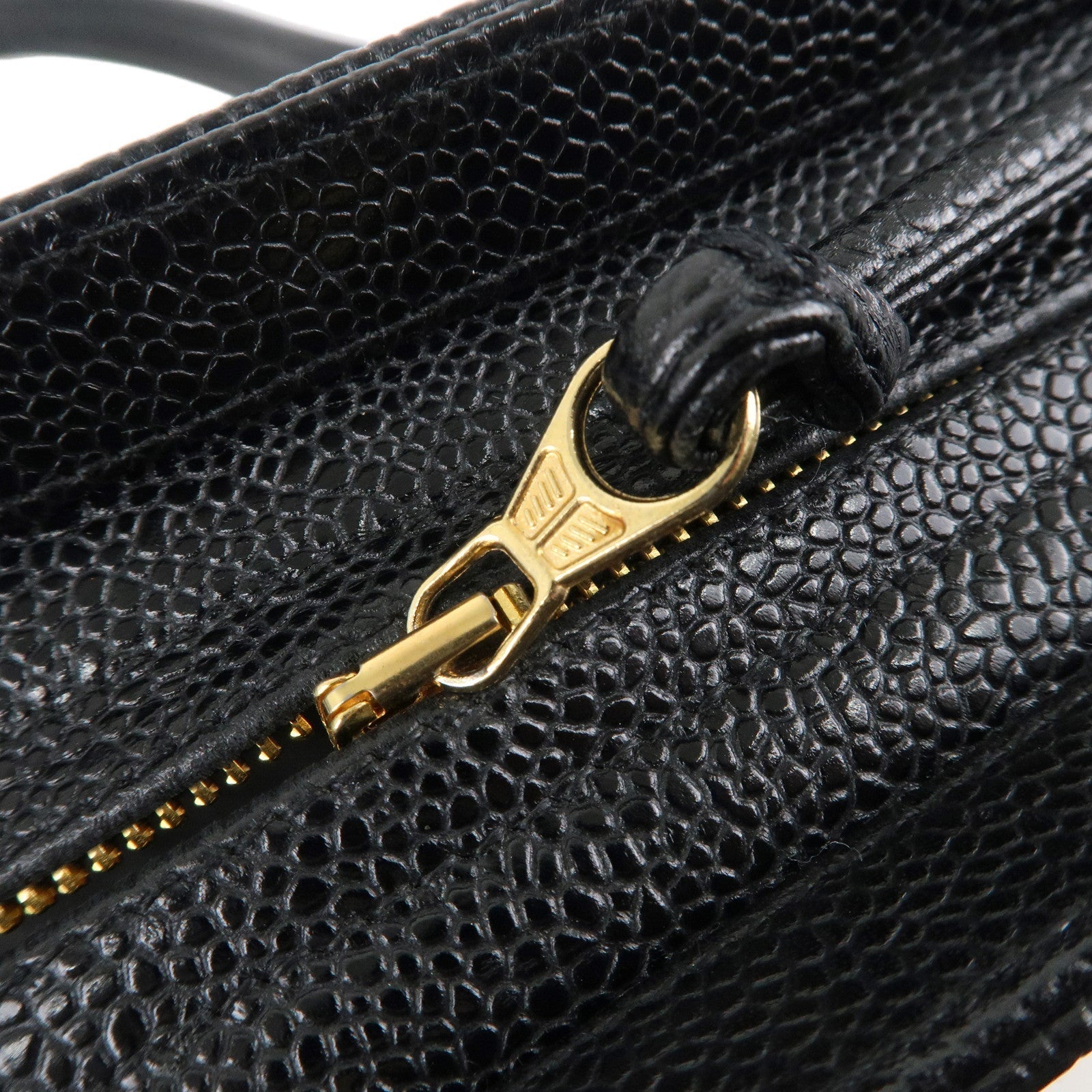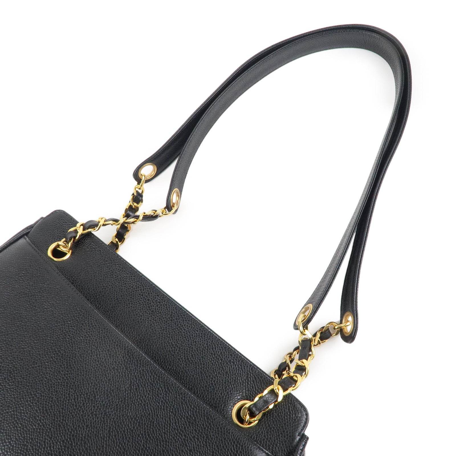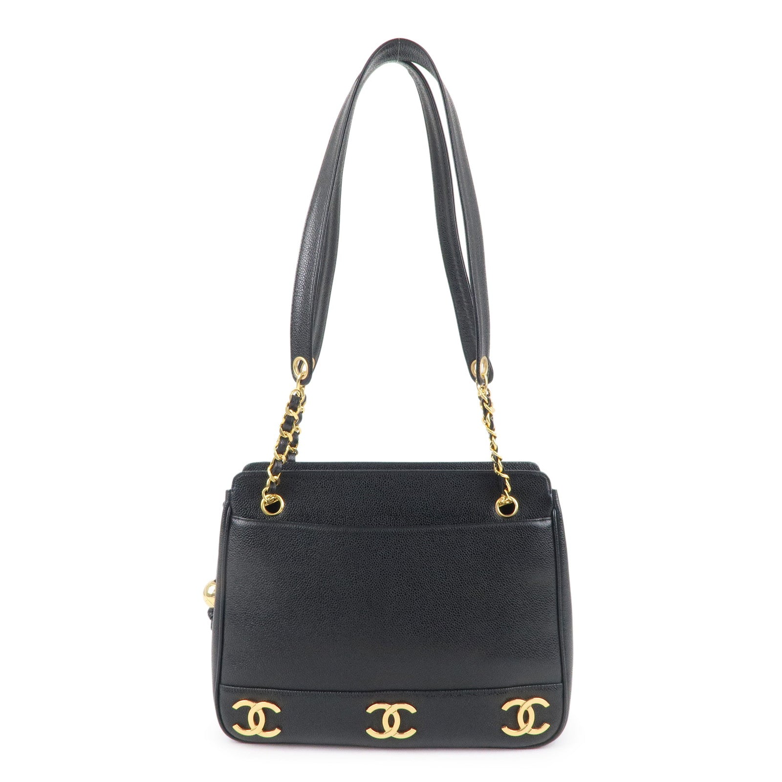 CHANEL Triple Coco Chain Caviar Skin Chain Tote Bag Black A03675