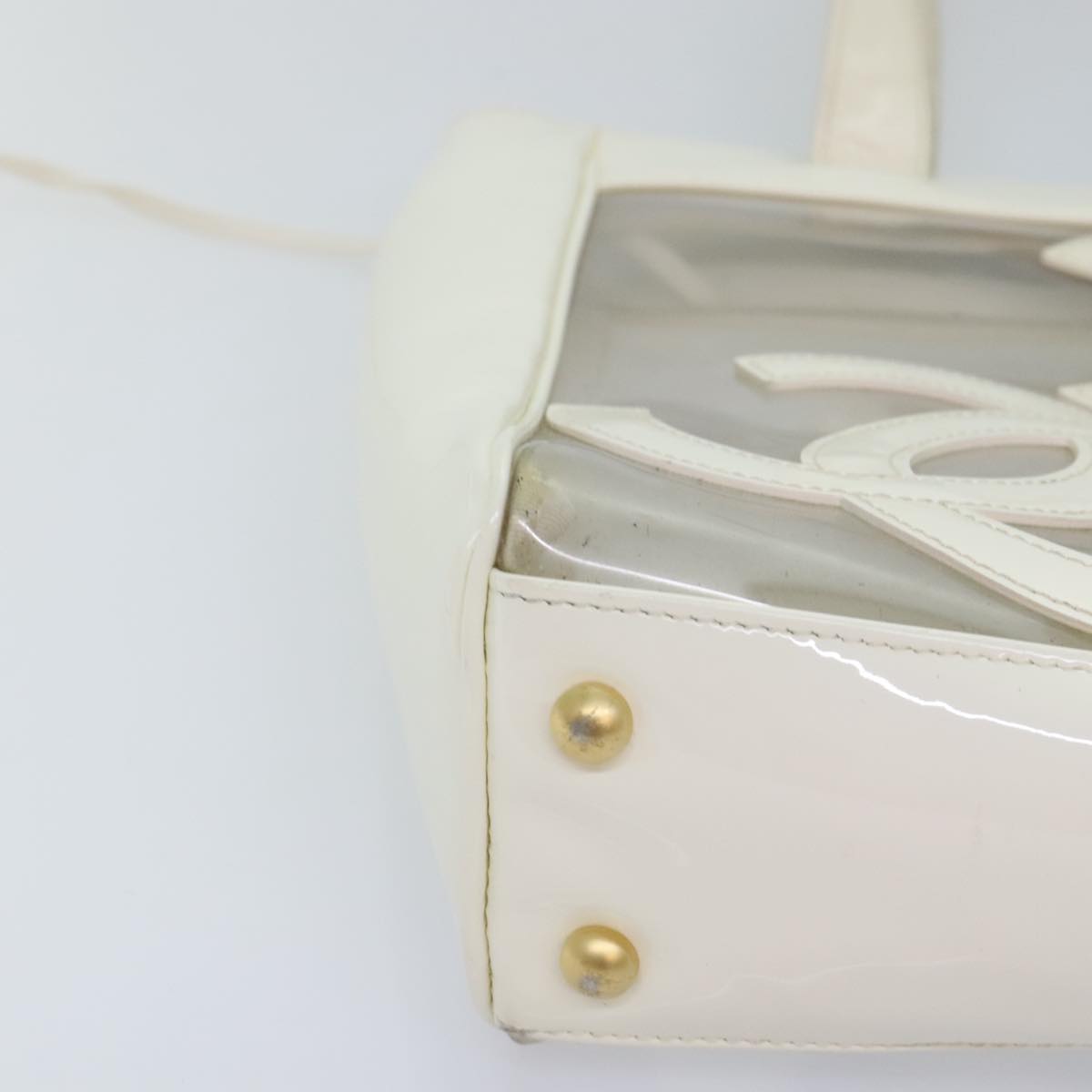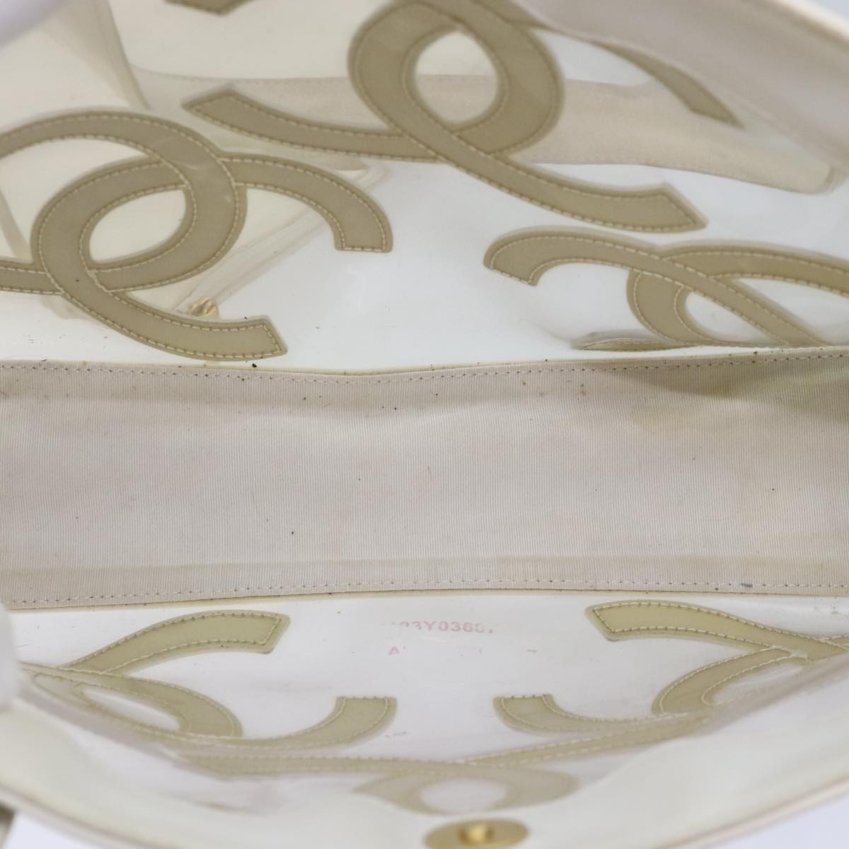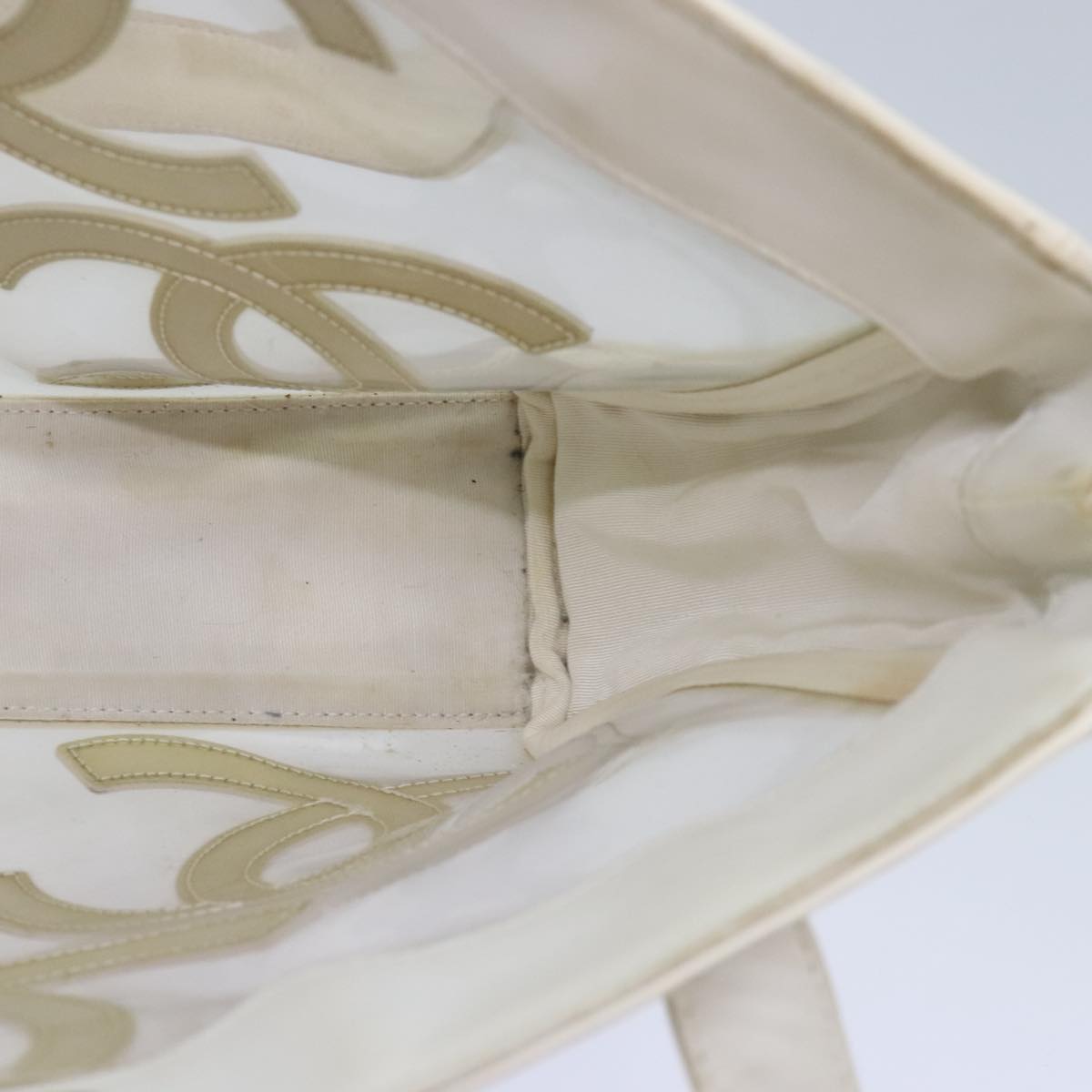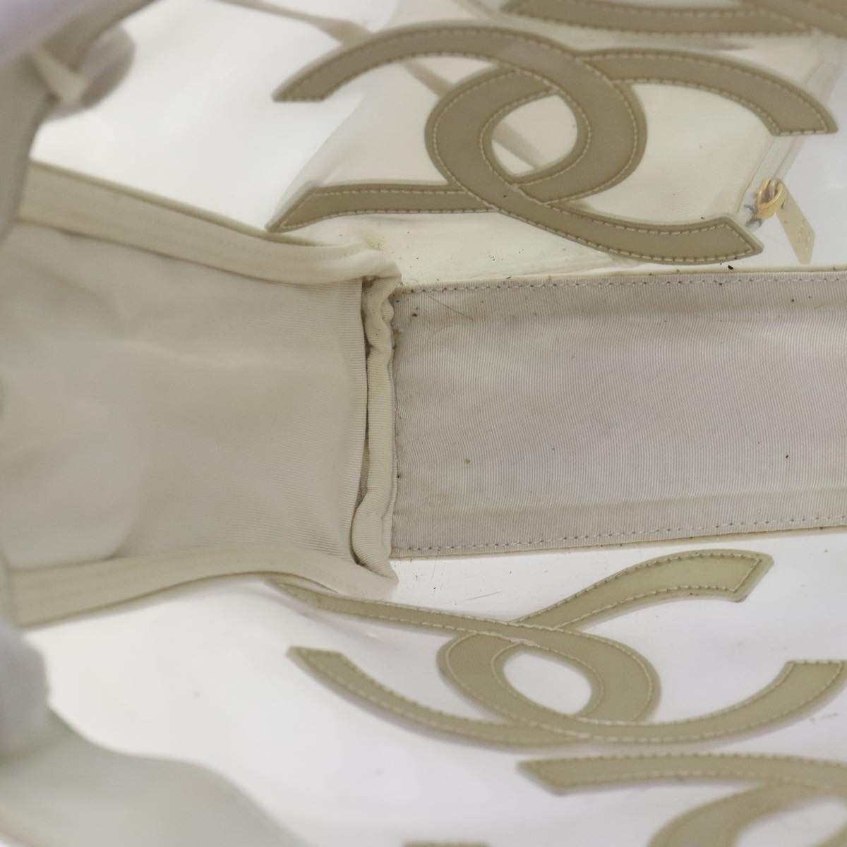 CHANEL Triple Coco Tote Bag Vinyl White Gold CC yk15356