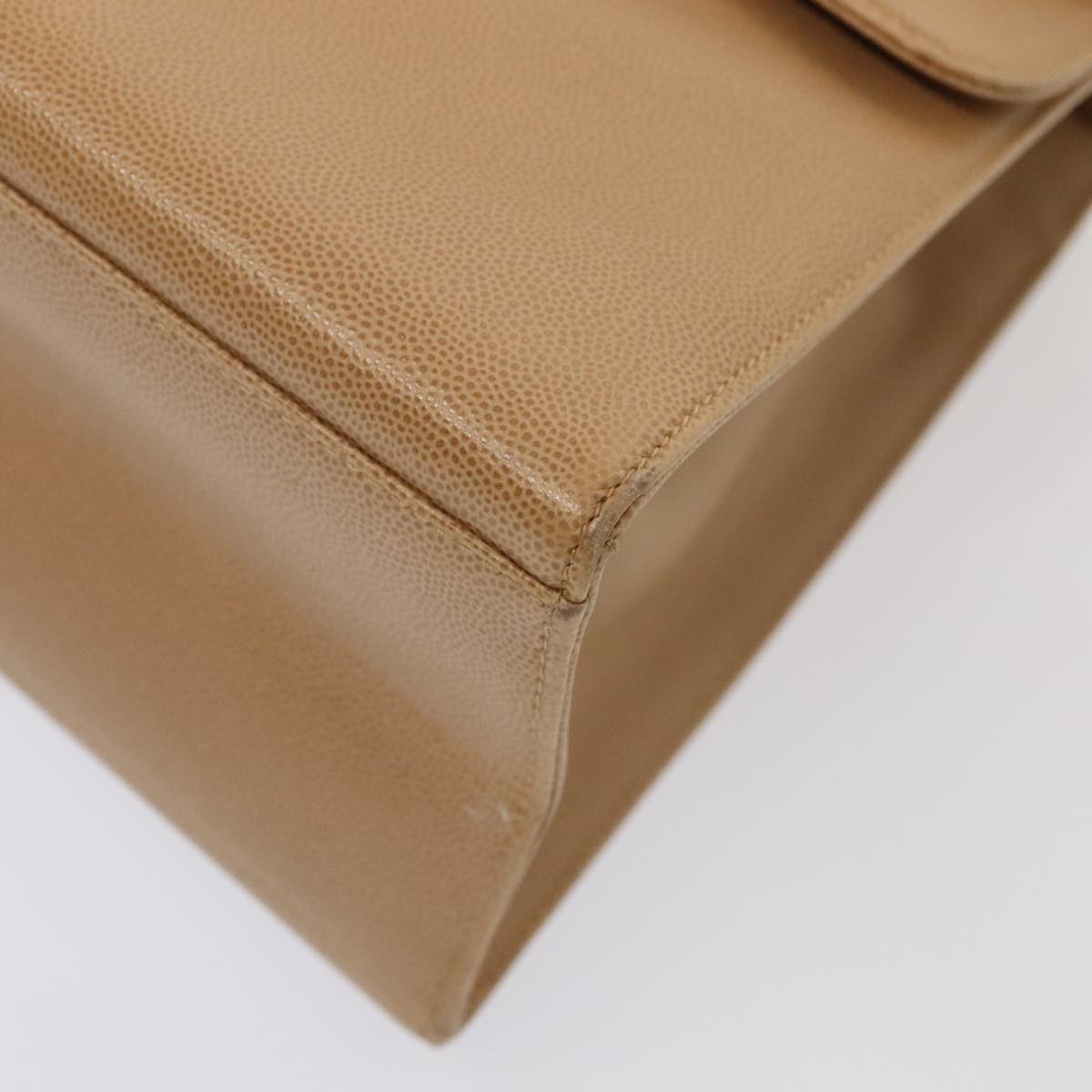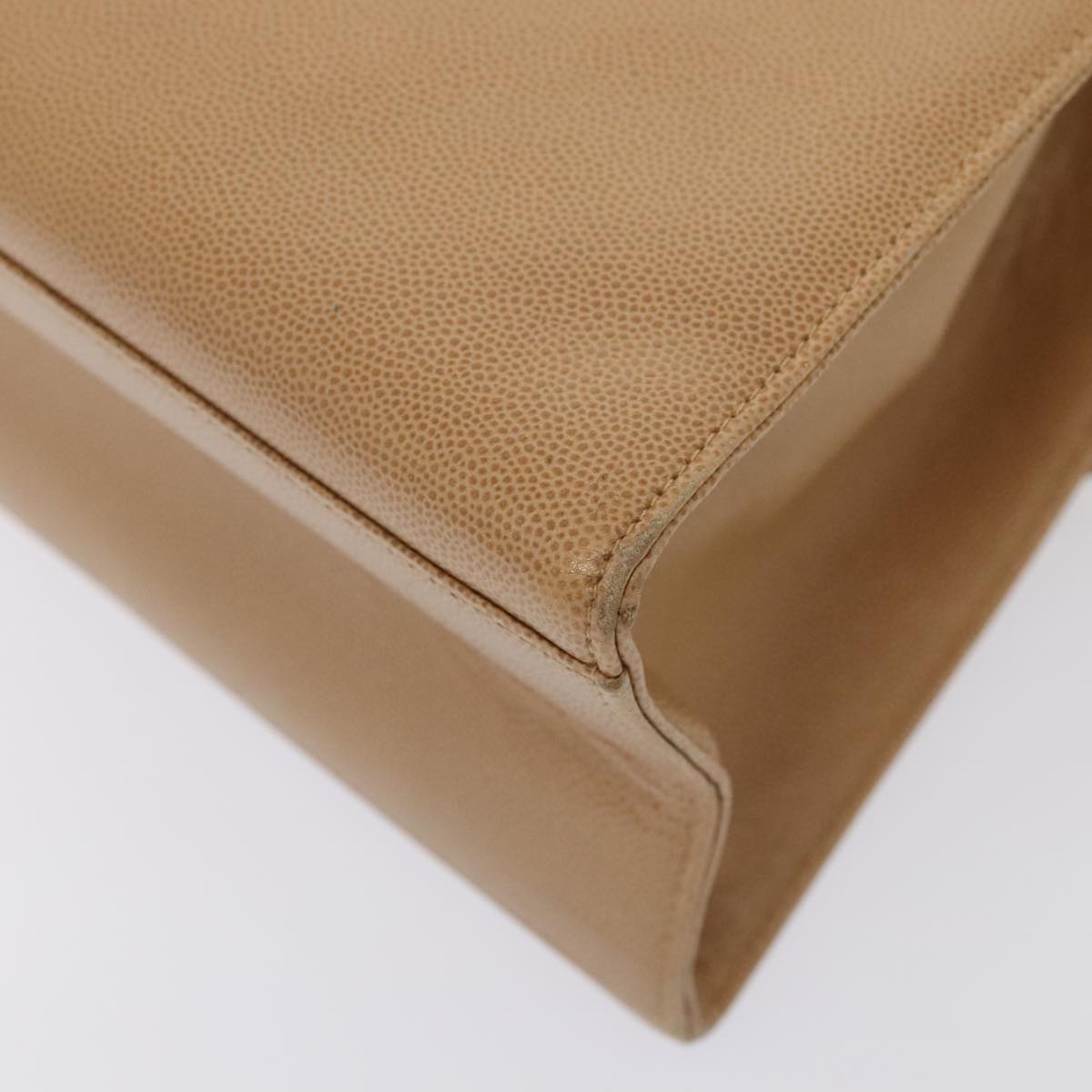 CHANEL Turn Lock Shoulder Bag Caviar Skin Beige Gold CC yk14960A