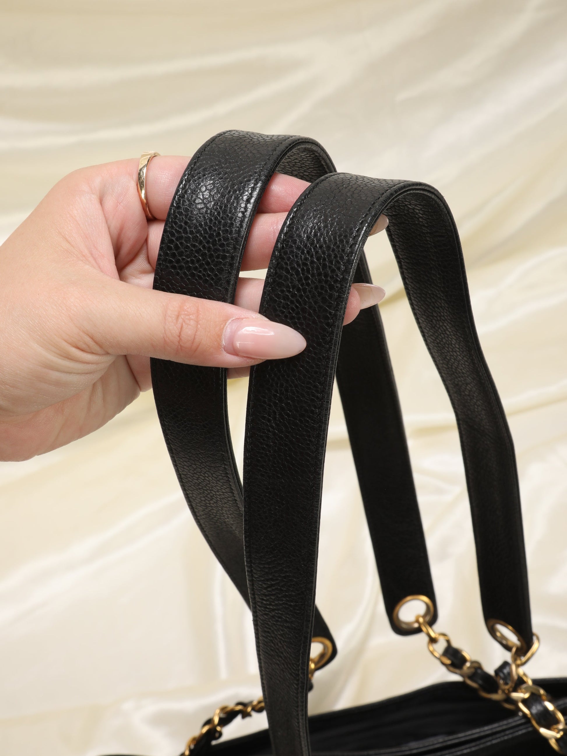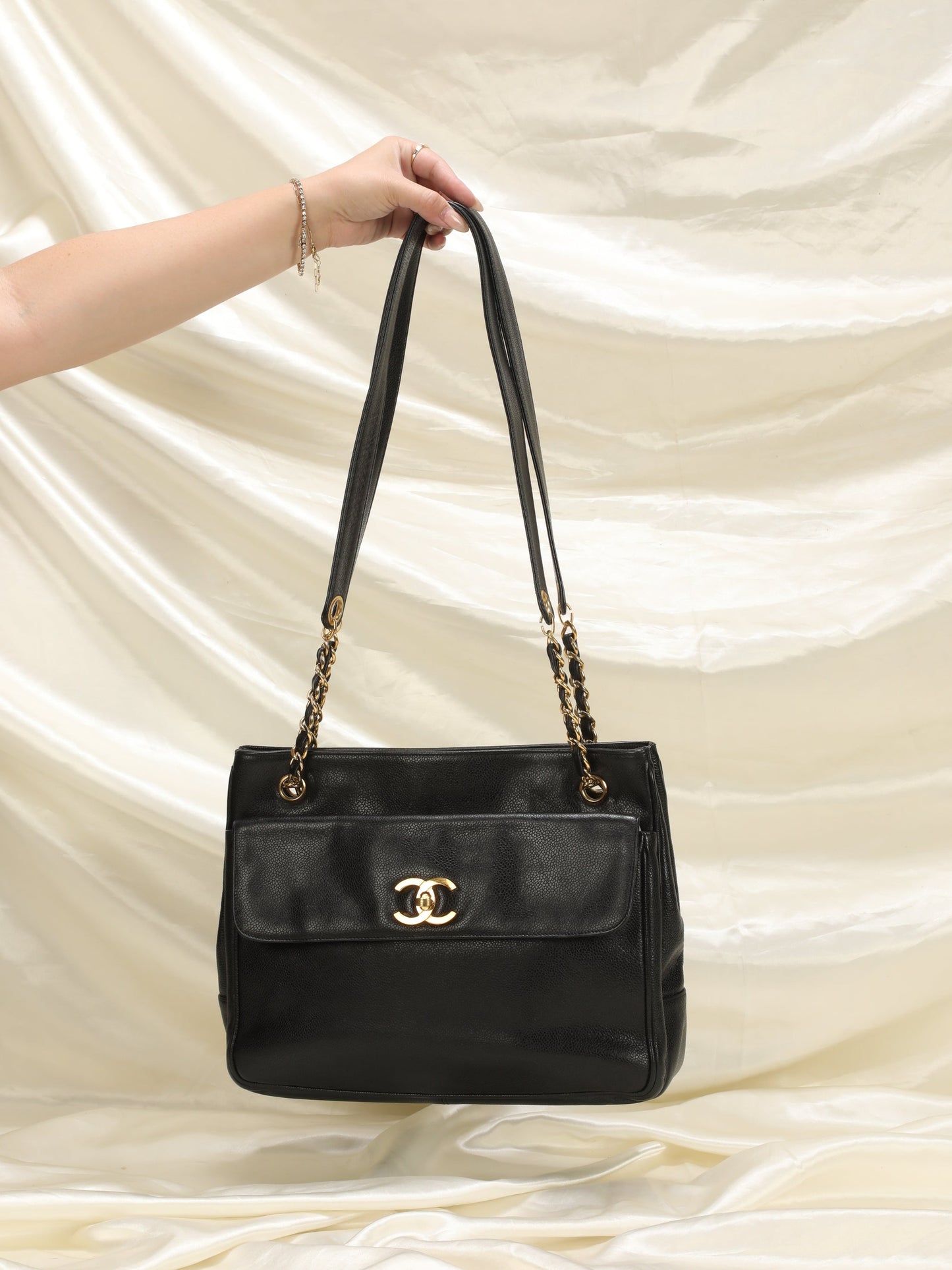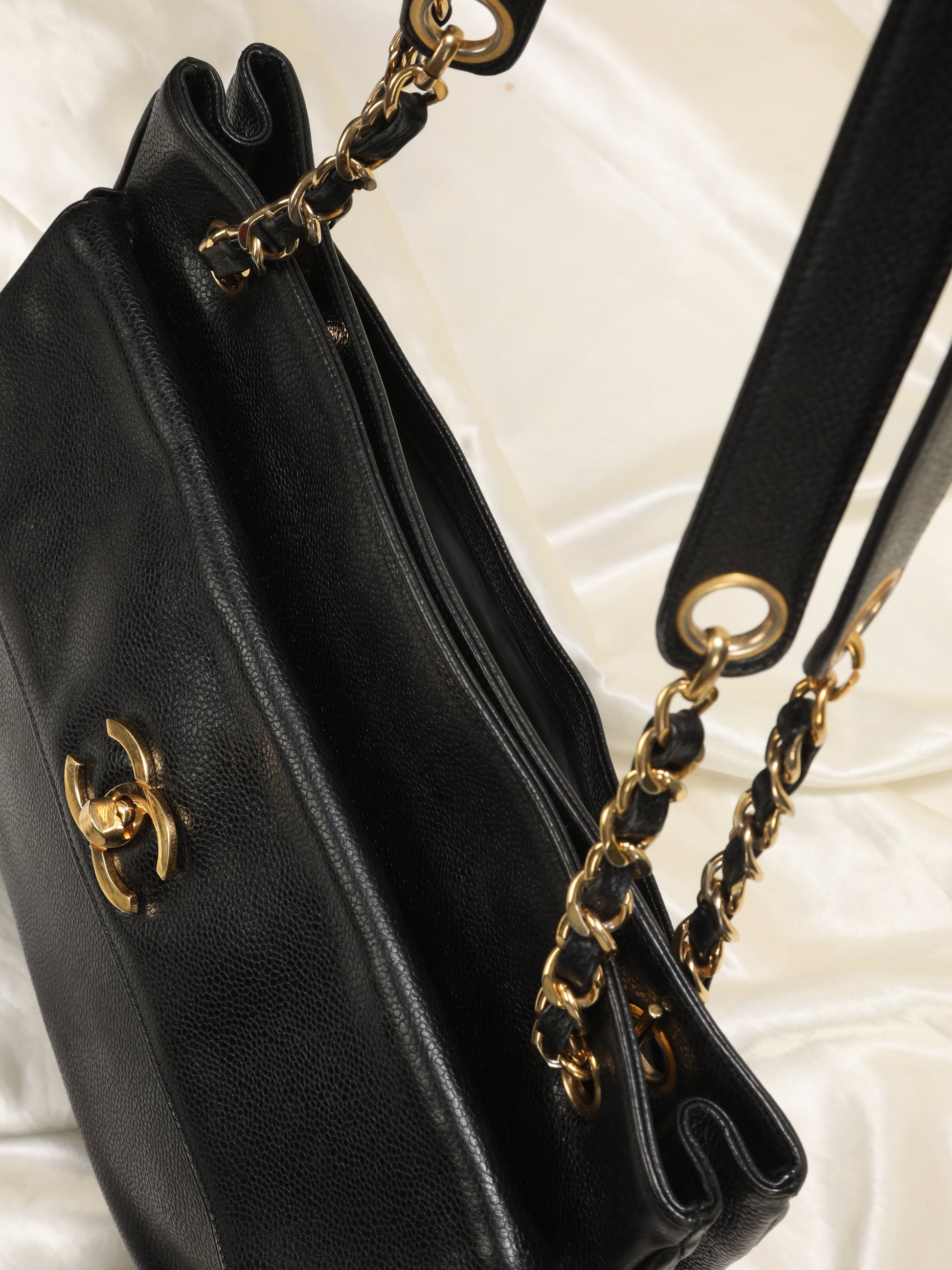 2 BAGS IN 1! I own this?bag as well and love the versatility of her. One side is crafted with the Chanel Timeless logo and the other side is a 24k gold plated turnlock logo. Both sides have pockets. Interior is spacious and can fit an ipad and more! I bring this with me to coffee shops and it fits everything I need for the day. With 24k gold plated chains. Multiple compartments. A classic piece to enjoy for years! Gives an effortless chic vibe when with a ?coat!