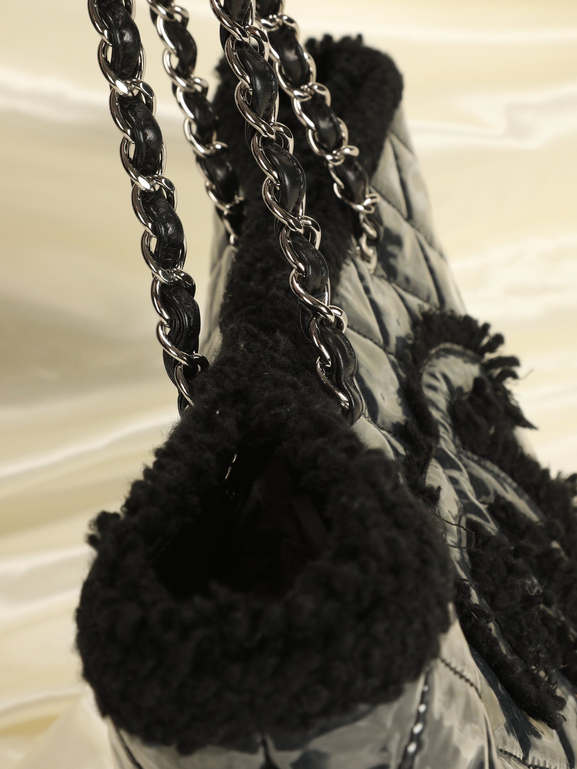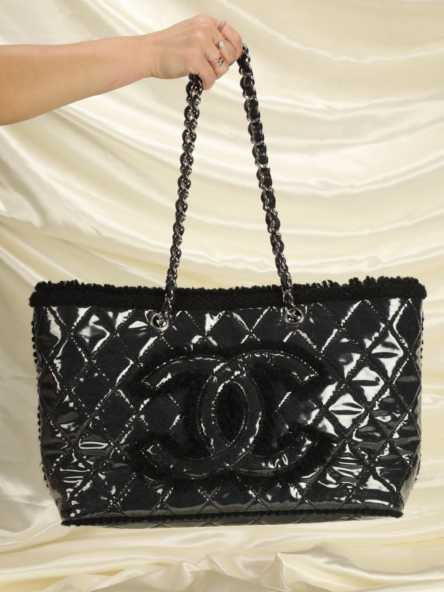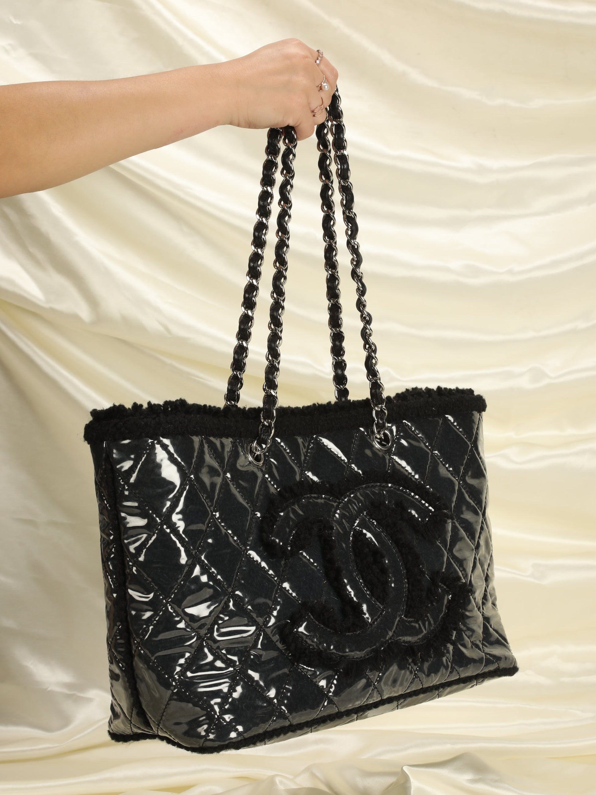 A unique vintage?Chanel tote crafted in both tweed and vinyl!! Large Chanel logo adorns the front of this bag. Spacious?size allows this piece to be a great?bag to haul everything in for the day. Pair with a large coat or trench with some sneakers or flats. Can fit a laptop, water bottle, and more! A classic piece to enjoy for years!?