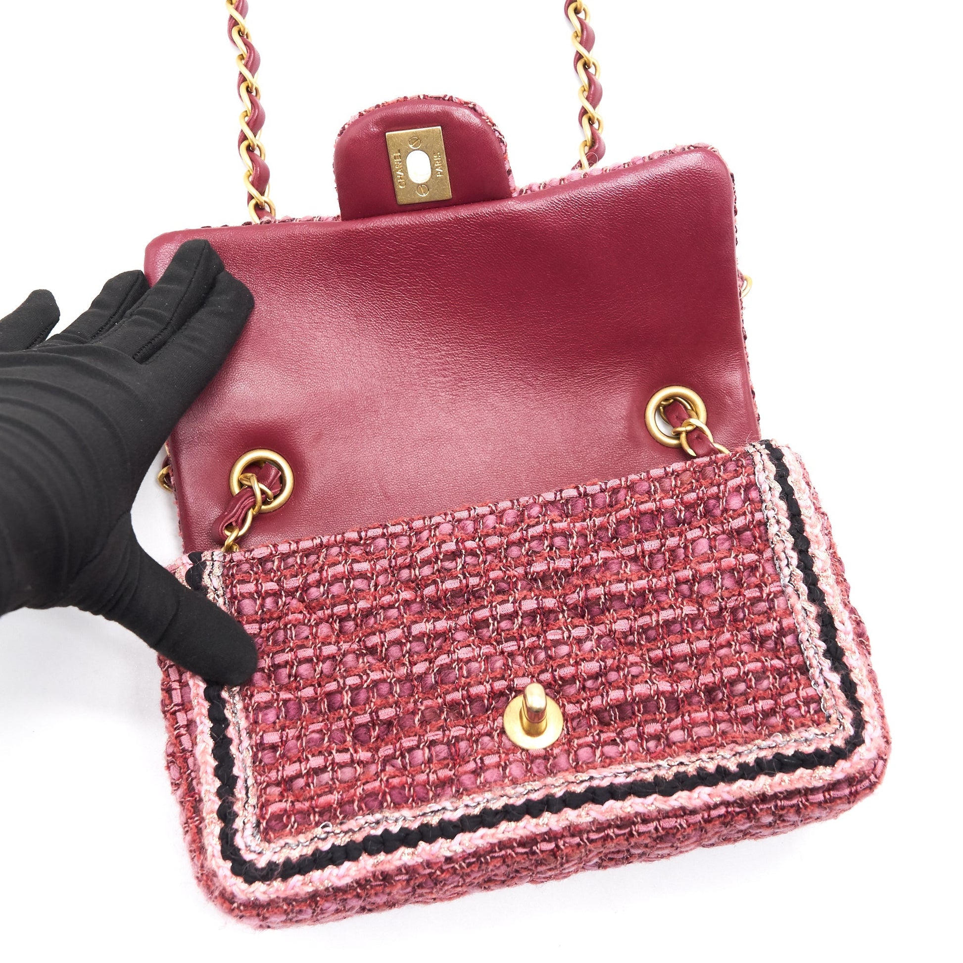 Chanel Tweed/Braid Classic Flap Mini Bag Pink