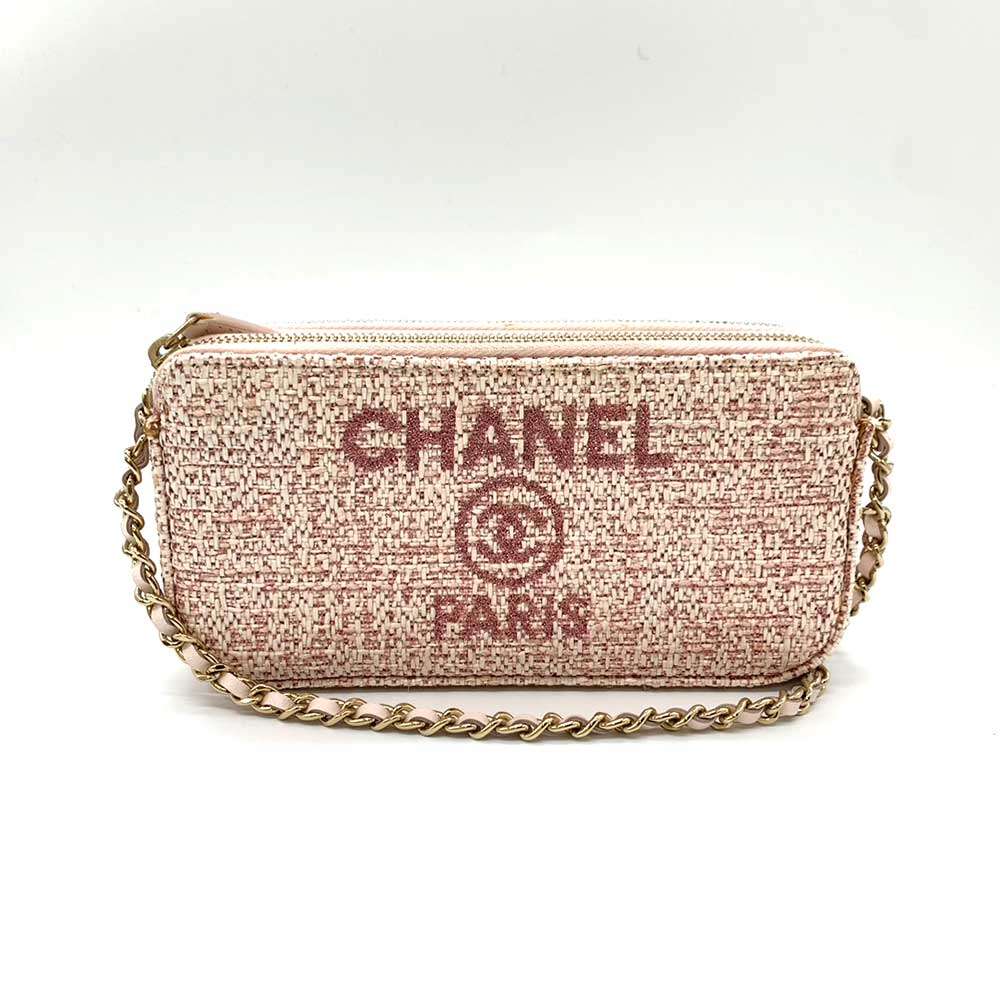 Item name : Chanel Tweed Chain Wallet Crossbody Pink