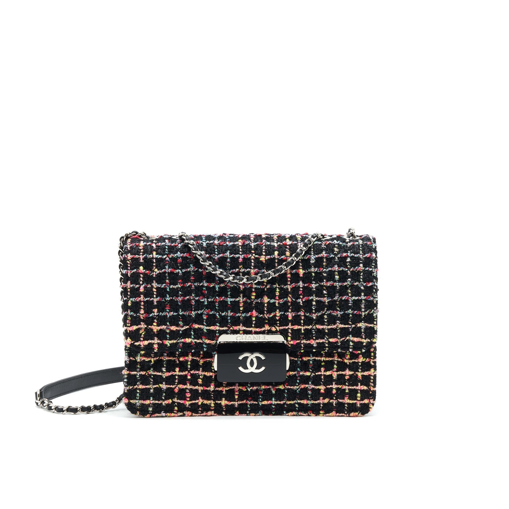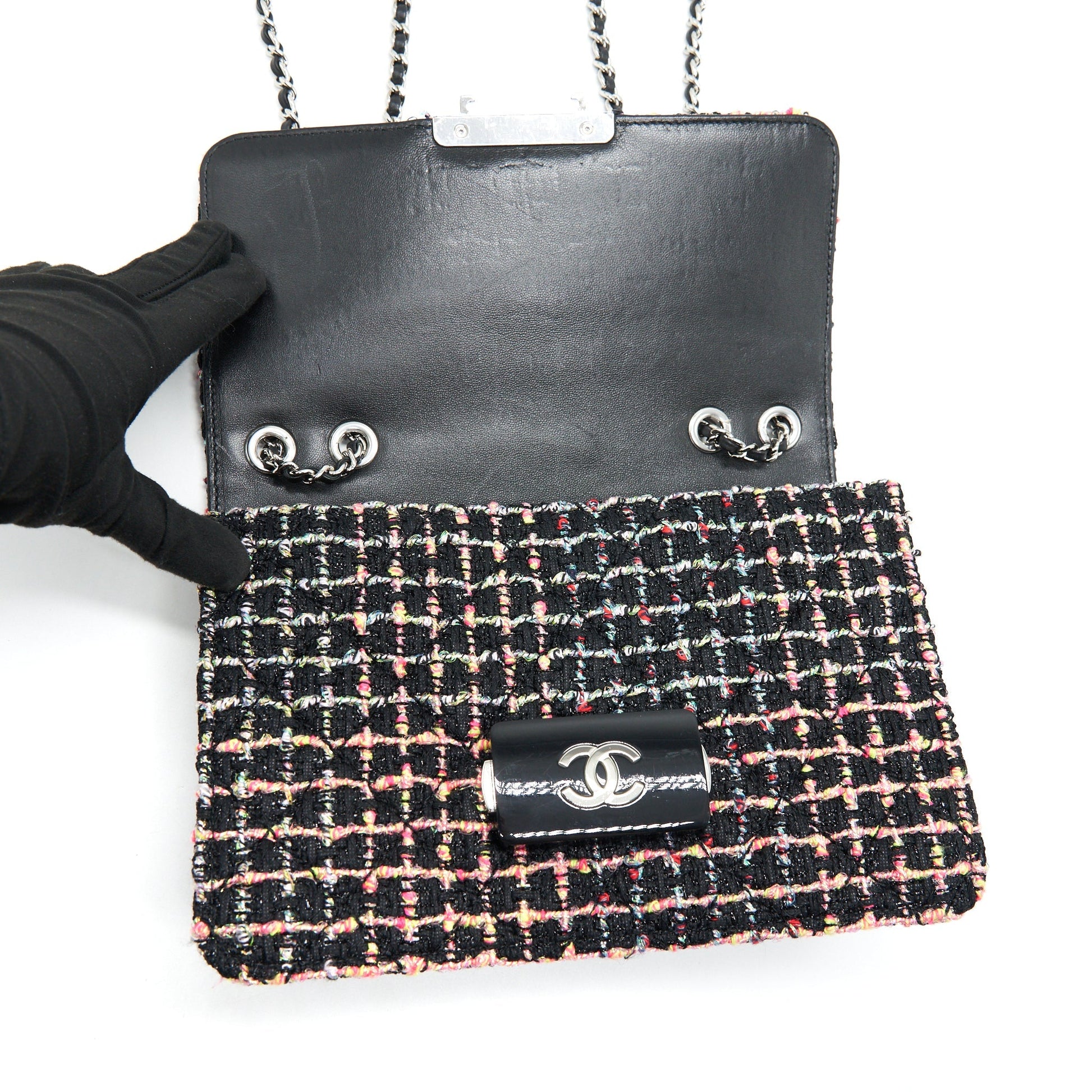 Chanel Tweed Quilted Mini Beauty Lock Flap Bag Multicolor Black