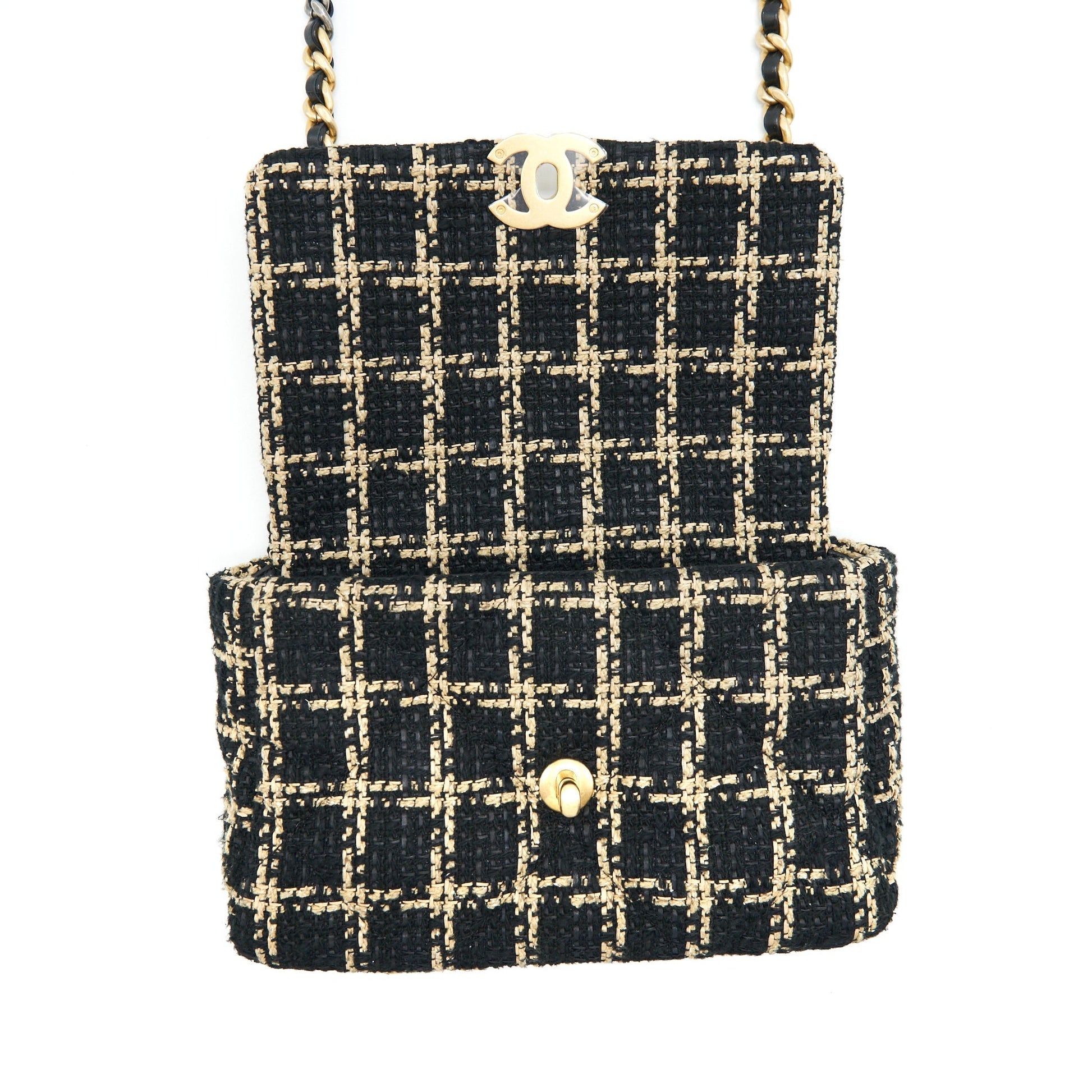 Chanel Tweed Small 19 Flap Bag black/ Gold with Gold and silver hardware