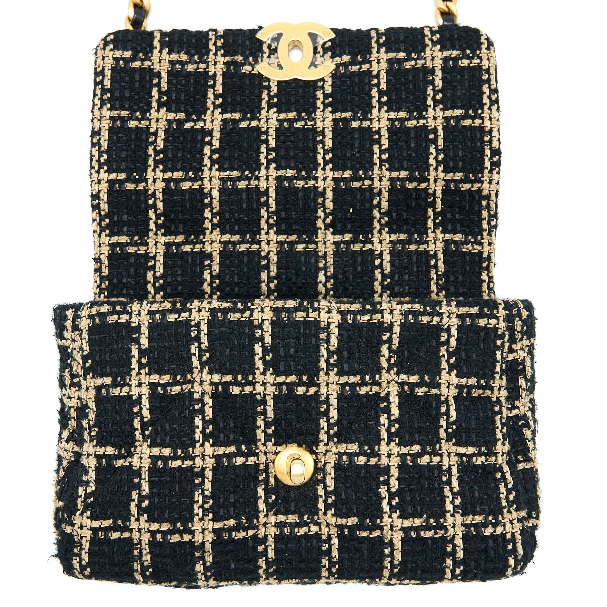 Chanel Tweed Small 19 Flap Bag Black/Gold With Multicolour Hardware