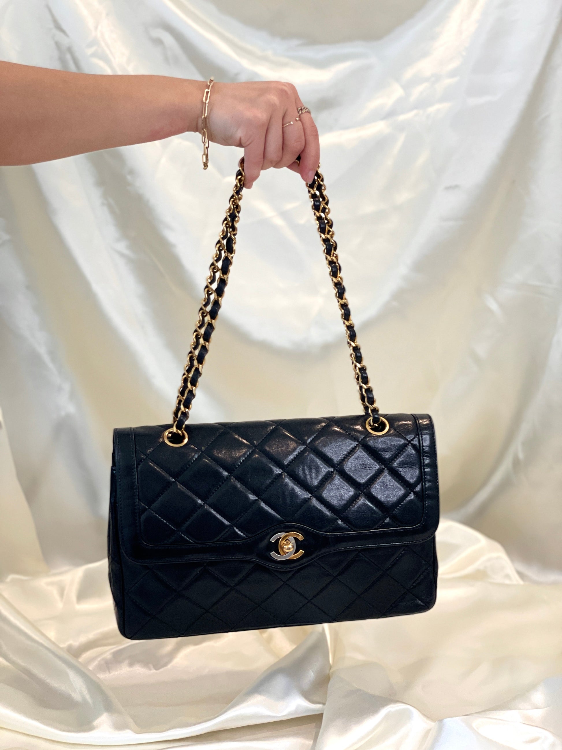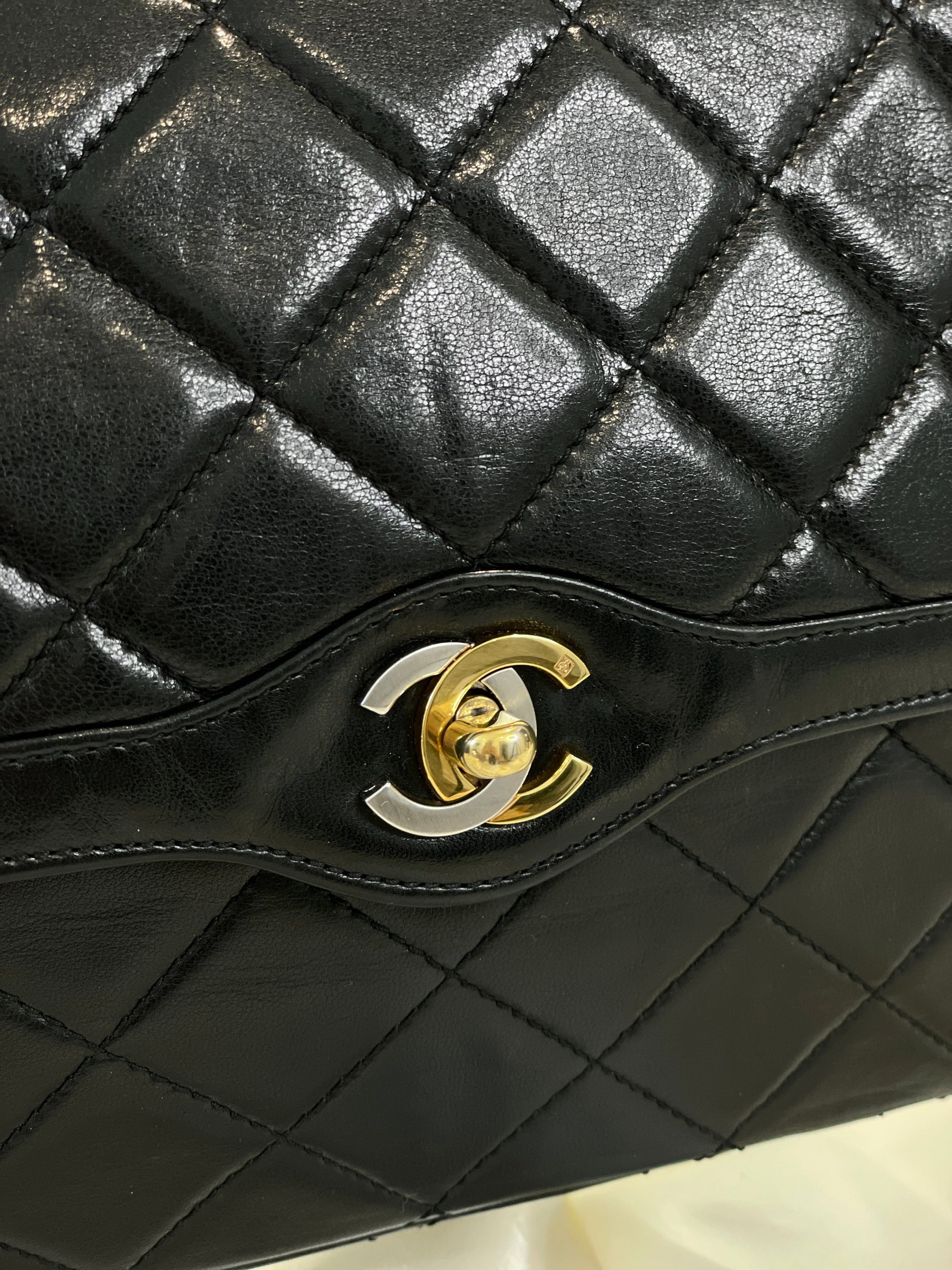 First time having a medium size of this beauty in the shop!? Chanel lambskin?double flap mixed with silver and gold hardware on turnlock, this is a rare Chanel gem. Did we mention it's a DOUBLE FLAP! Vintage Chanel crafted in the 90's= 24k hardware and soft buttery lambskin. Can be loved for years to come. Don't miss out on this gorgeous find! Bag 6000+.