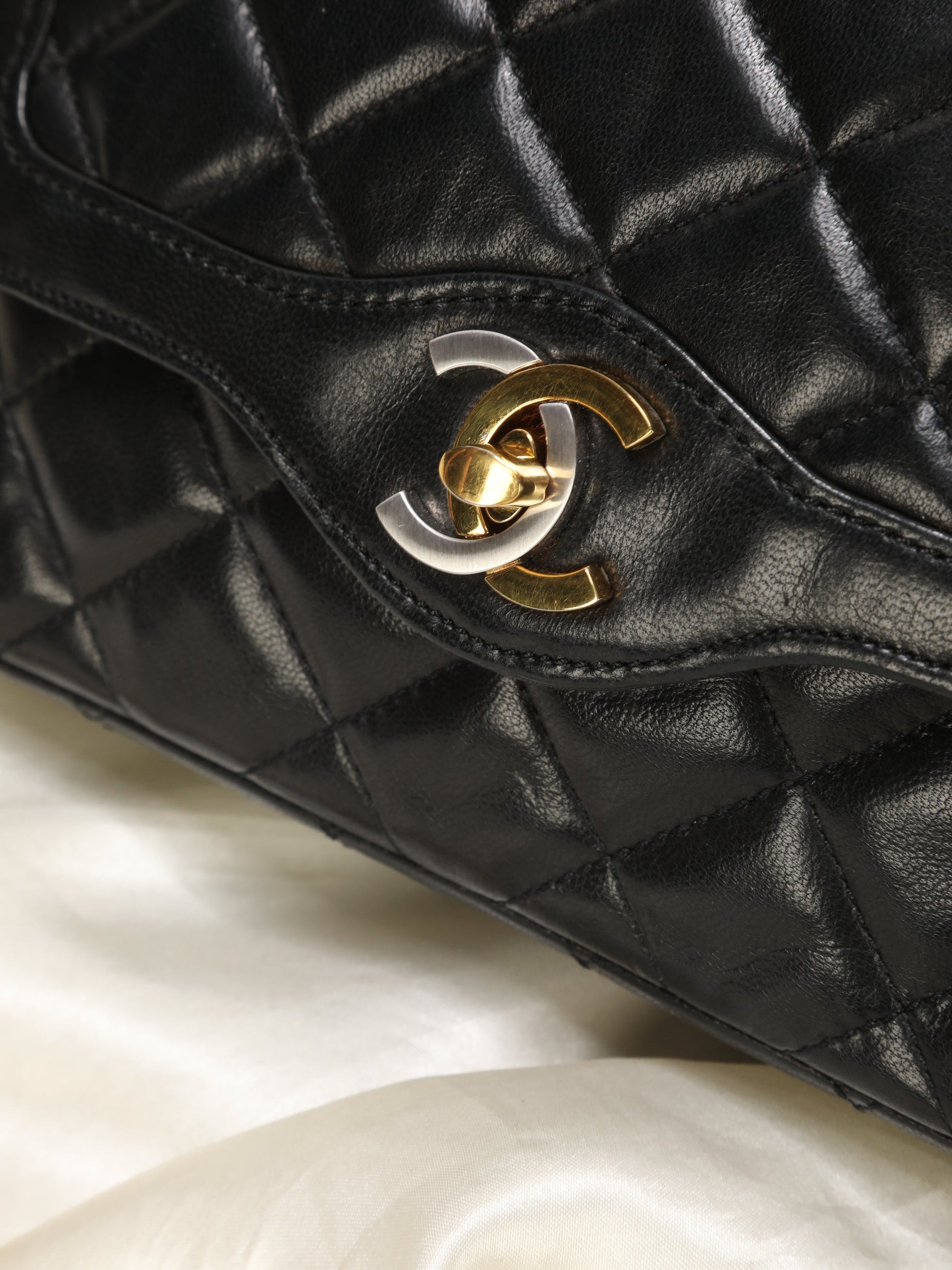 Bringing to the shop a stunning Chanel lambskin?double flap. Mixed with silver and gold hardware on turnlock, this is a rare Chanel gem. Vintage Chanel crafted in the 90's= 24k hardware and soft buttery lambskin. Can be loved for years to come. Don't miss out on this gorgeous find! Versatile piece can be multiple ways. Bag 4500+!