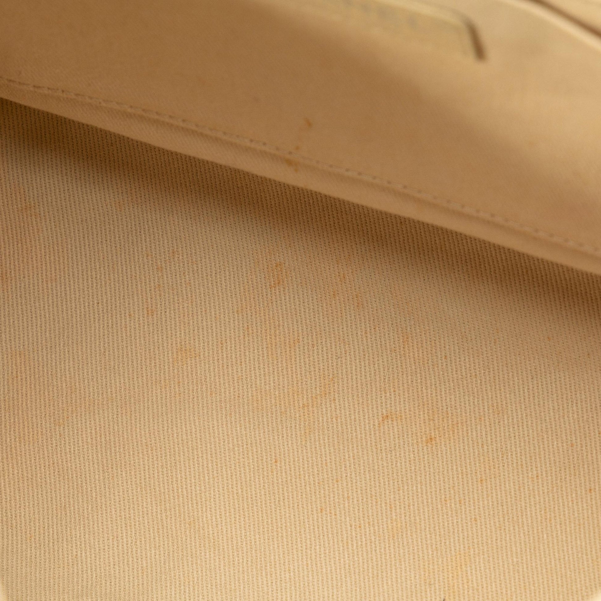 Condition Notes: Exterior Front Discolored, Out Of Shape, Worn. Exterior Back Discolored, Out Of Shape, Worn. Exterior Bottom Discolored, Out Of Shape, Worn. Exterior Handle Discolored, Out Of Shape, Worn. Exterior Corners Discolored, Worn. Exterior Side Discolored, Out Of Shape, Worn. Interior Lining stained with Pen Mark, Other. Lock Scratched. Embellishment Scratched. Practical Attachment Scratched.