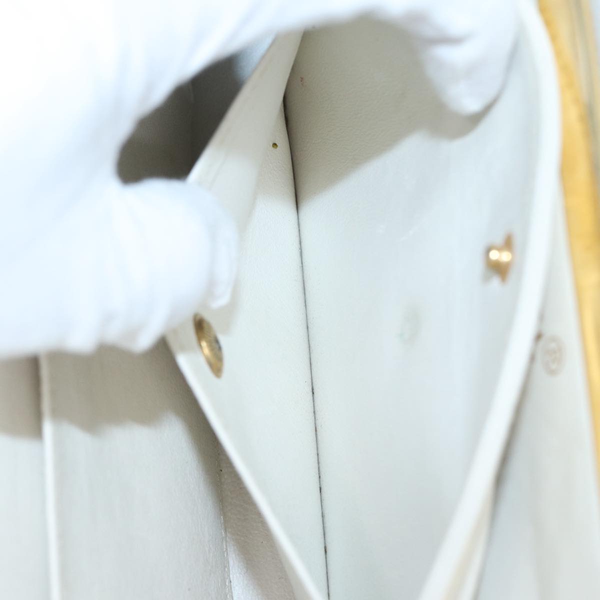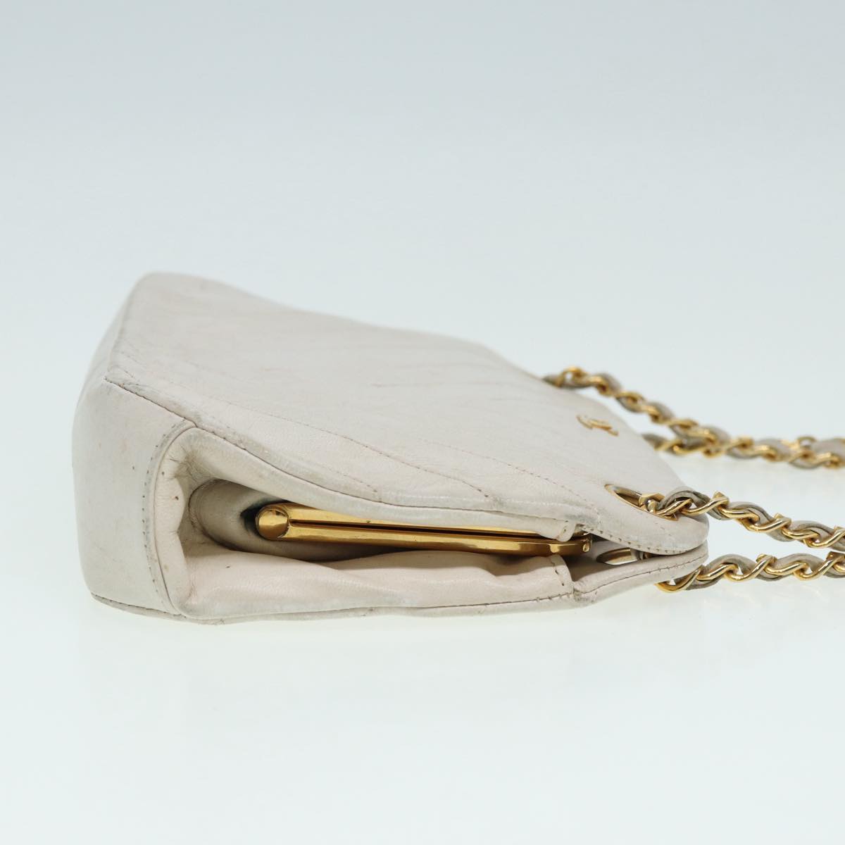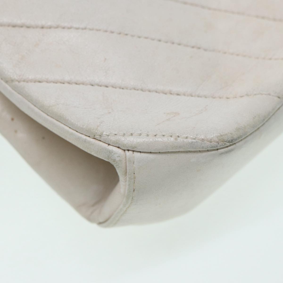CHANEL V Stitch Chain Hand Bag Leather White CC yk14103