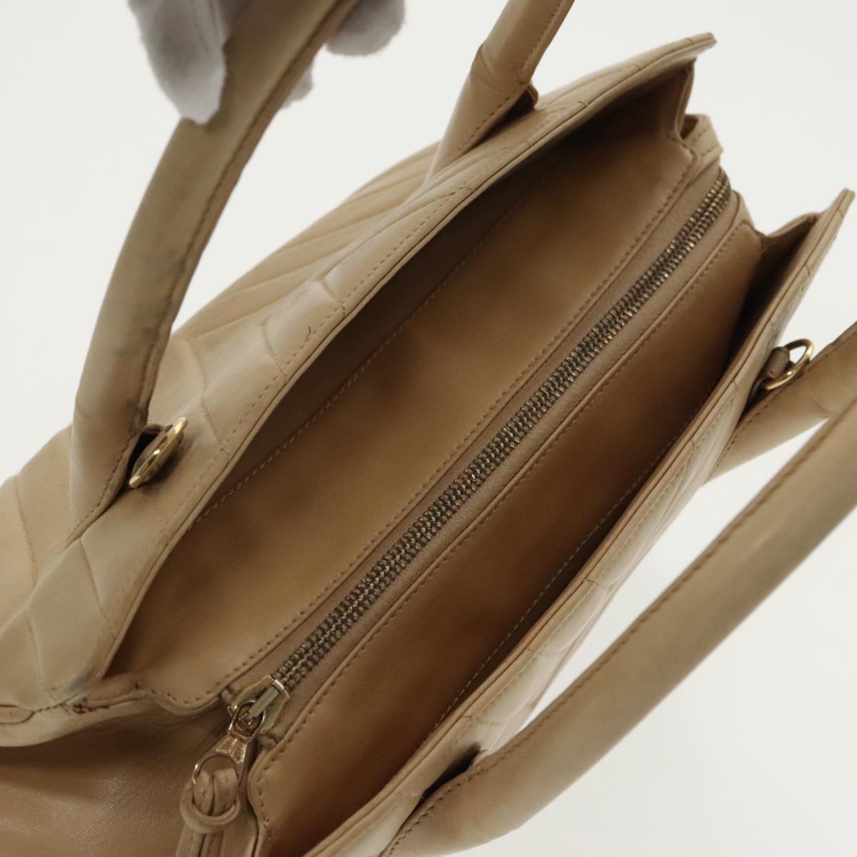 CHANEL V Stitch Hand Bag Leather 2way Beige Gold CC bs19426
