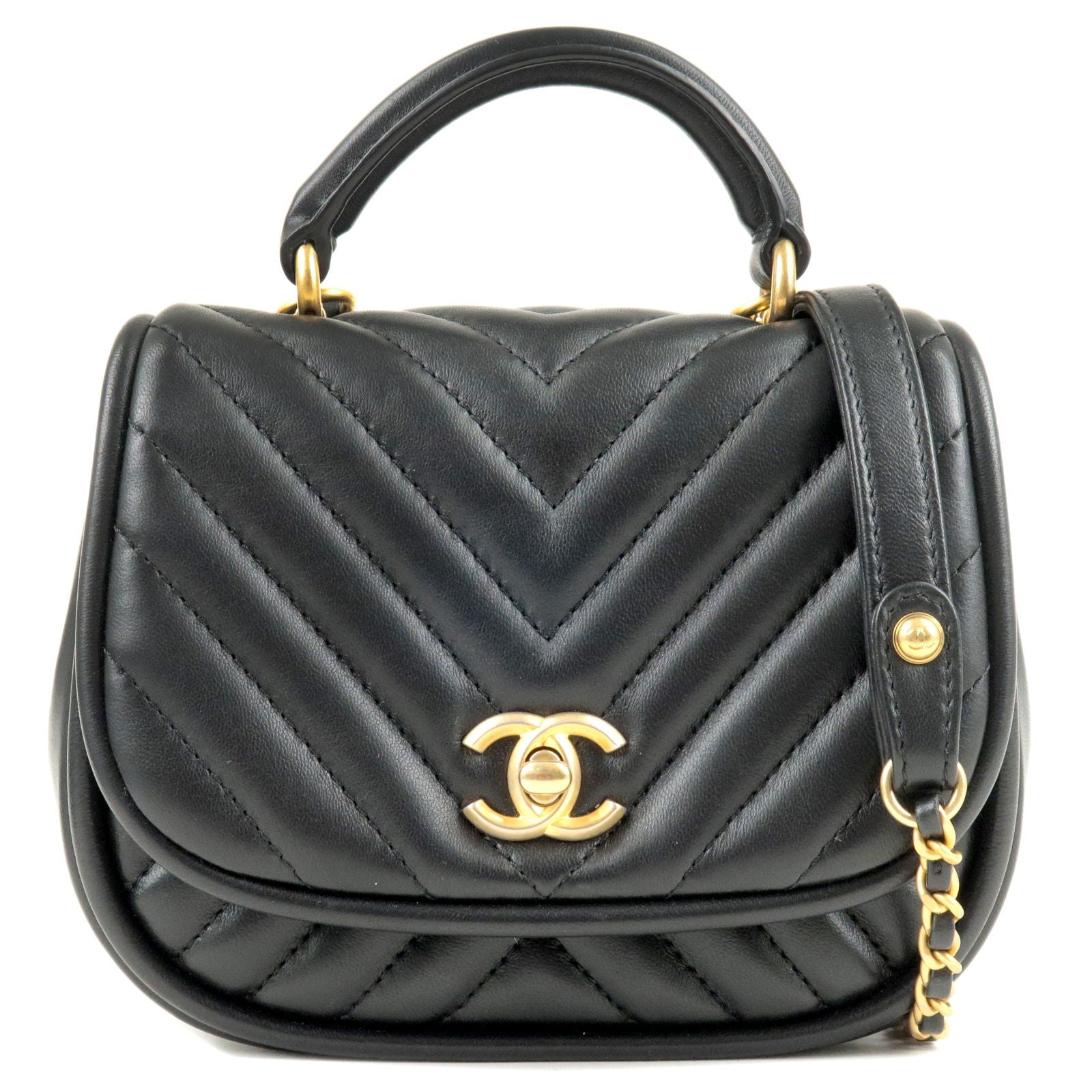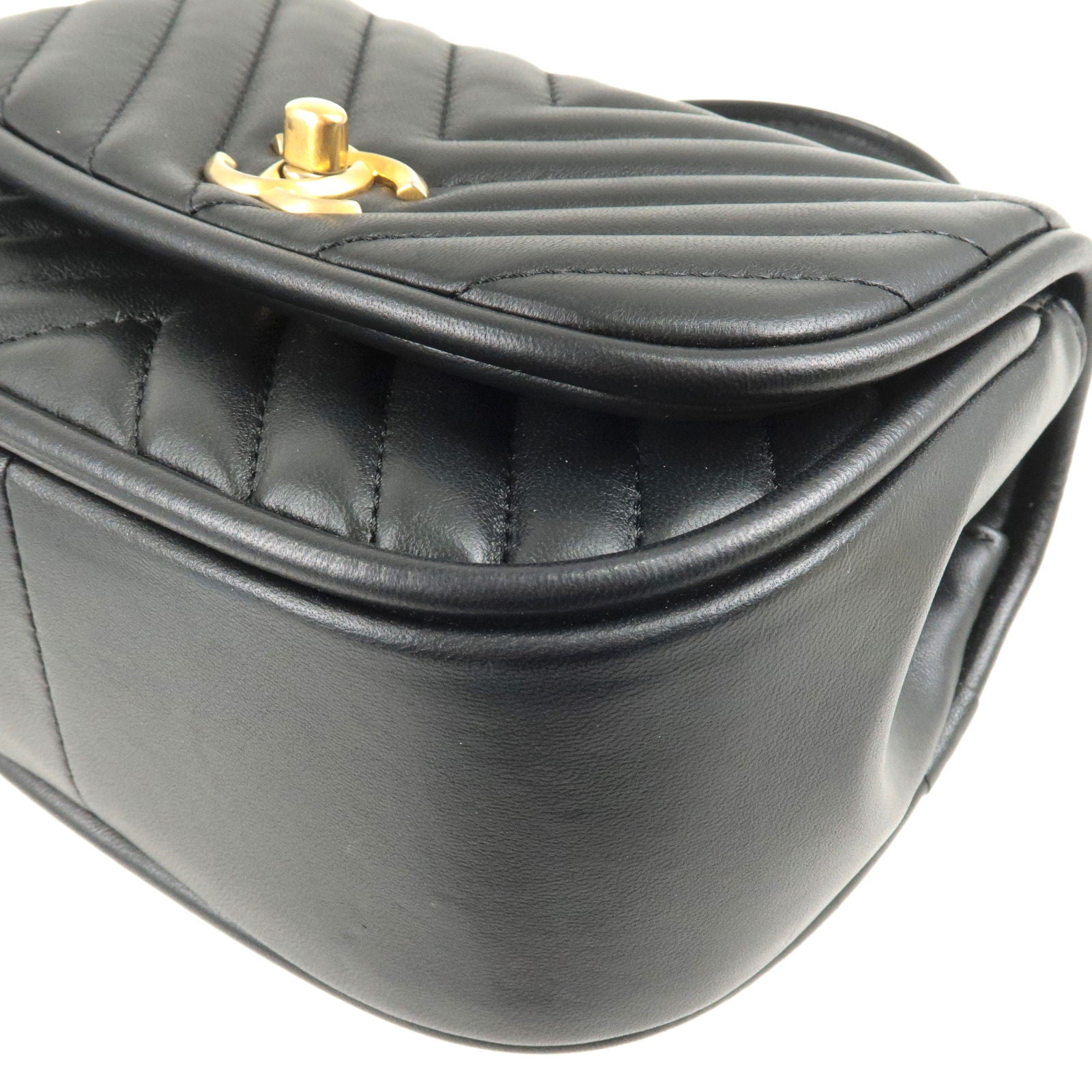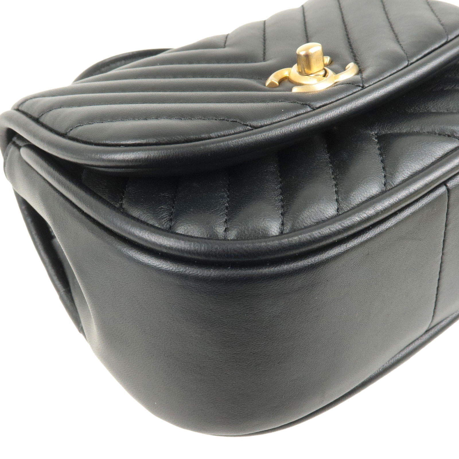 CHANEL V Stitch Lamb Skin 2Way Chain Shoulder Bag Black