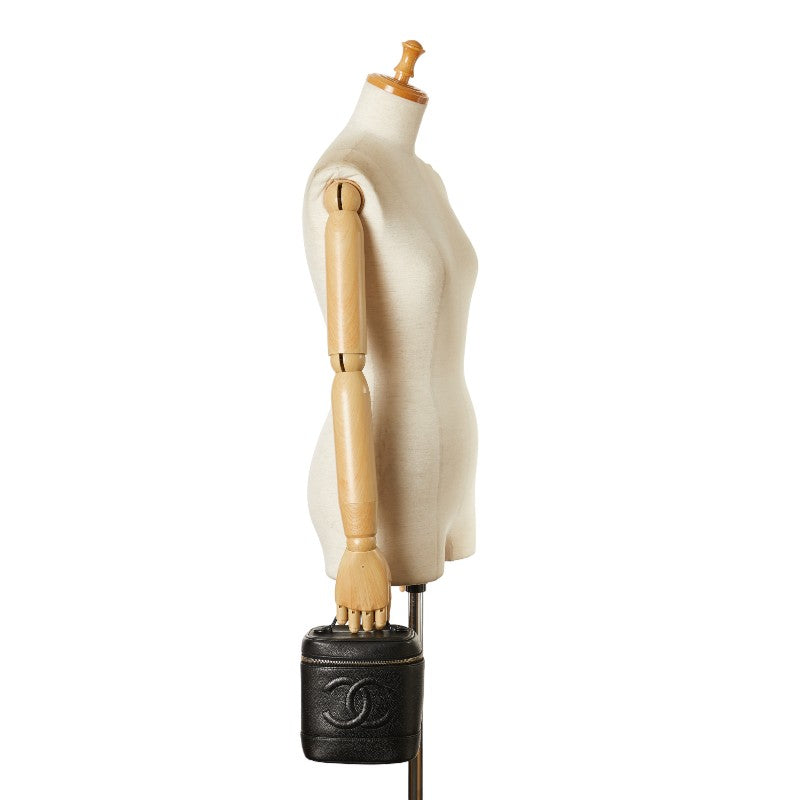 Chanel Caviar Skin Coco Mark Vanity Handbag Black Gold