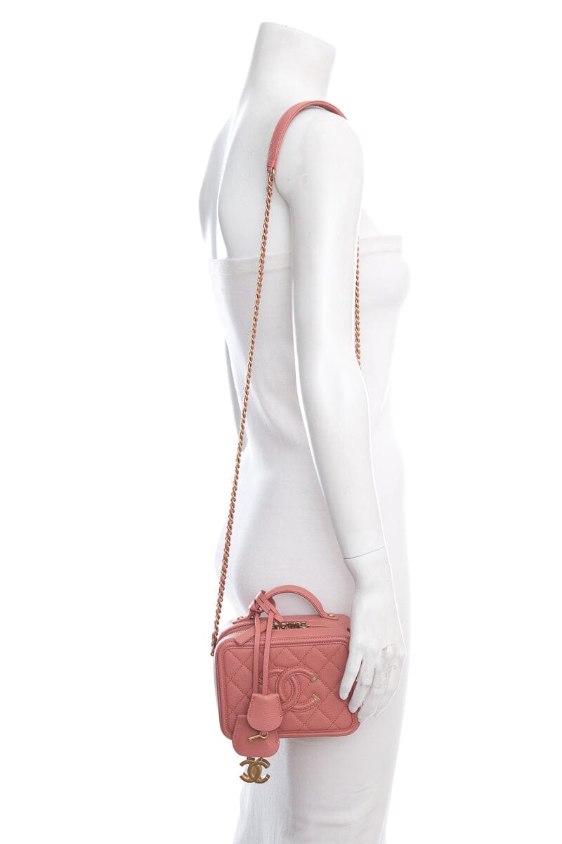 Chanel Vanity Case 2way Calfskin Leather Pink Shoulder Handbag