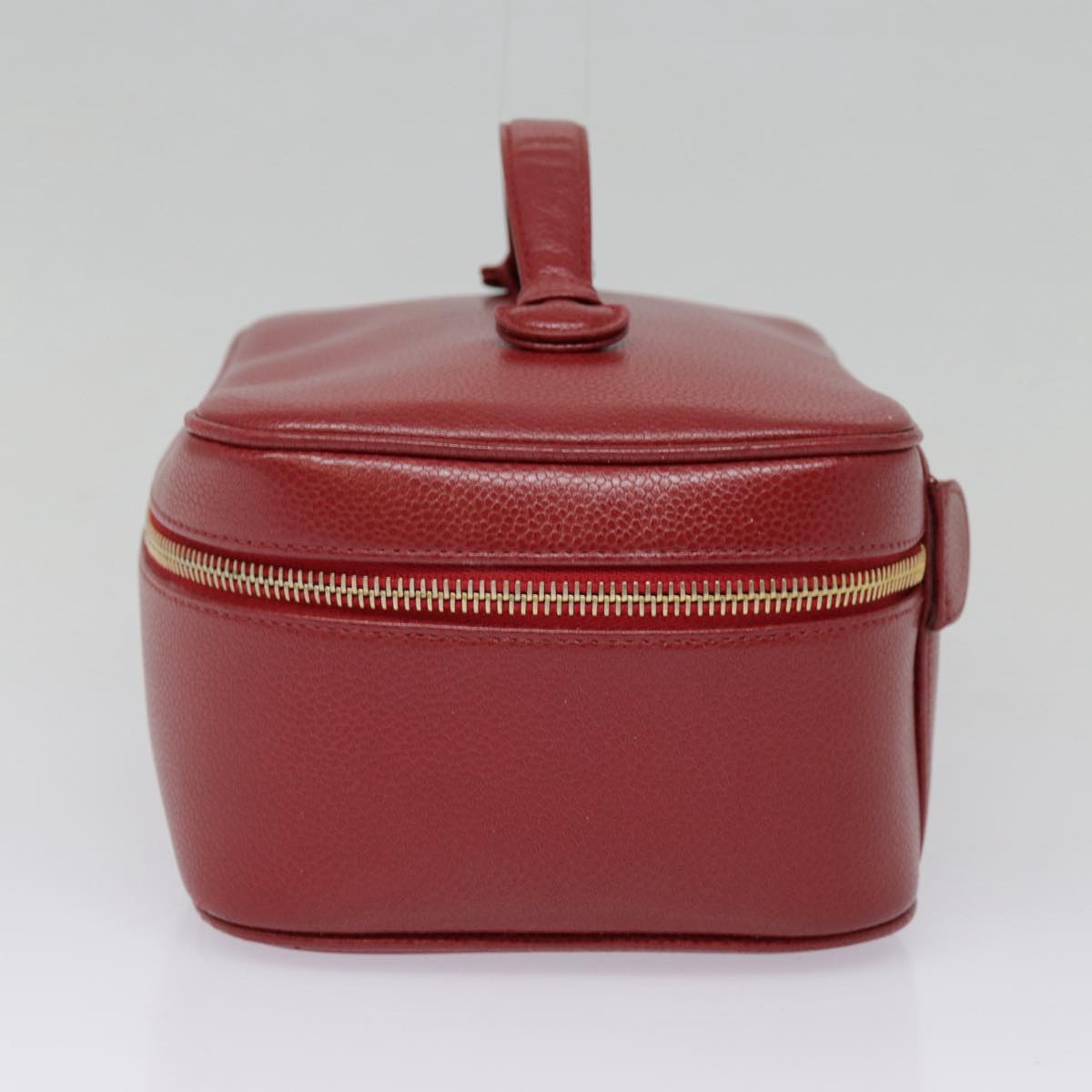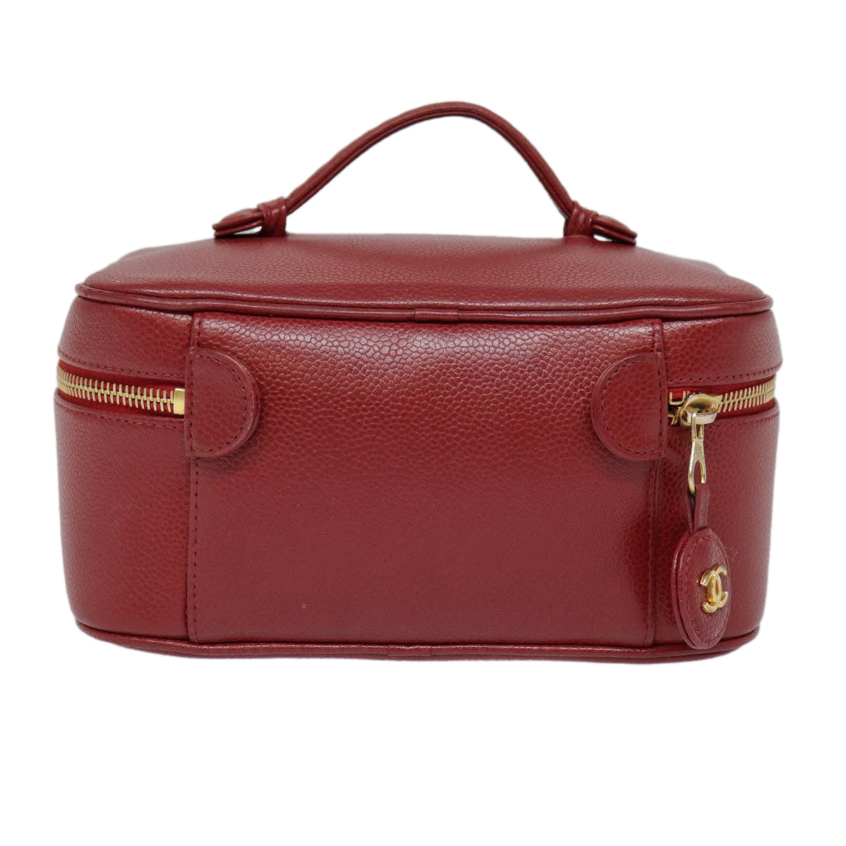 CHANEL Vanity COCO Mark Cosmetic Pouch Caviar Skin Red Gold CC yk14831