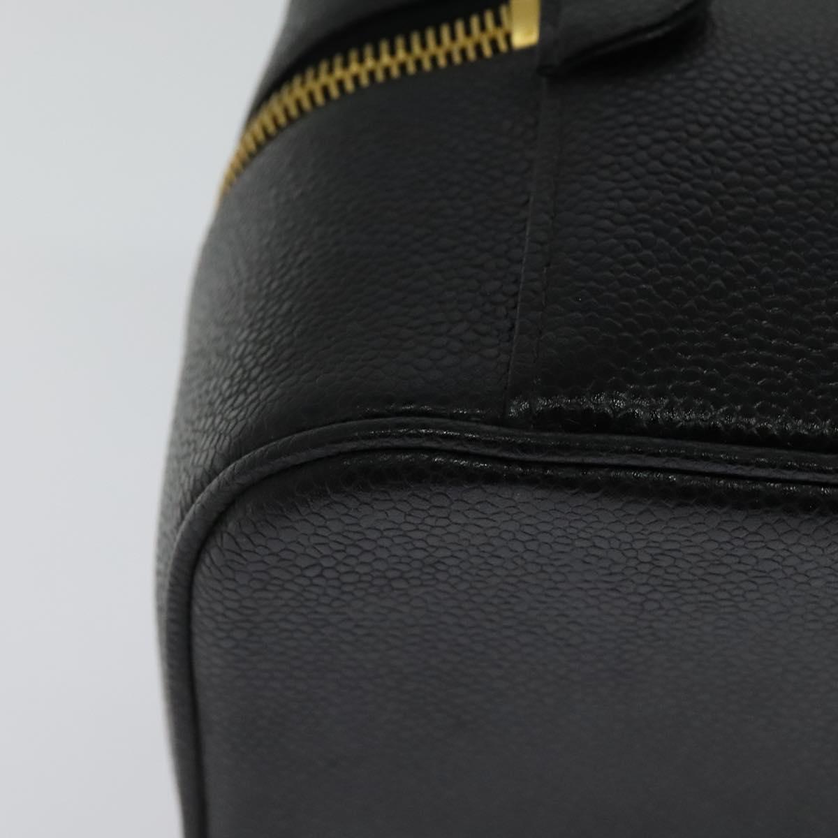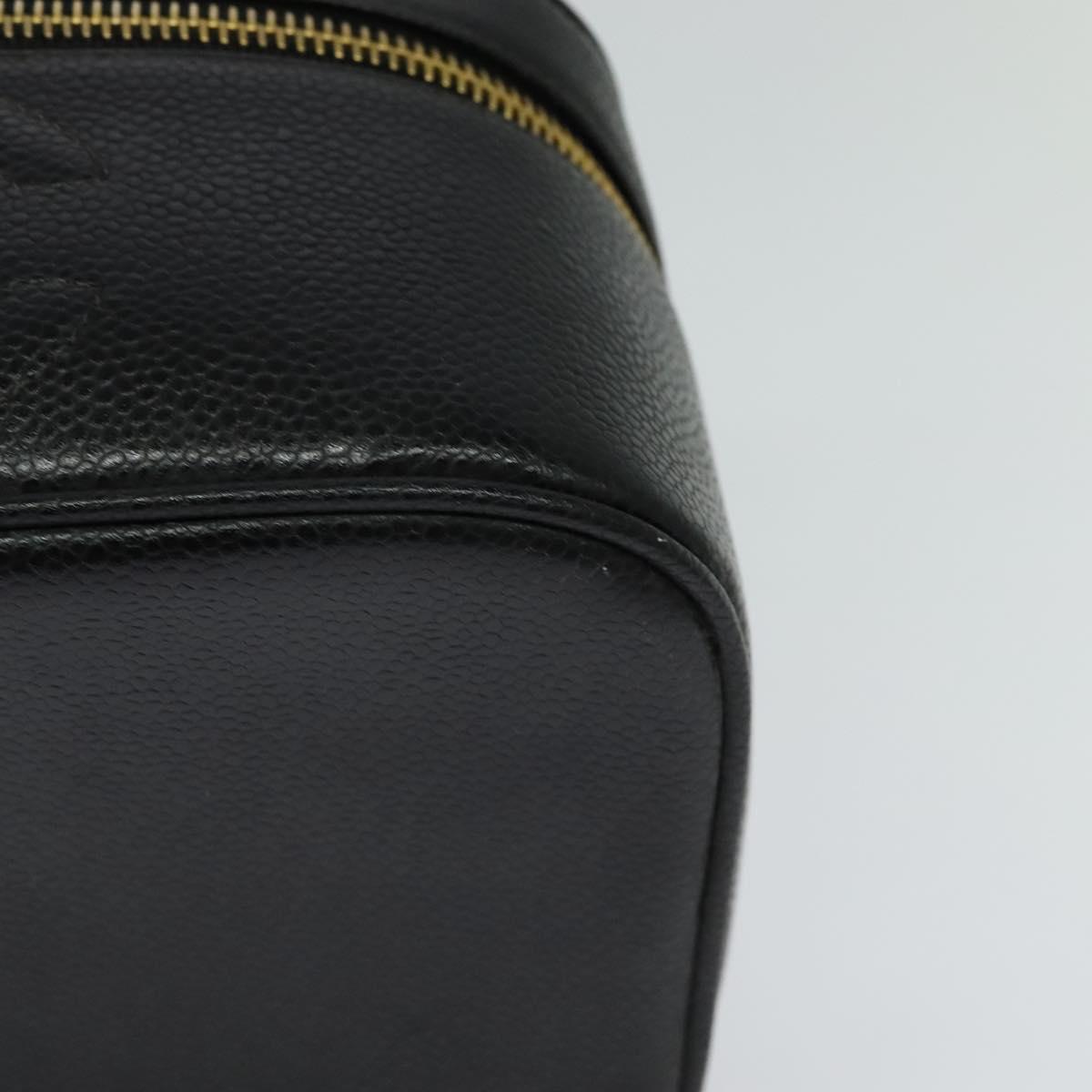 CHANEL Vanity Cosmetic Pouch Caviar Skin Black Gold CC 113790