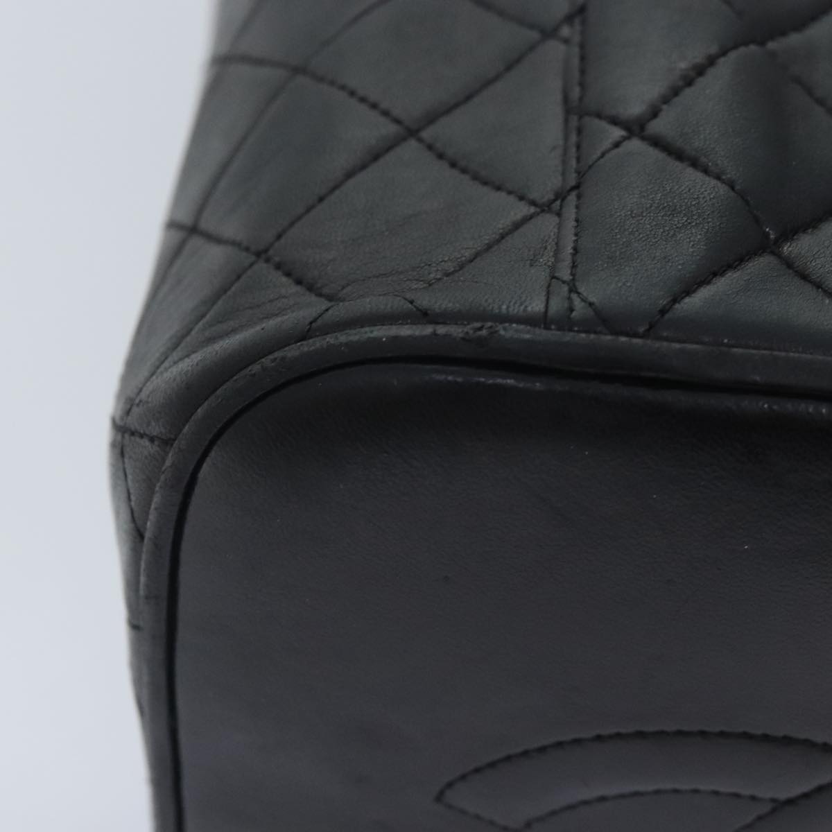 CHANEL Vanity Cosmetic Pouch Lamb Skin Black Gold CC bs17658