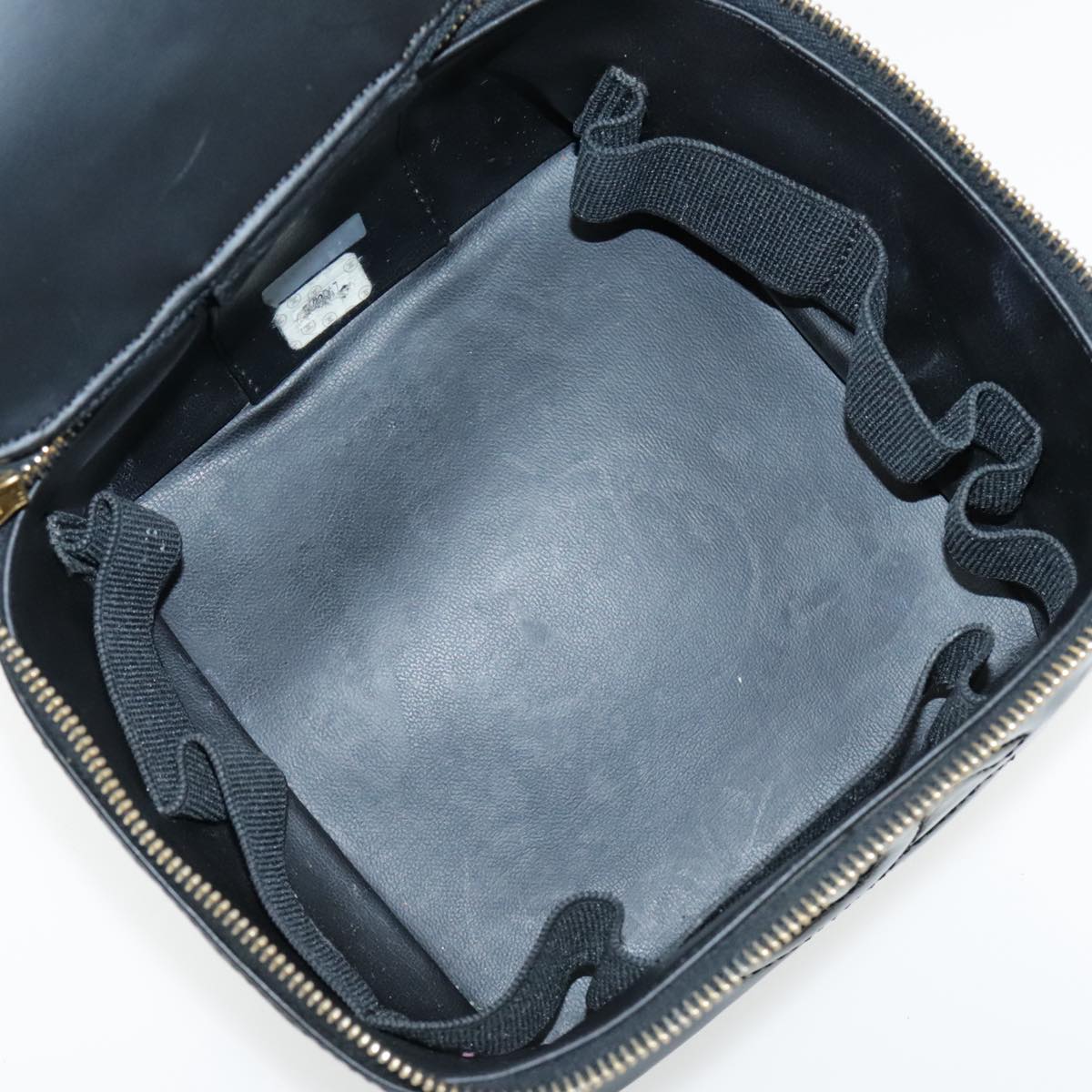 CHANEL Vanity Cosmetic Pouch Patent leather Black Gold CC bs18658
