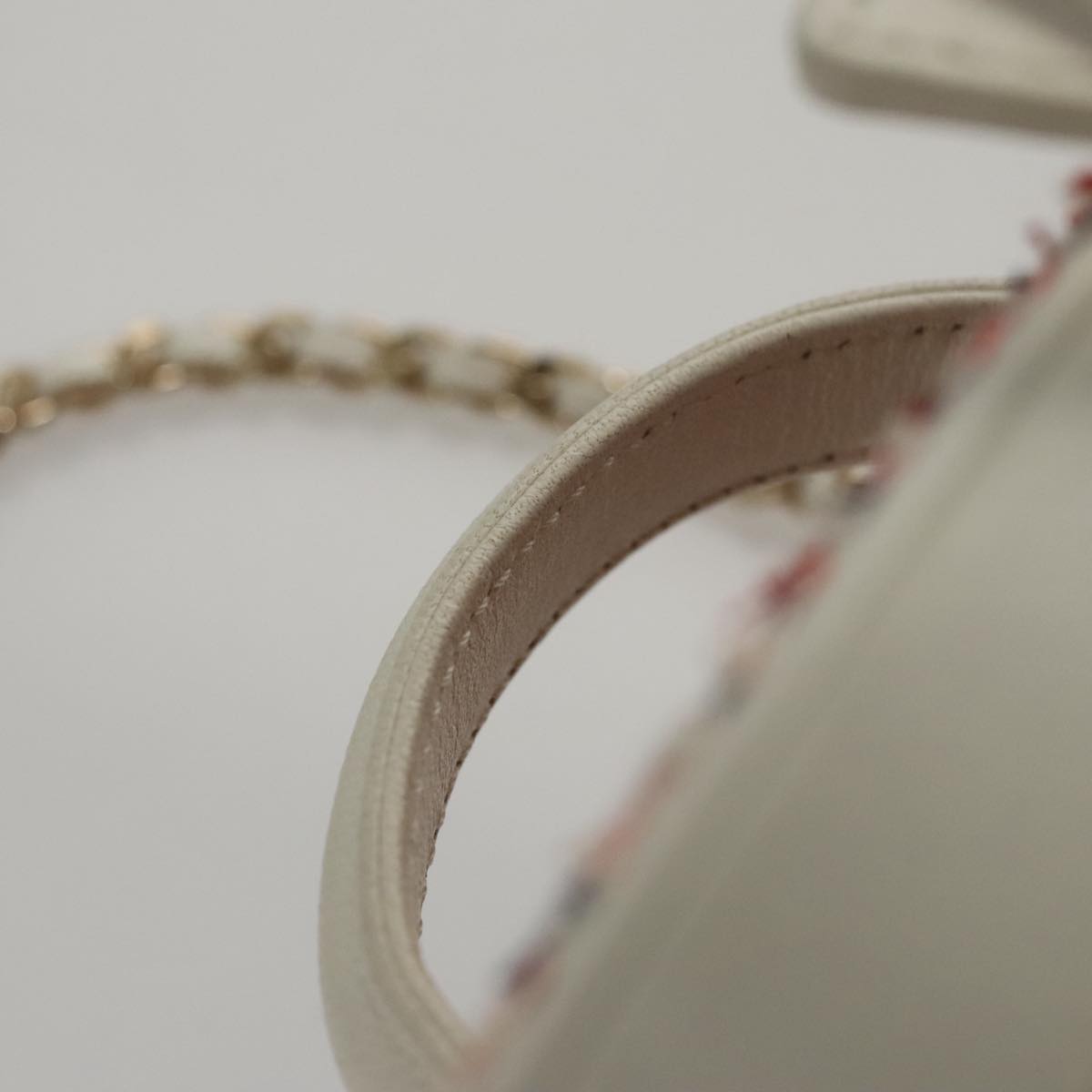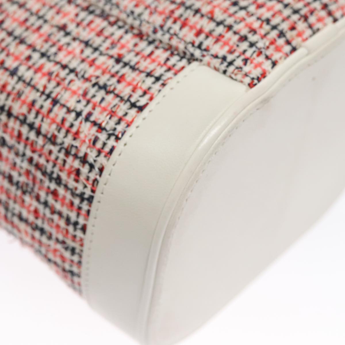 CHANEL Vanity Cosmetic Pouch Tweed Leather 2way Red White CC 108914A